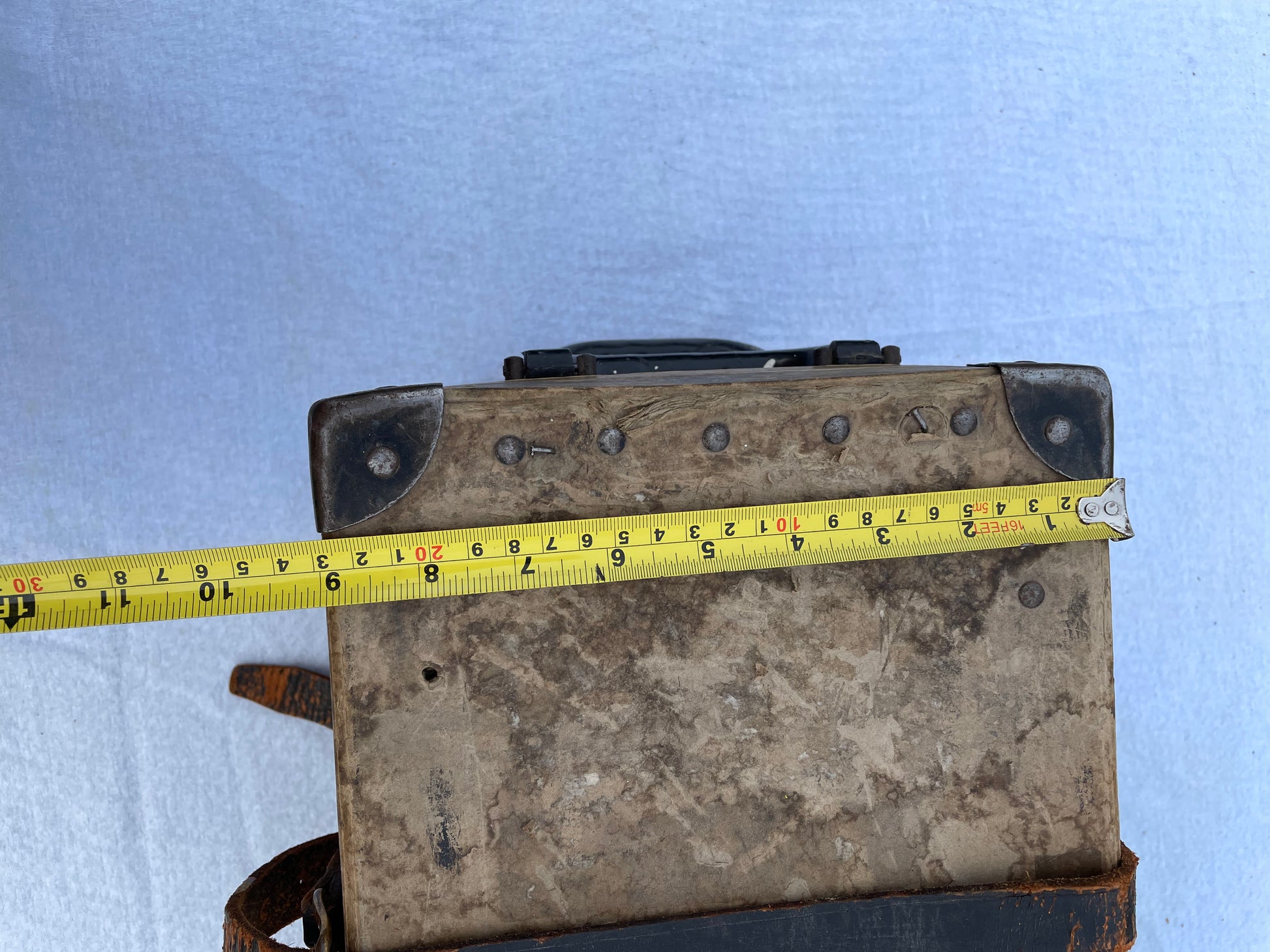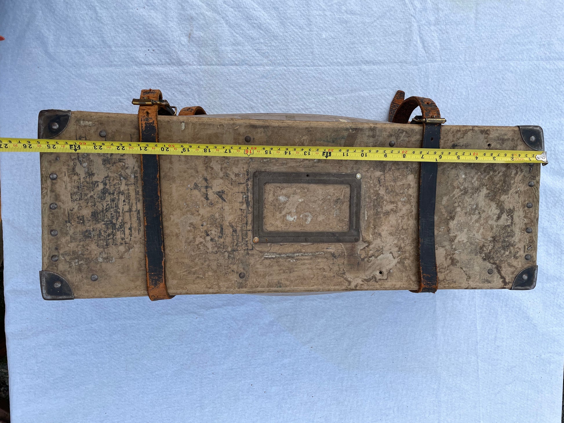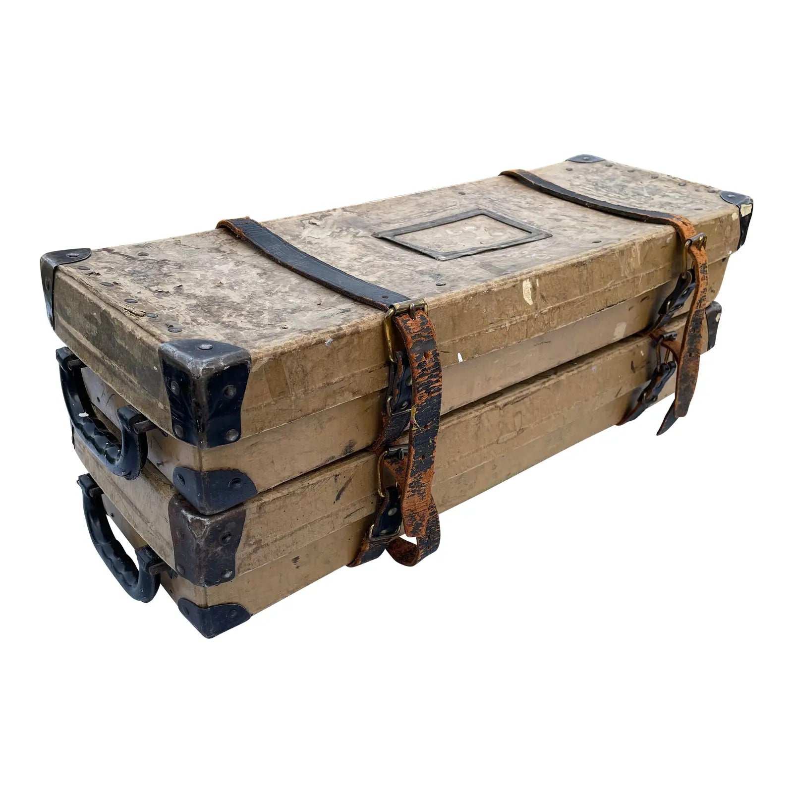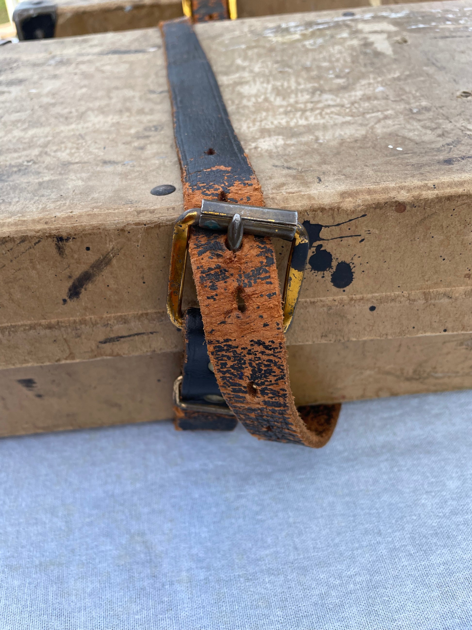 rustic condition with noticeable wear and tear, but the boxes and leather straps are intact. The handles are attached and the clasps are all working