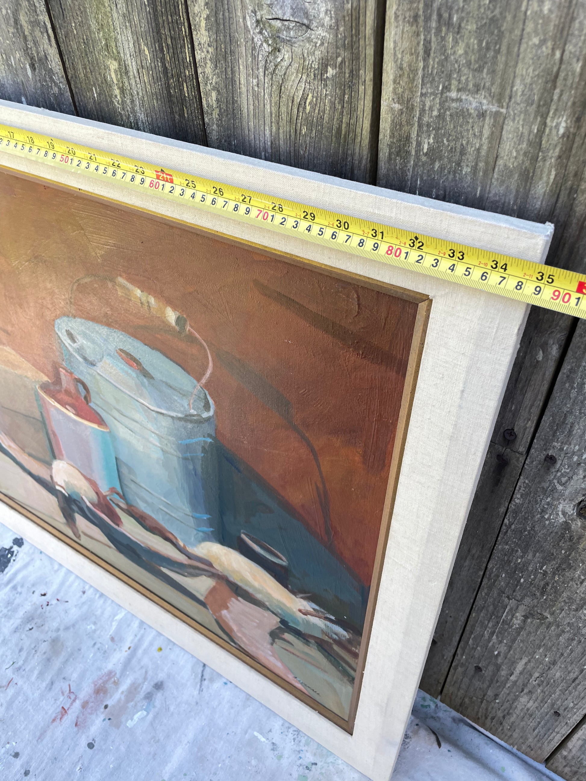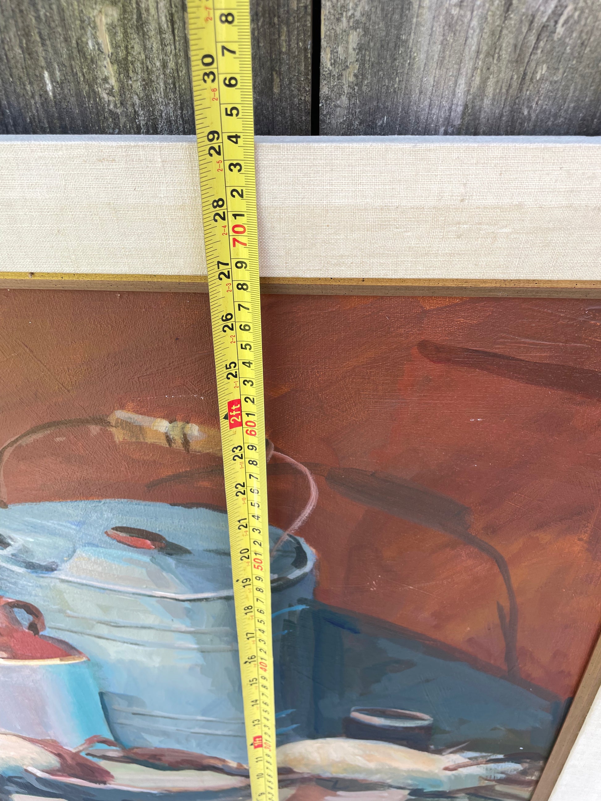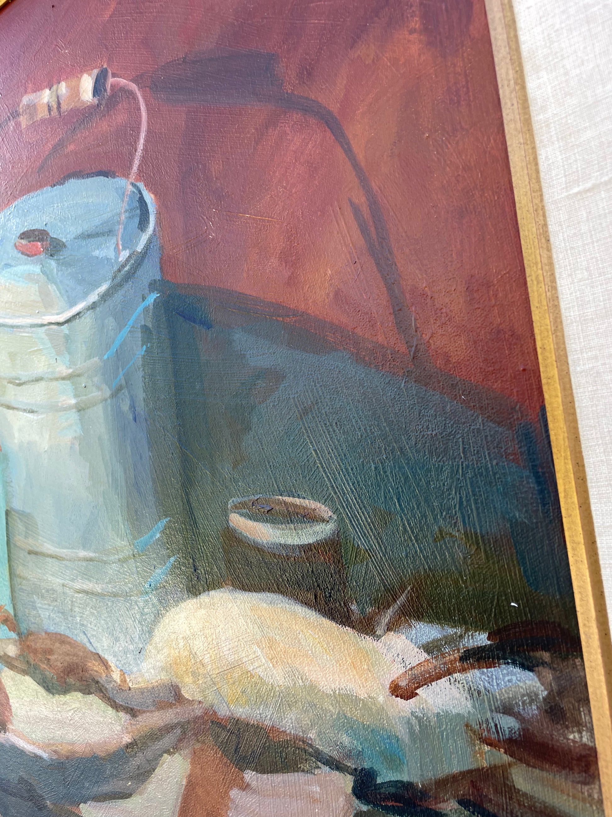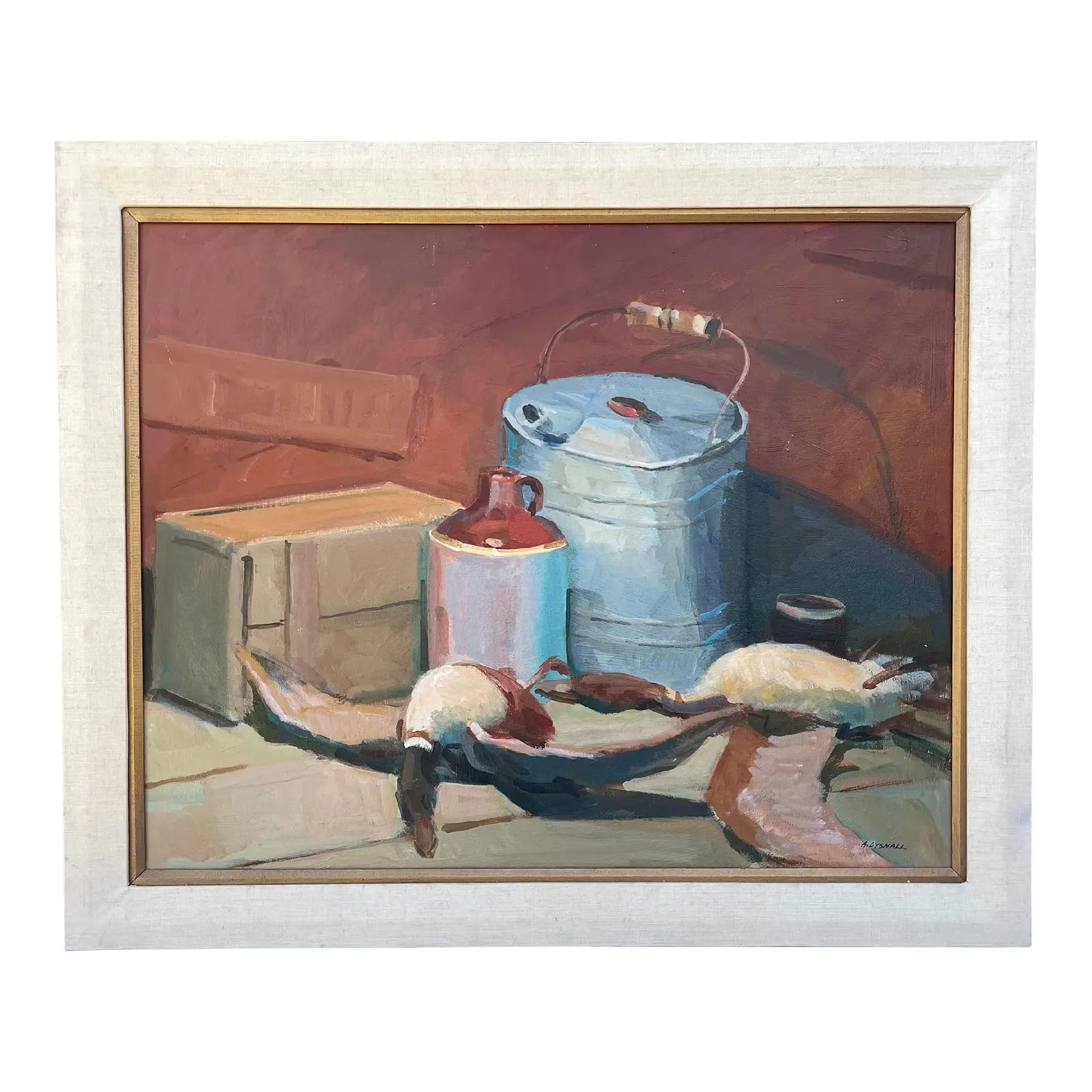 Mid 20th Century Vintage Still Life Oil on Canvas Original Painting, Rustic Scene With Geese, Framed