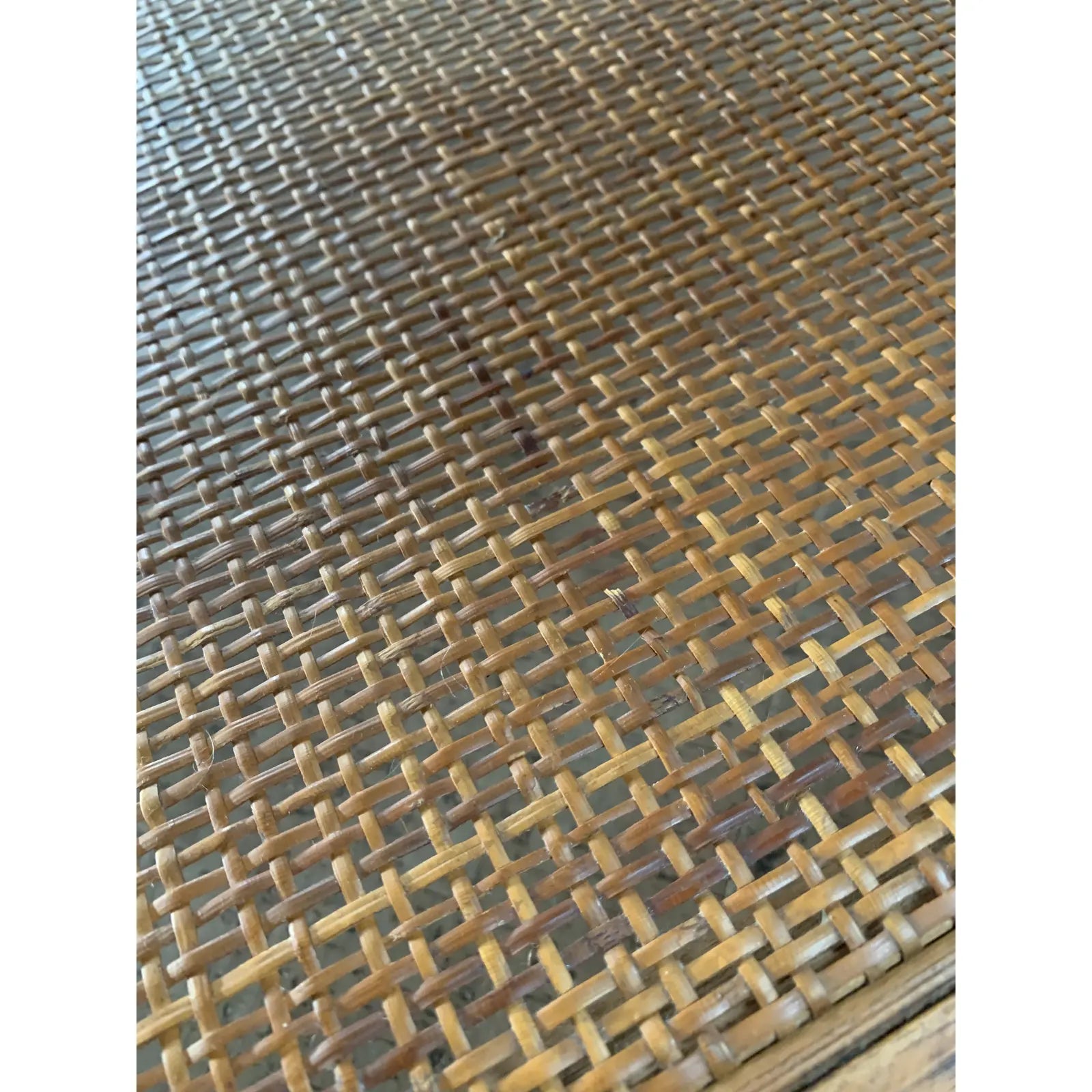 Good overall condition, lightly restored. The table once had a drawer, but it was found without, so one end is open. There are a couple of minor breaks in the caning. See photos for visual representation of condition.