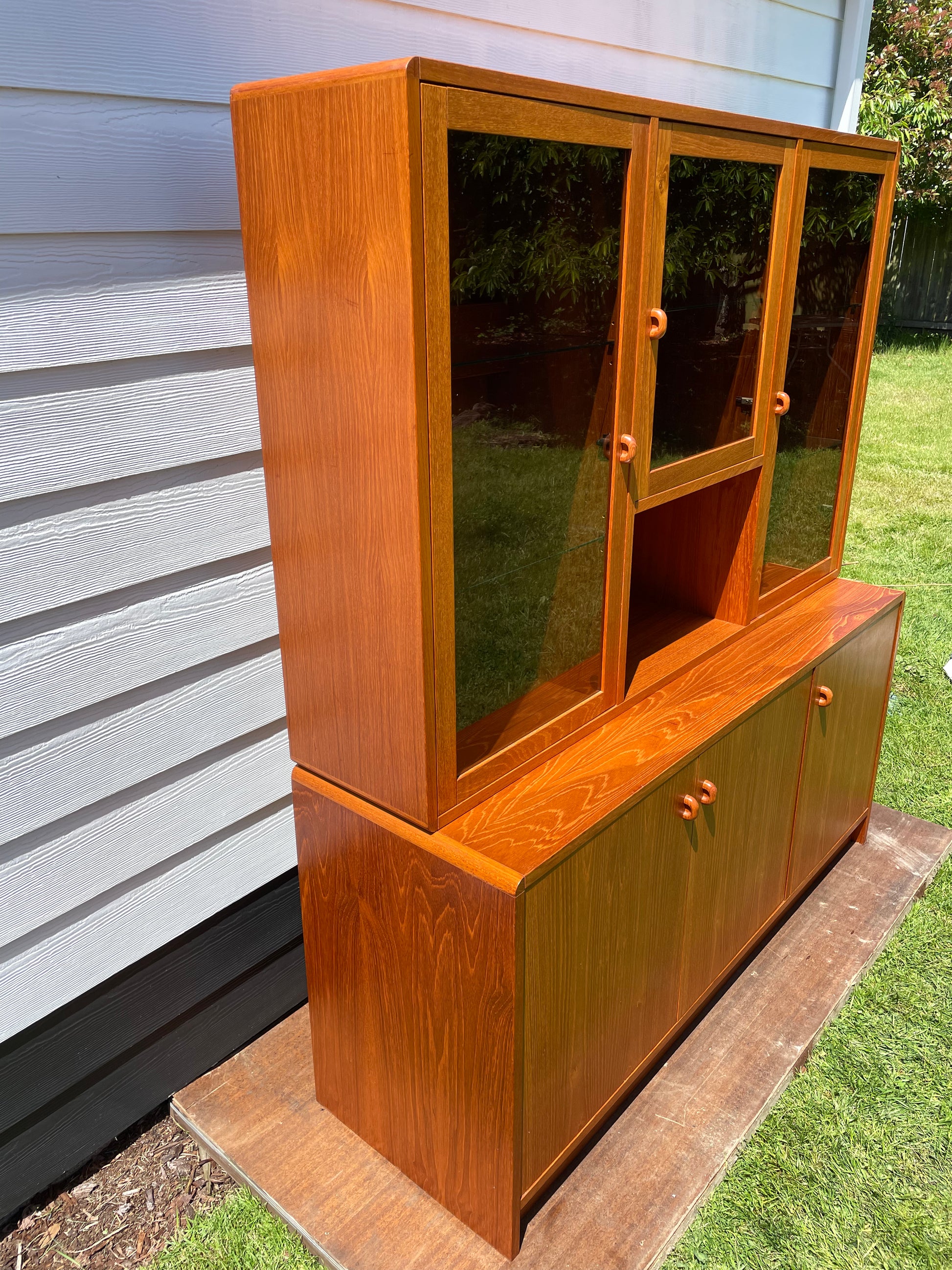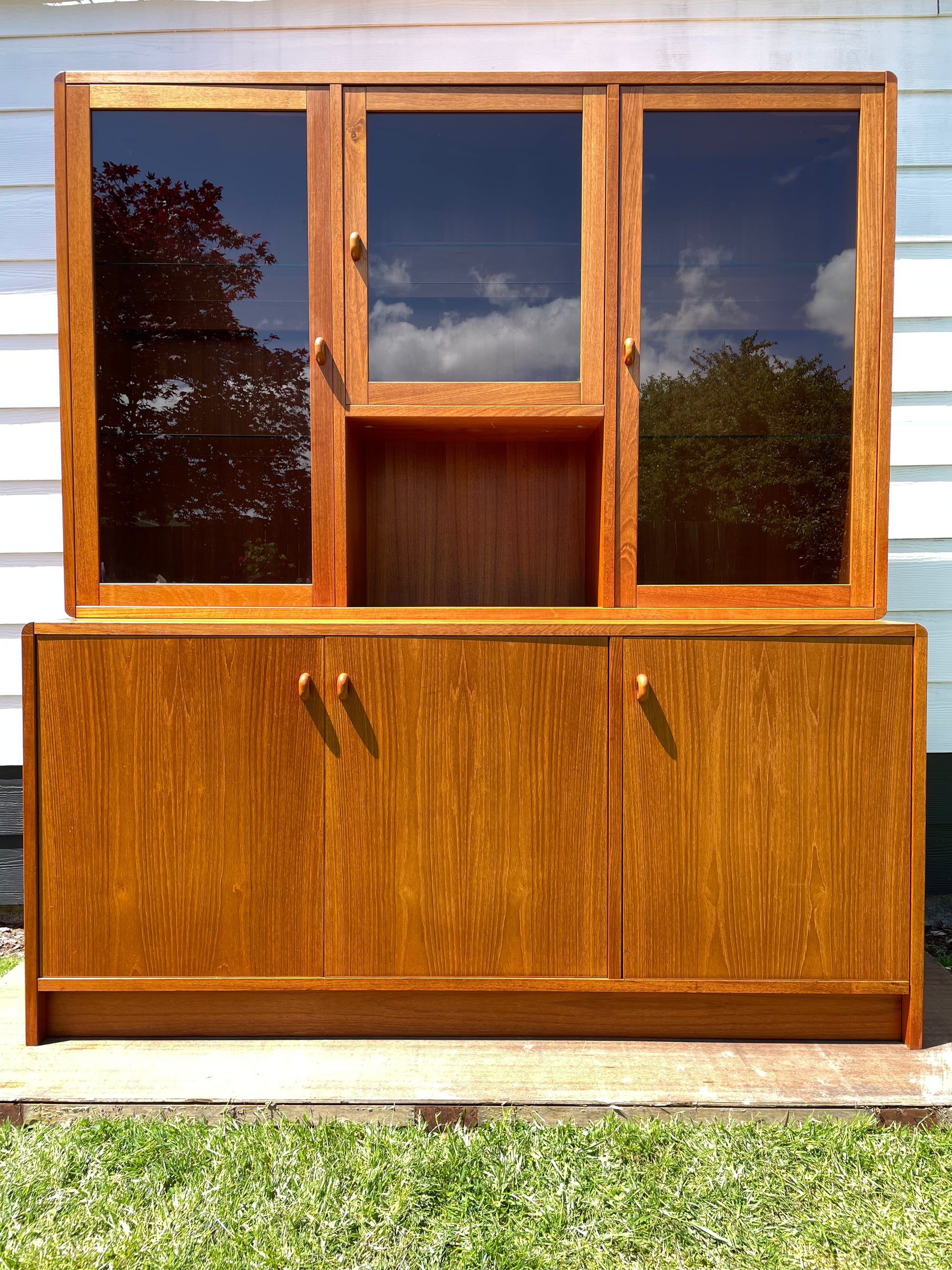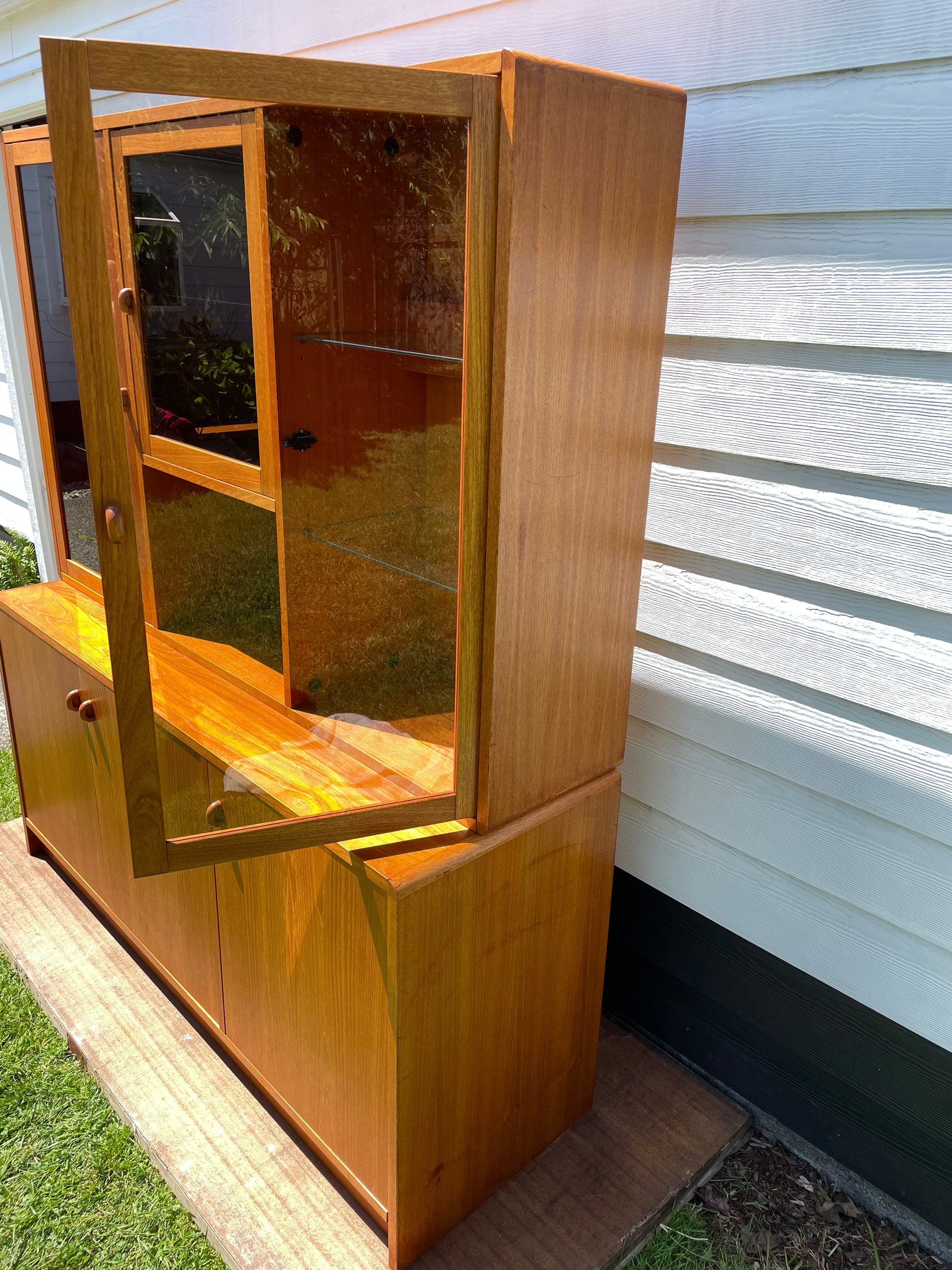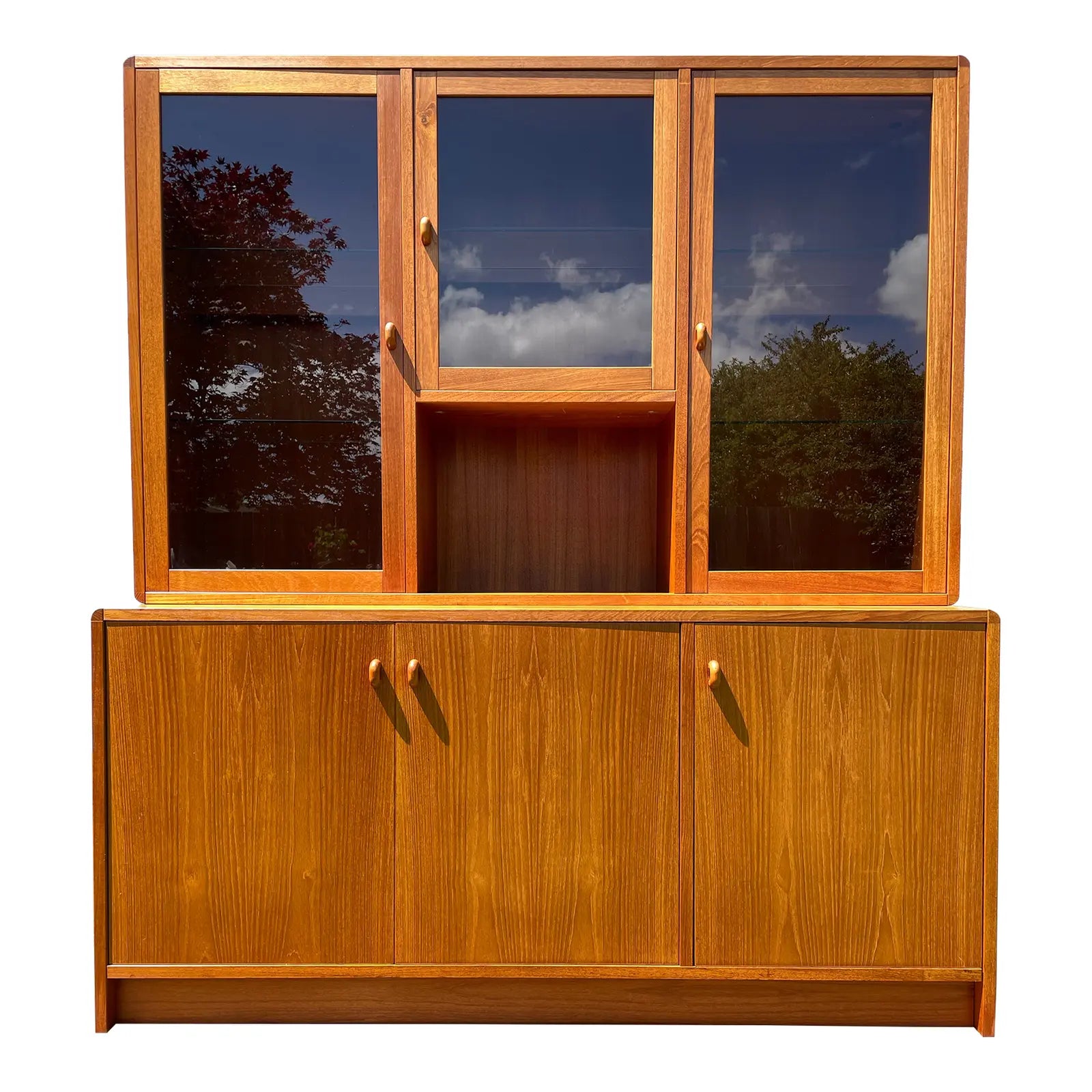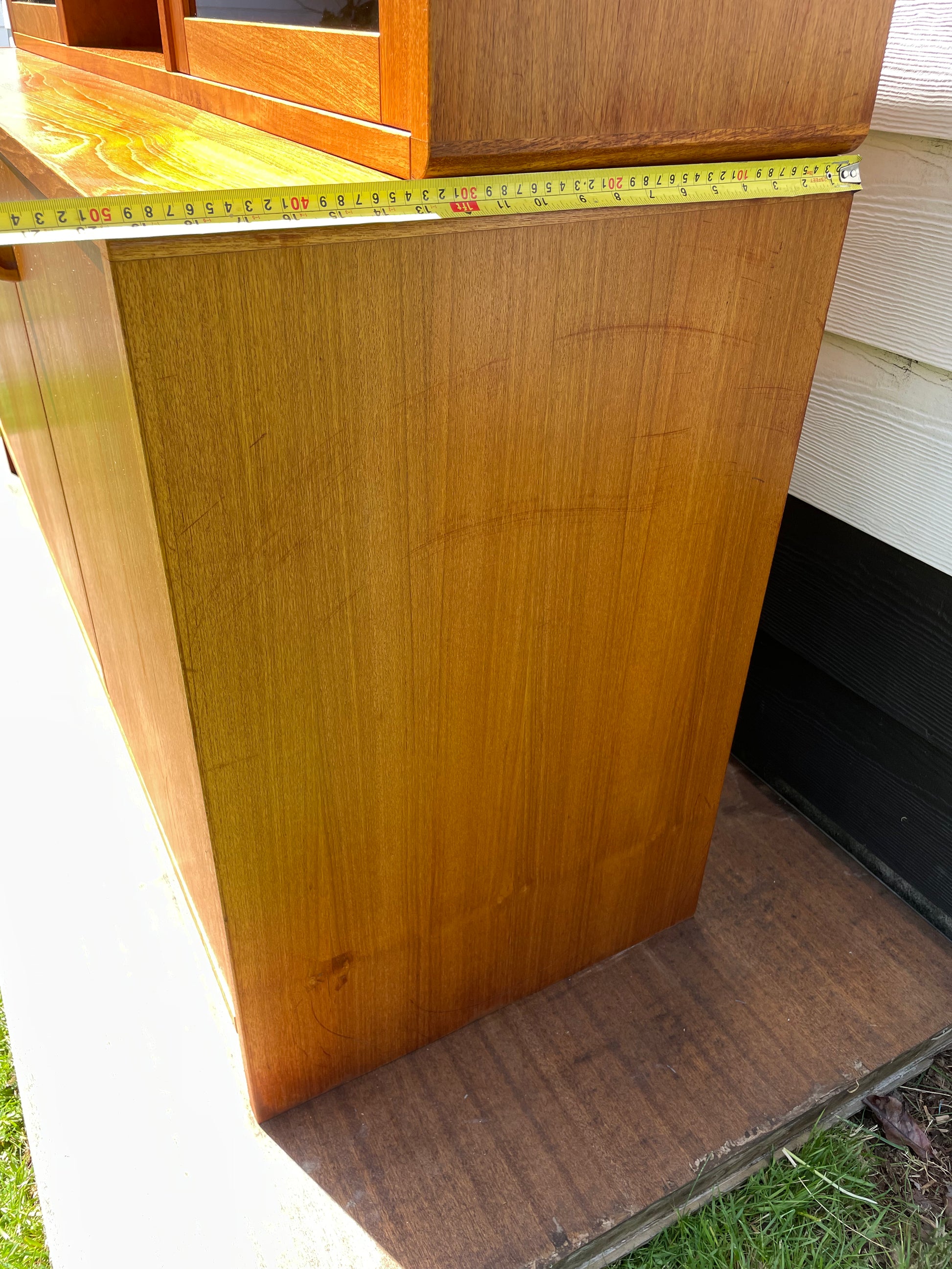 Mid-Century Danish Modern Teak Credenza W/ Lighted Glass Hutch