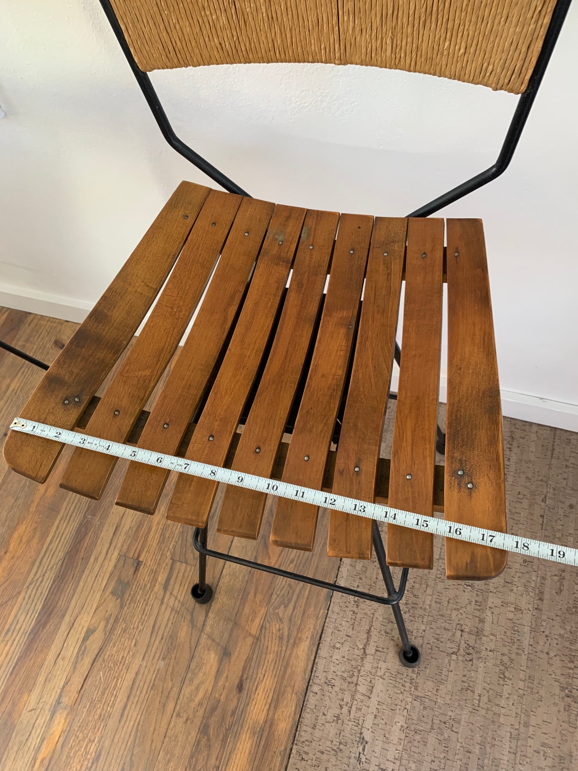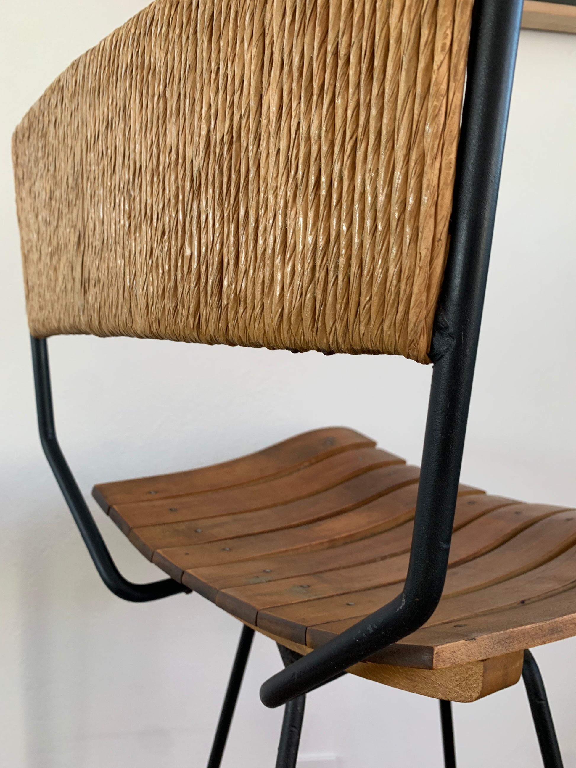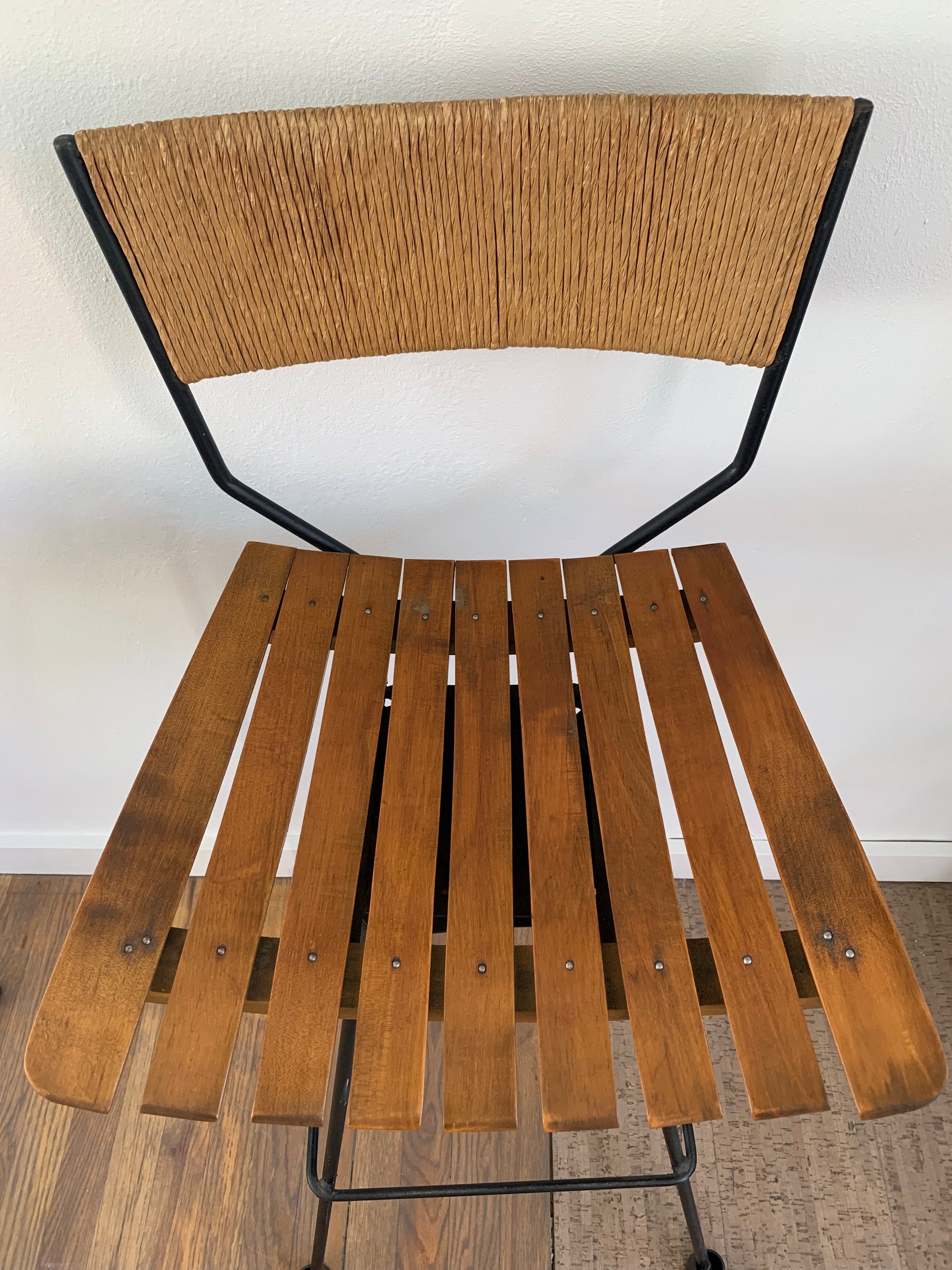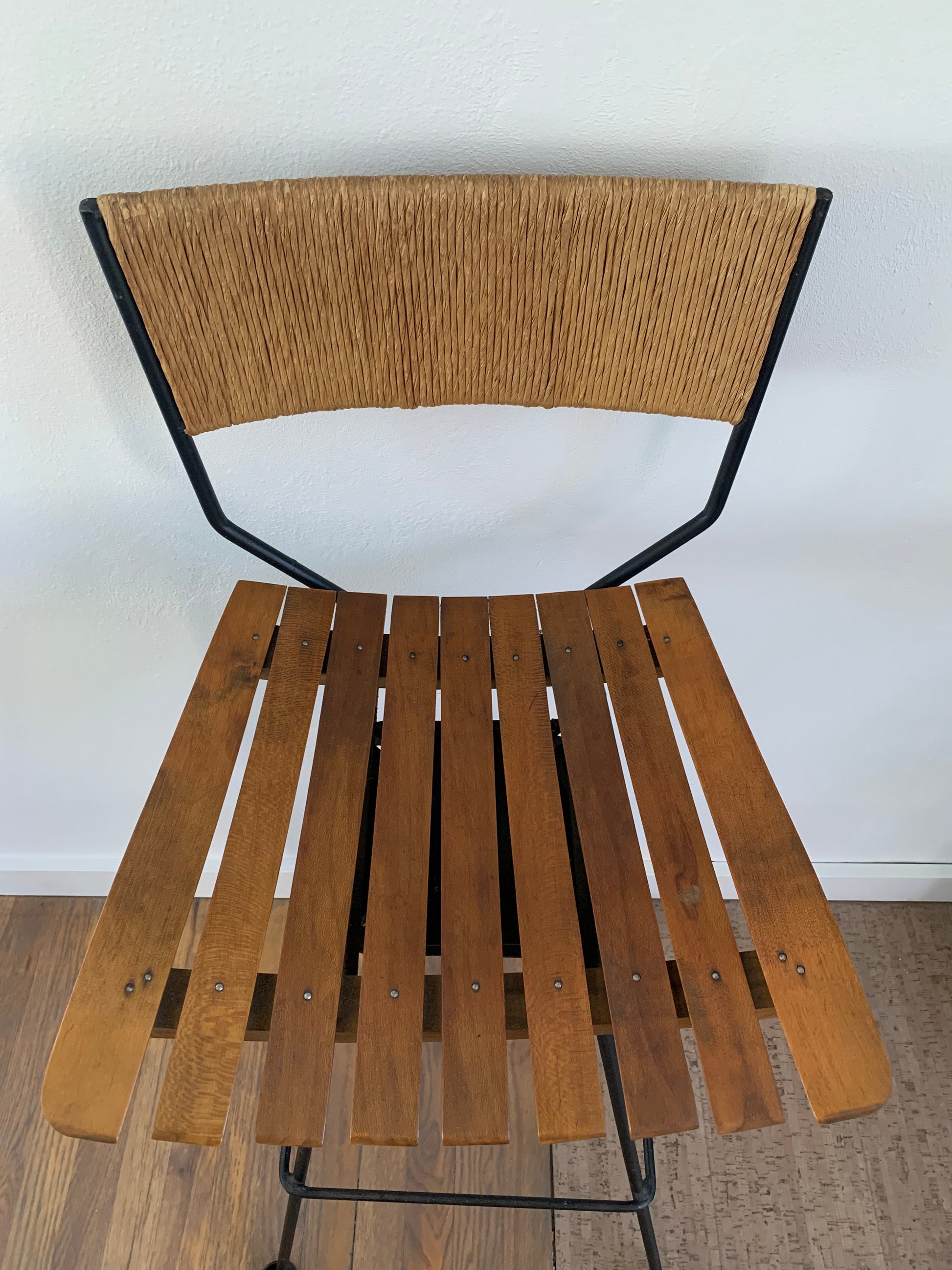 Mid-Century Modern Arthur Umanoff Mid Century Roped, Wood Slat & Iron Bar Stools