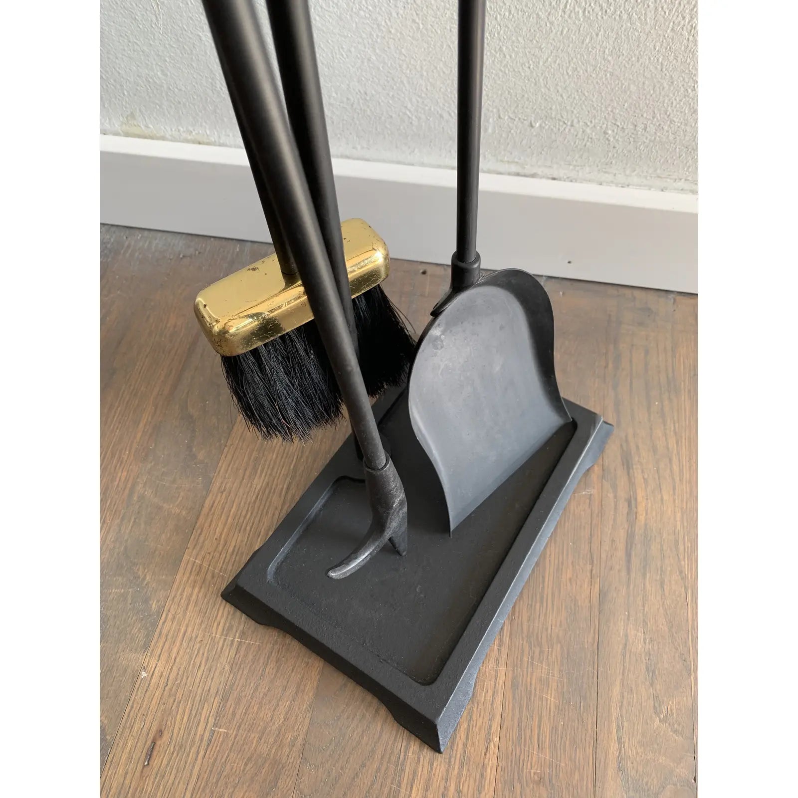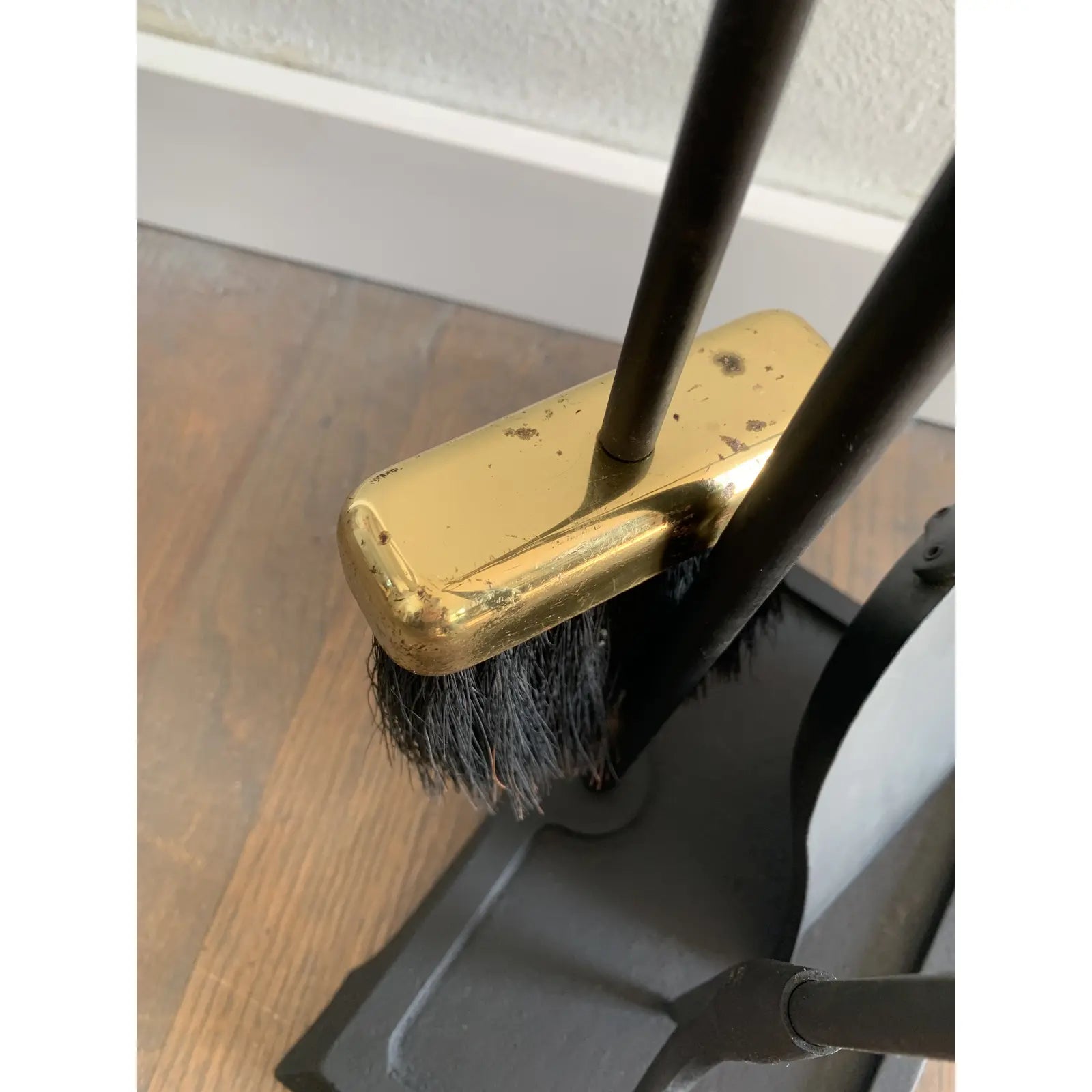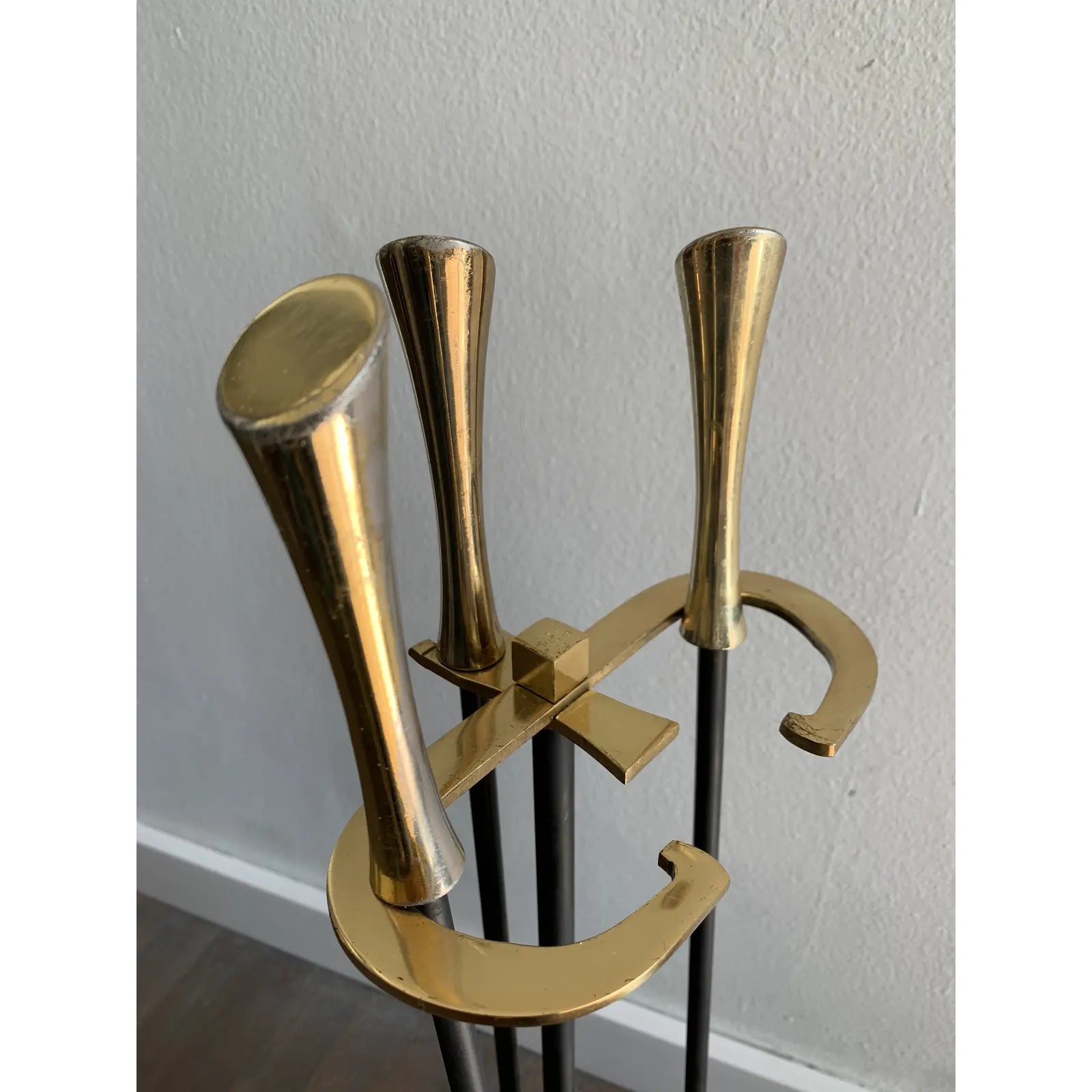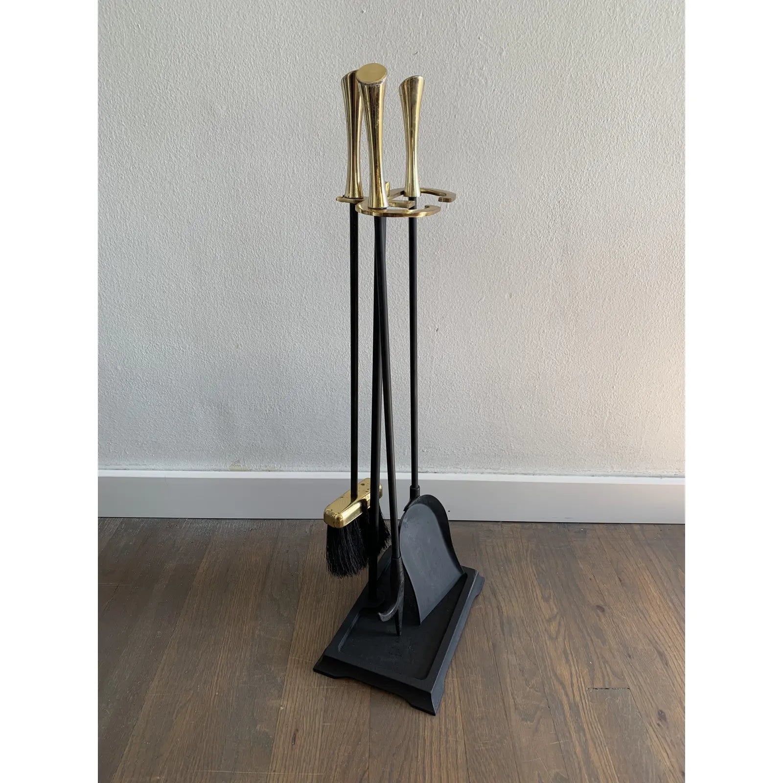Mid Century Modern Brass and Black Fireplace Tool Set