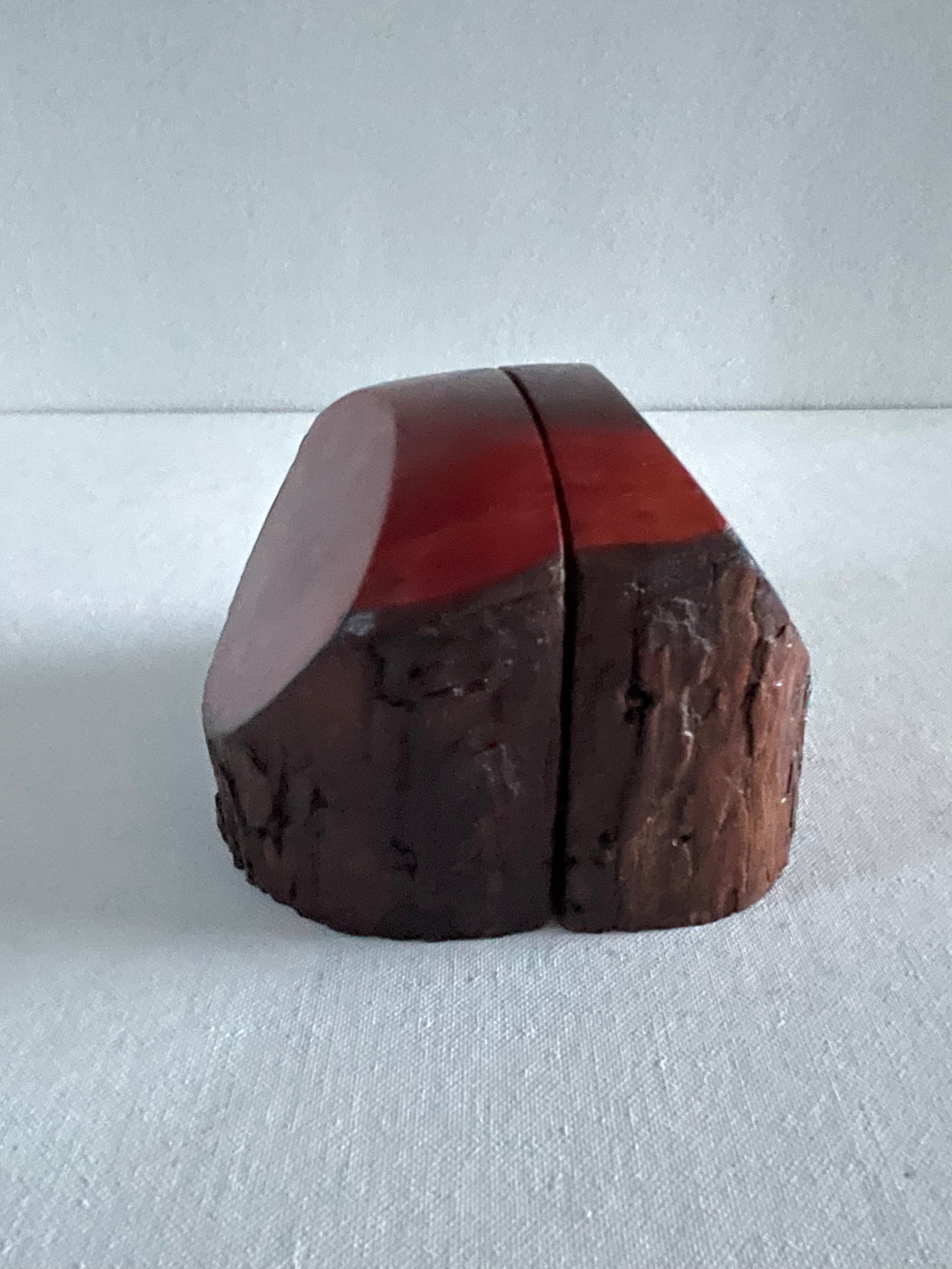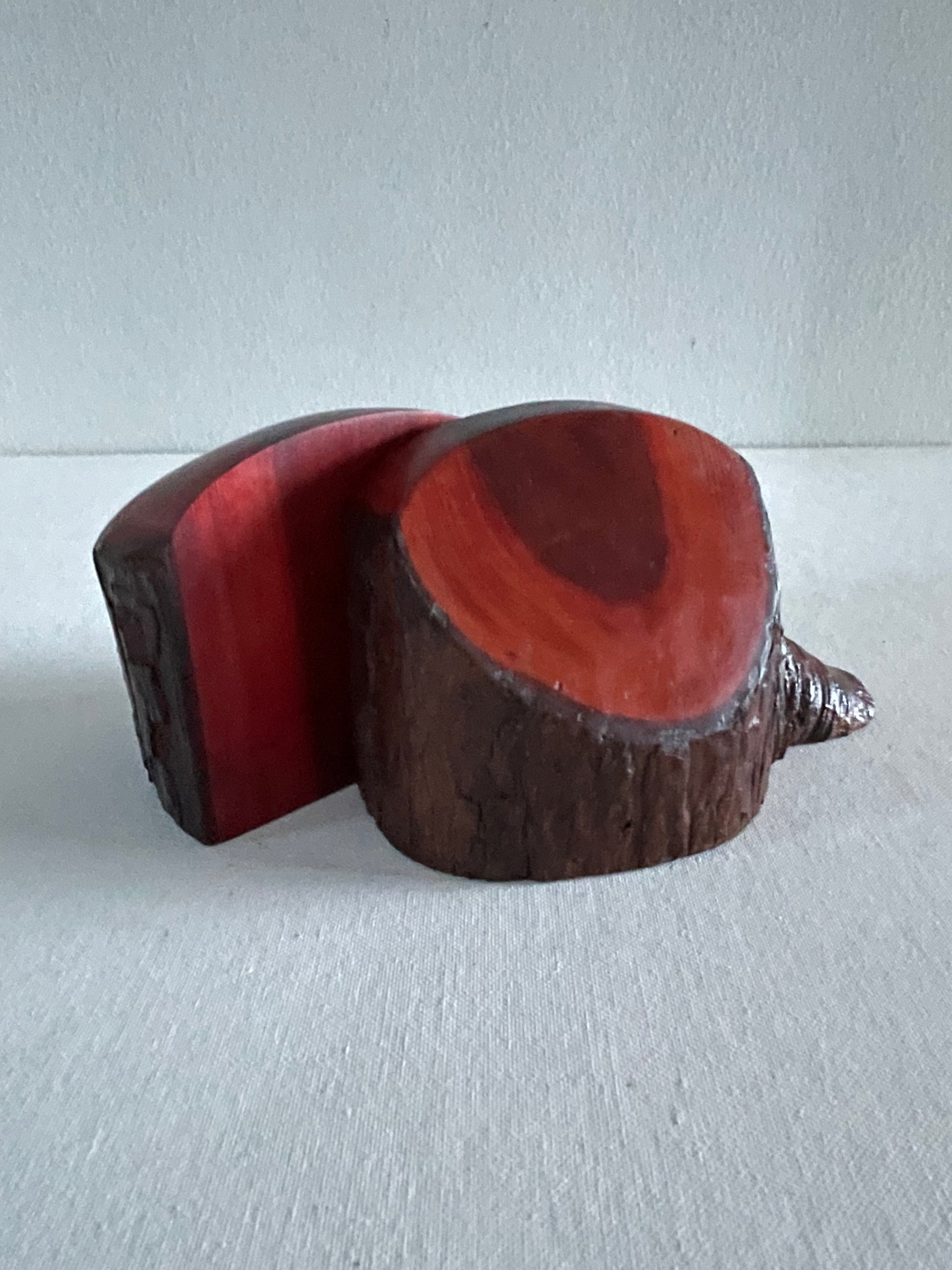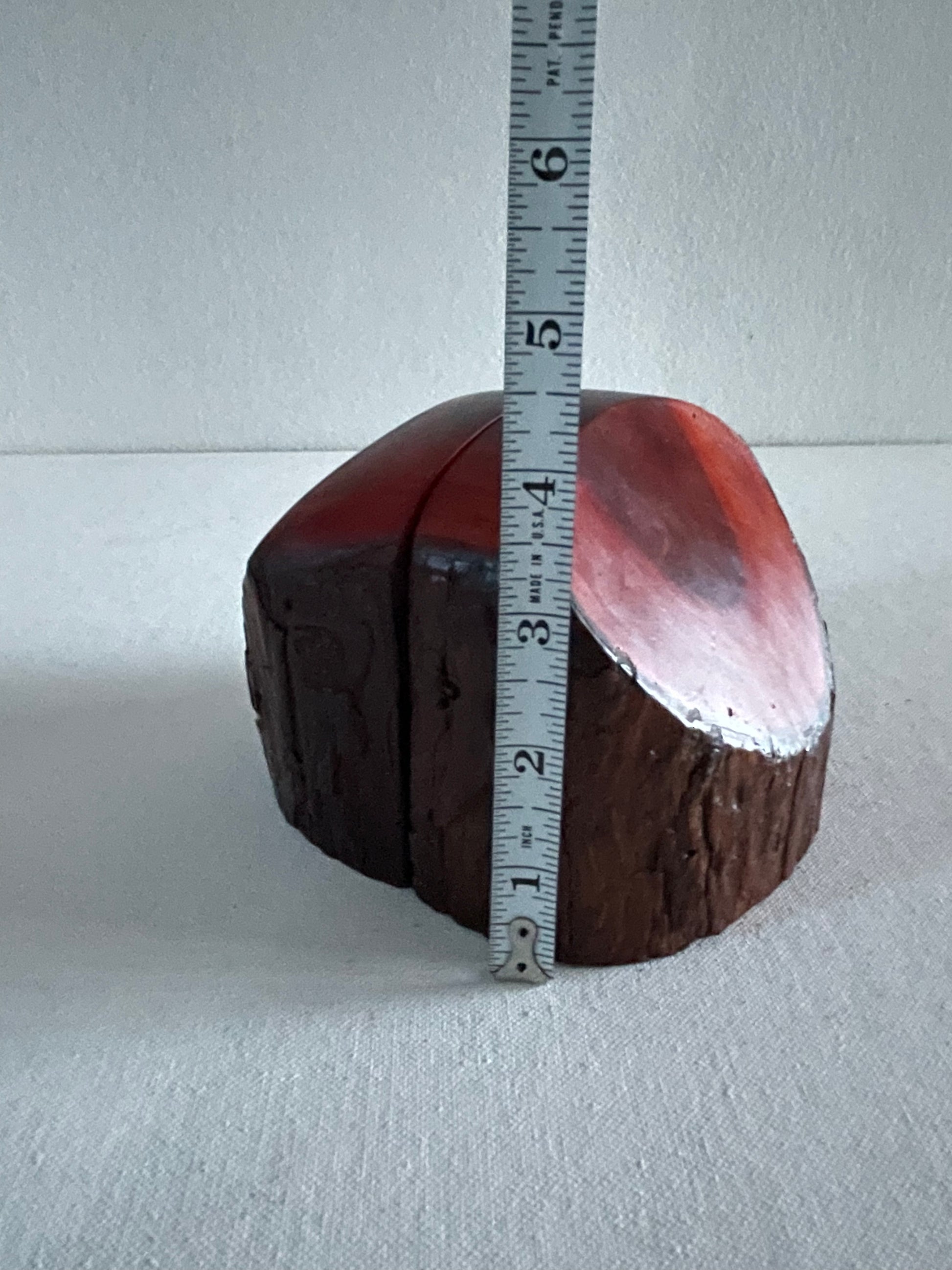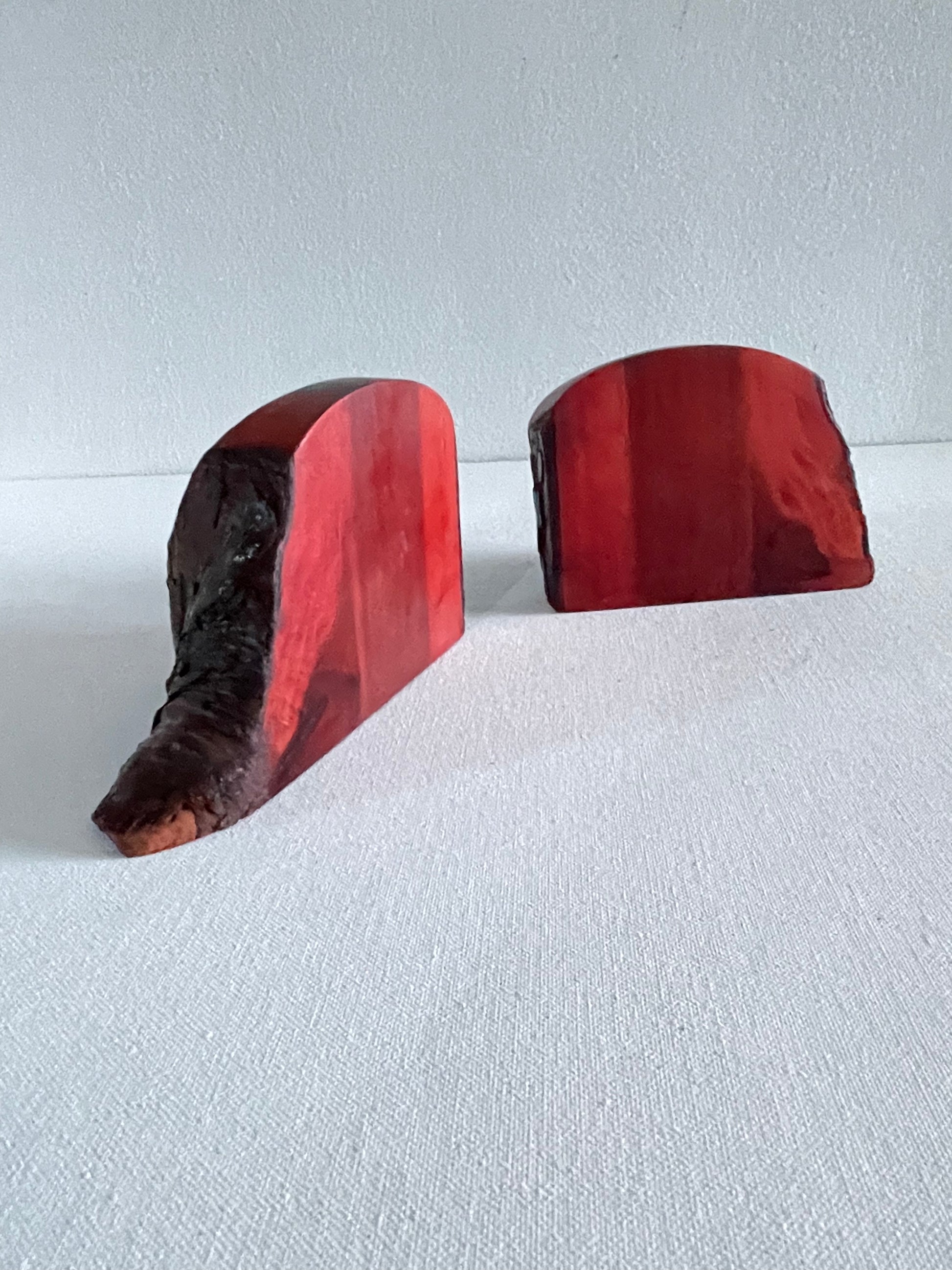 Deep reds and brown live edge bookends made from the stunning California redwood Sequoia Tree. Organic display of brilliant color and natural beauty.