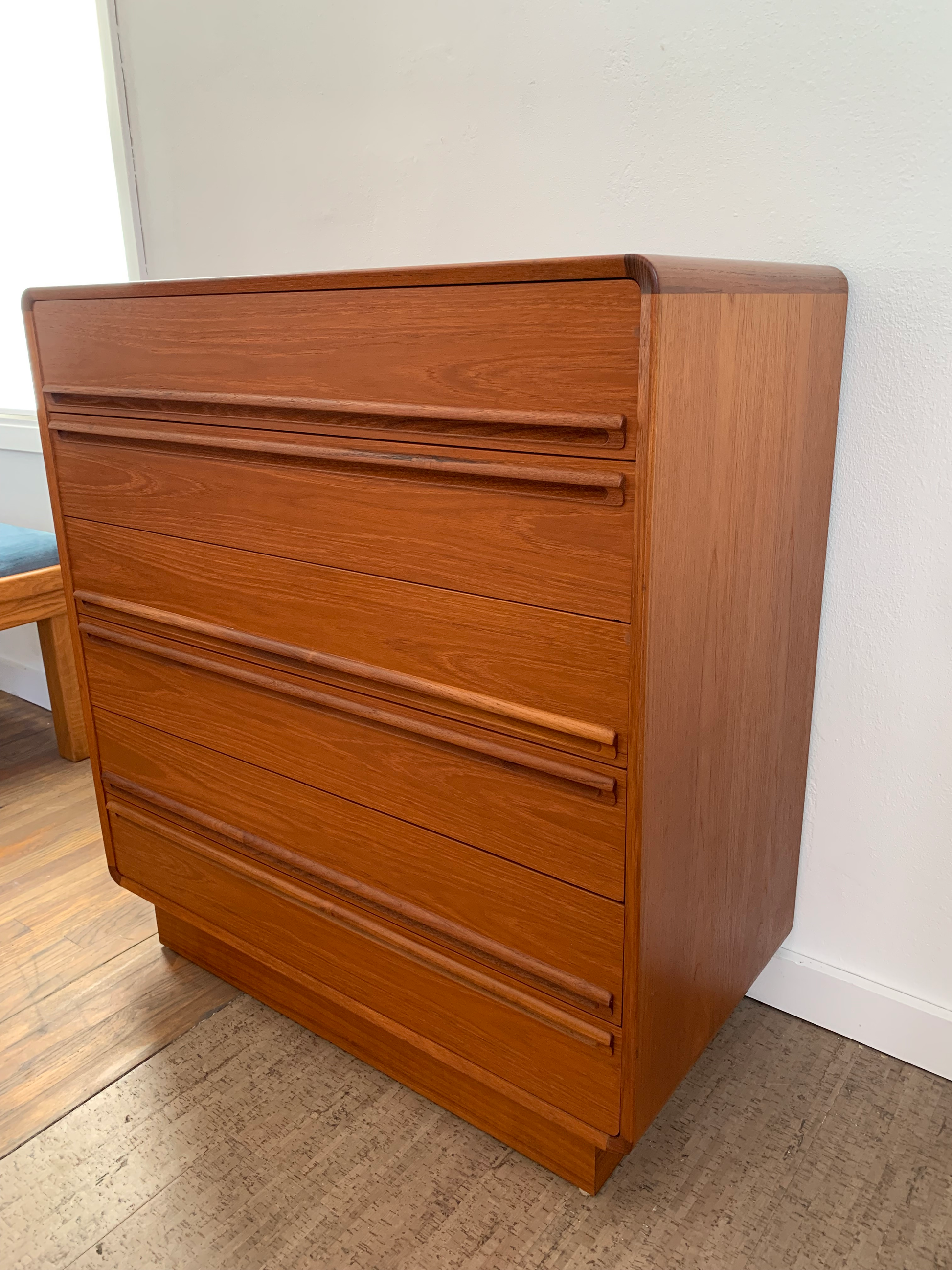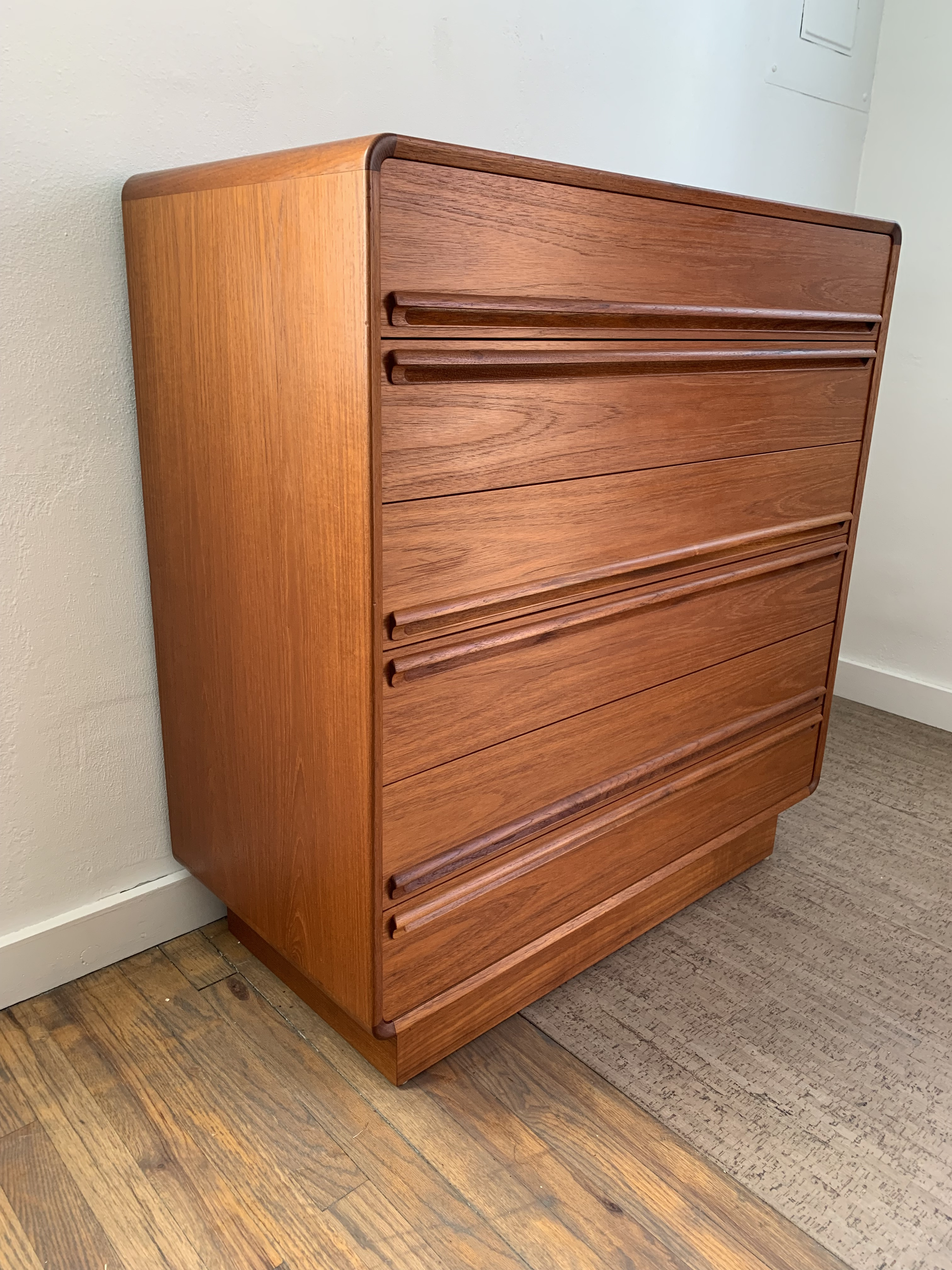Mid Century Modern Danish Space Age Rounded 6 Drawer Teak Dresser by Kibaek Mobelfabrik