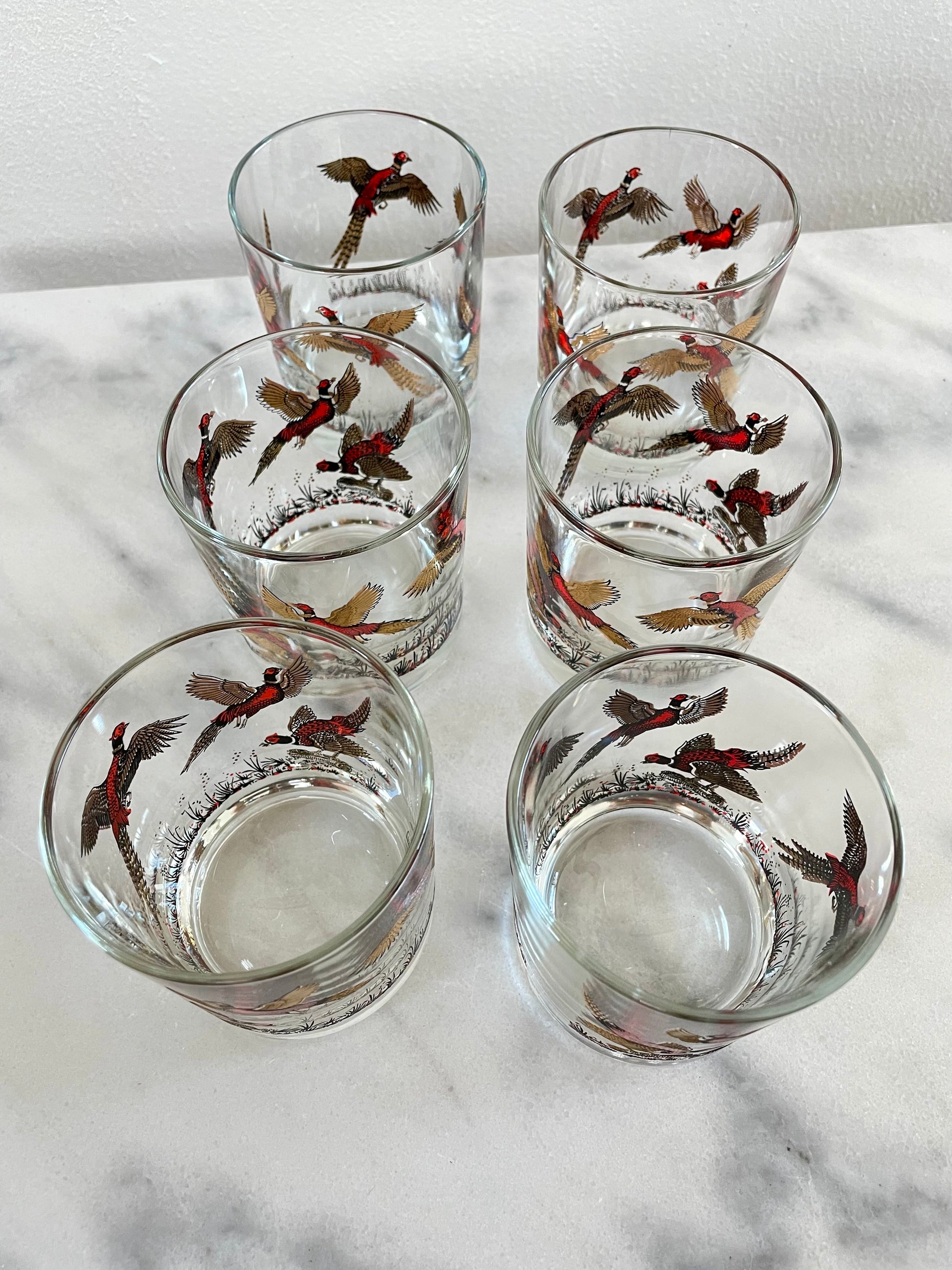 Mid-Century Modern Gold Pheasant Hunting Glasses - Set of 6