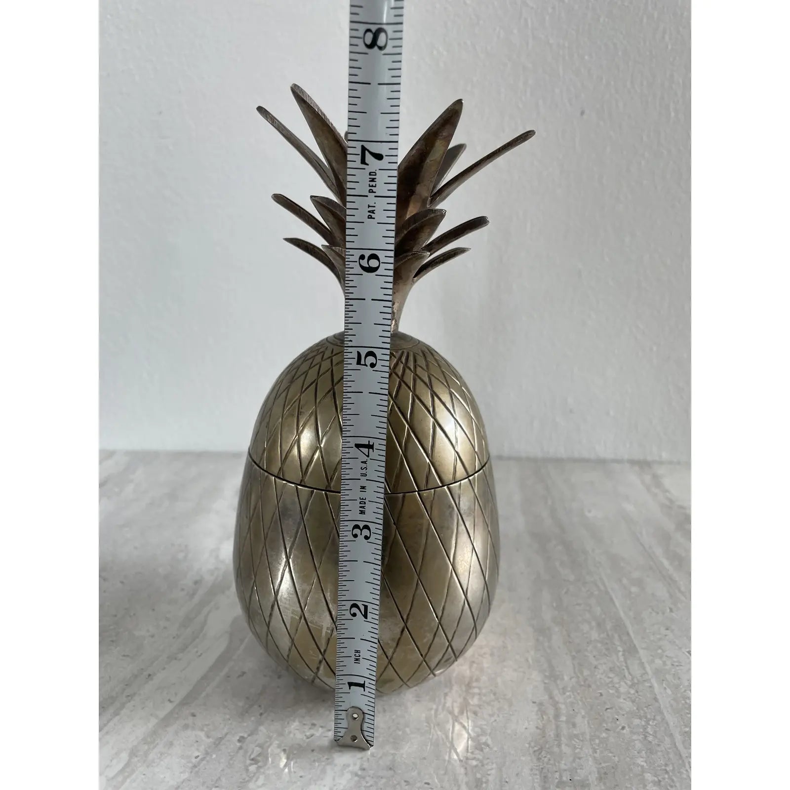 Mid-Century Modern Heavy Brass Metal Pineapple Container Sculpture