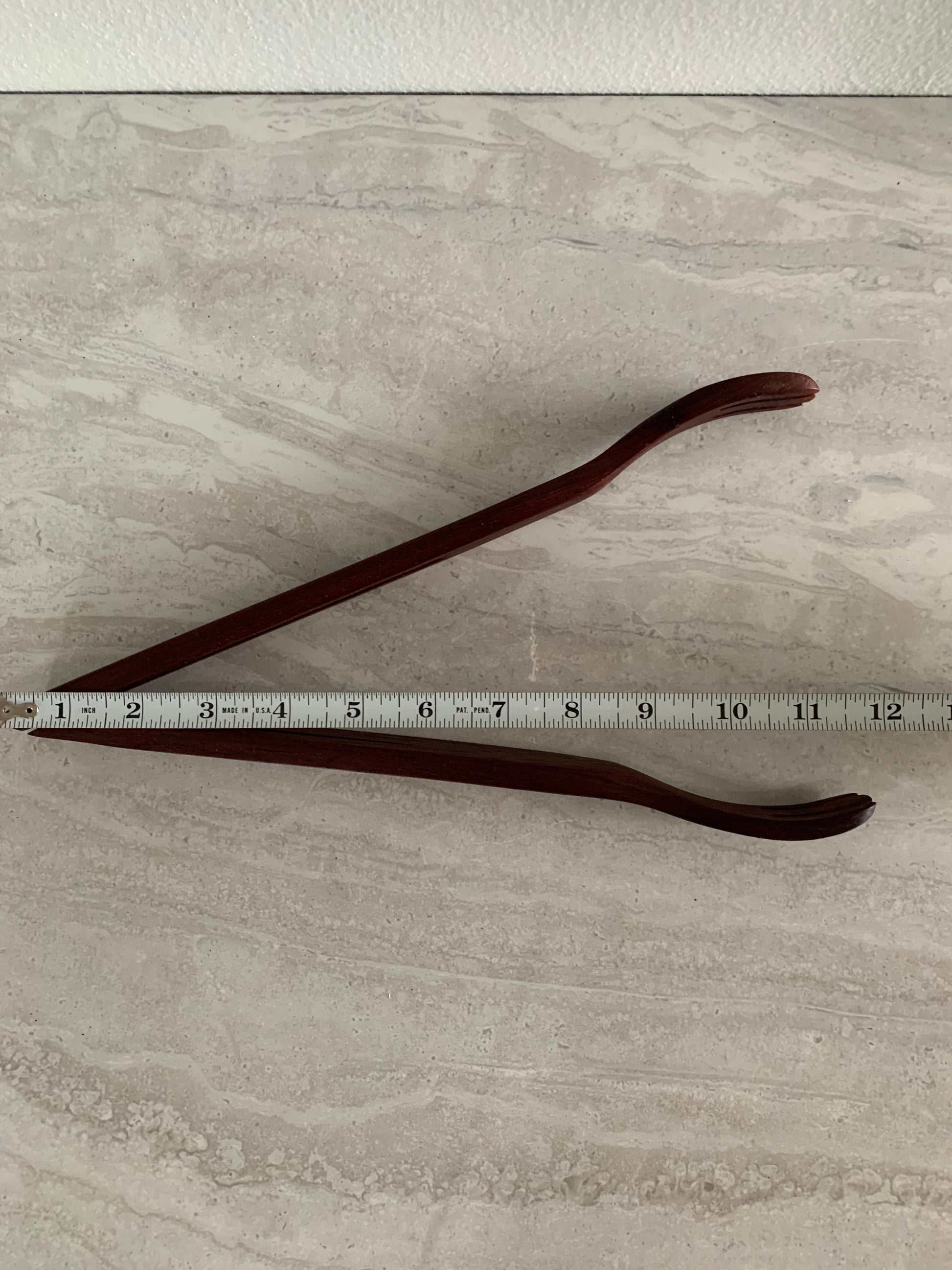 Beautiful rosewood tongs with a unique and versatile clasping design. Great for stove top cooking or serving. Old world charm in simple modern design.
