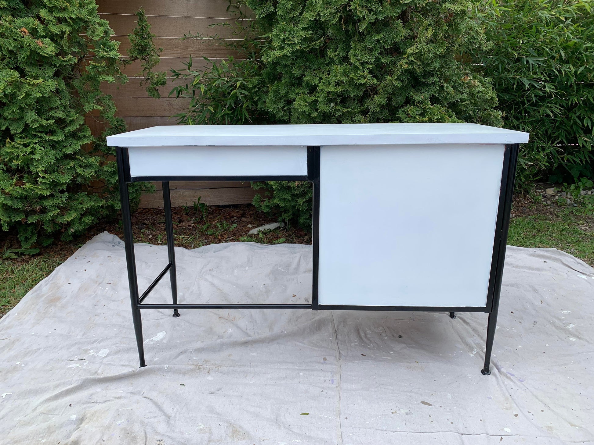 Mid Century Modern Vista of California Writing Desk With White Laminate Top and Black Steel Frame