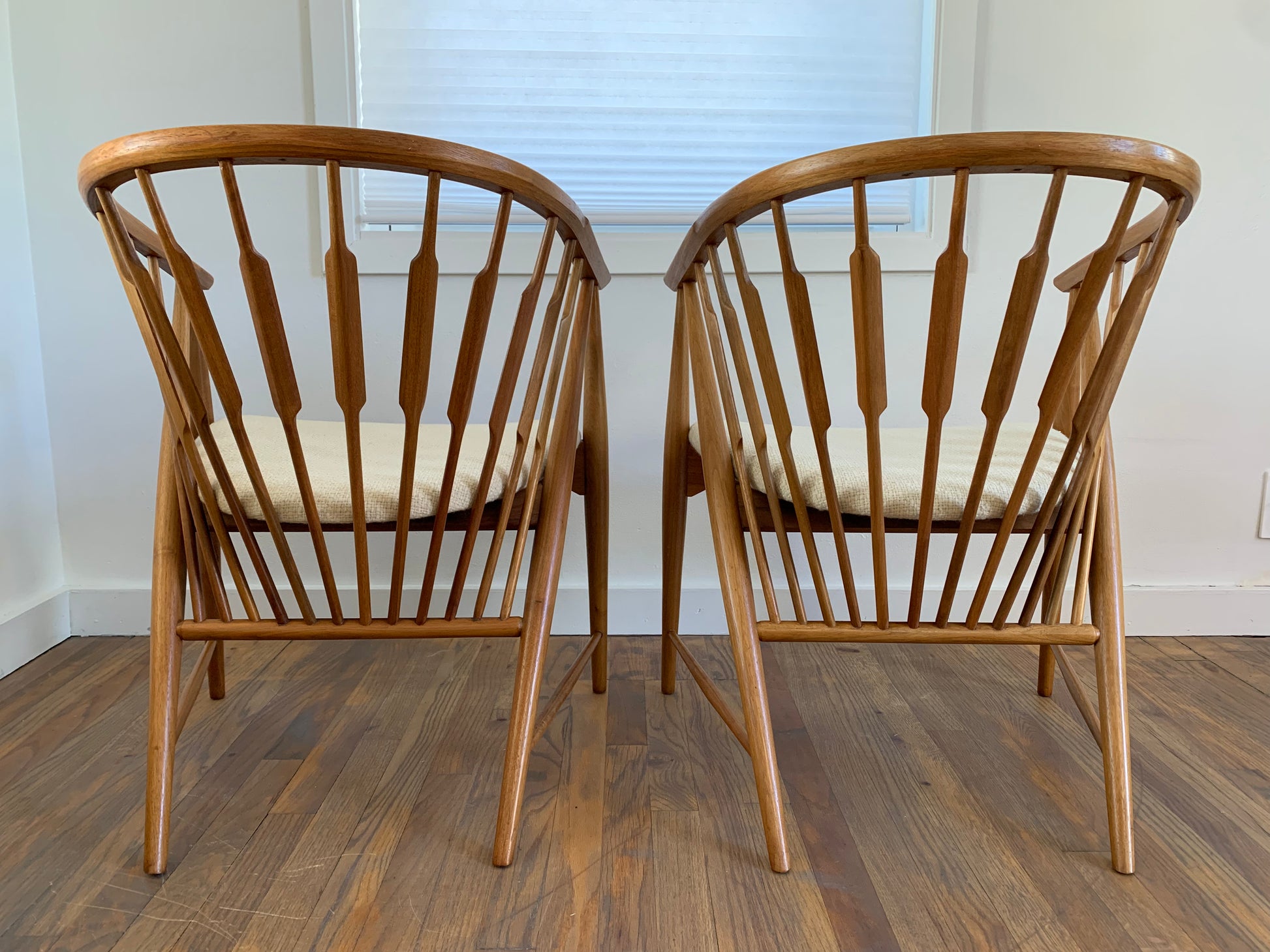 Mid-Century Modern Walnut Spindled Drexel Declaration Captain's Chairs - a Pair
