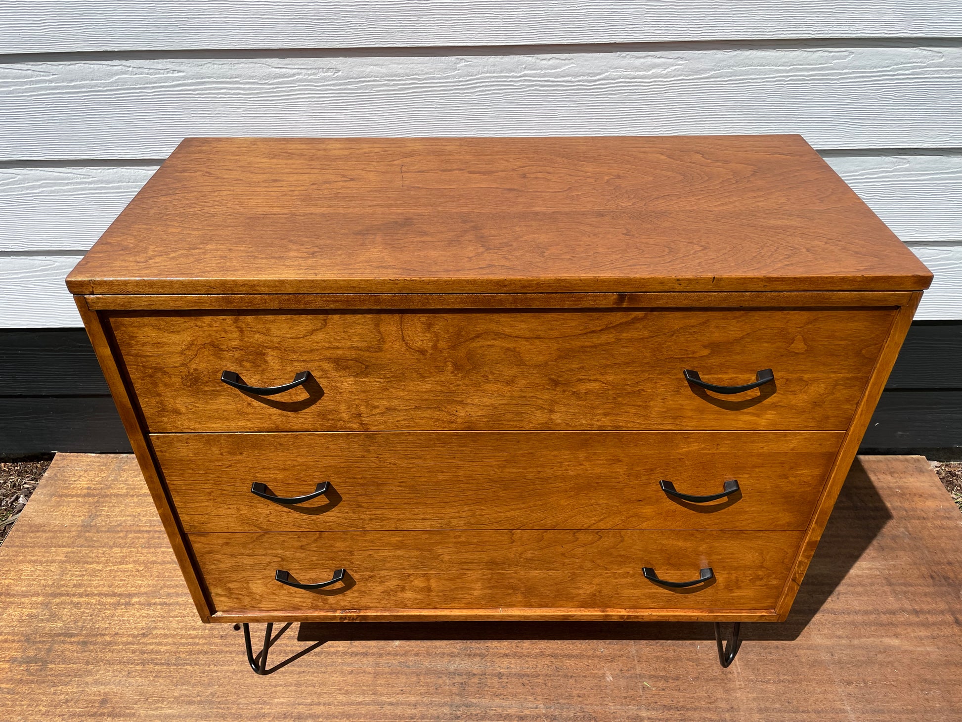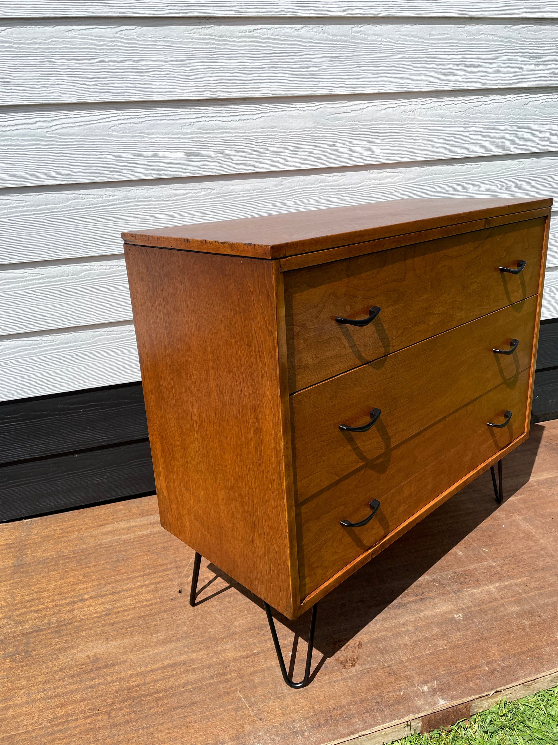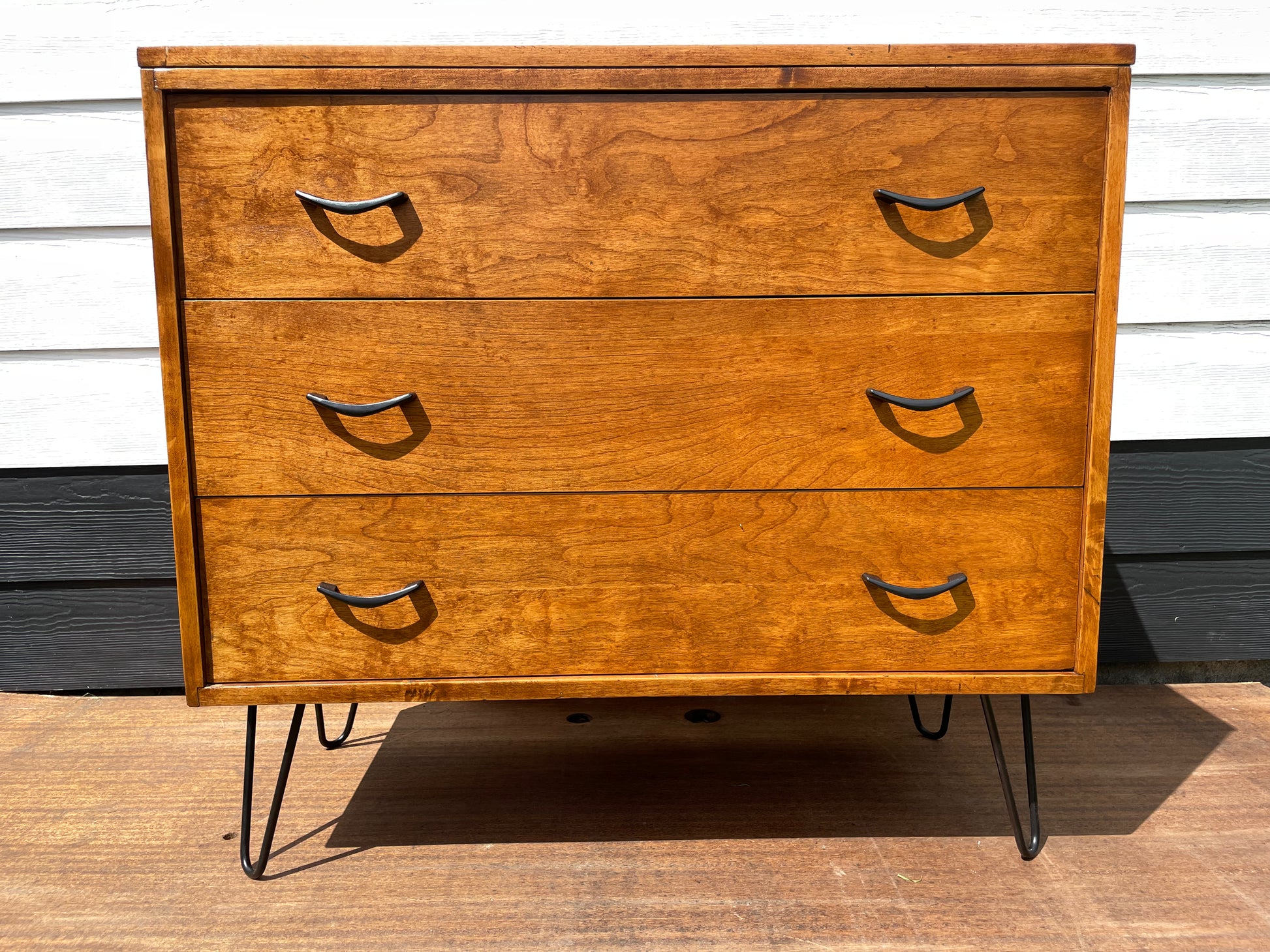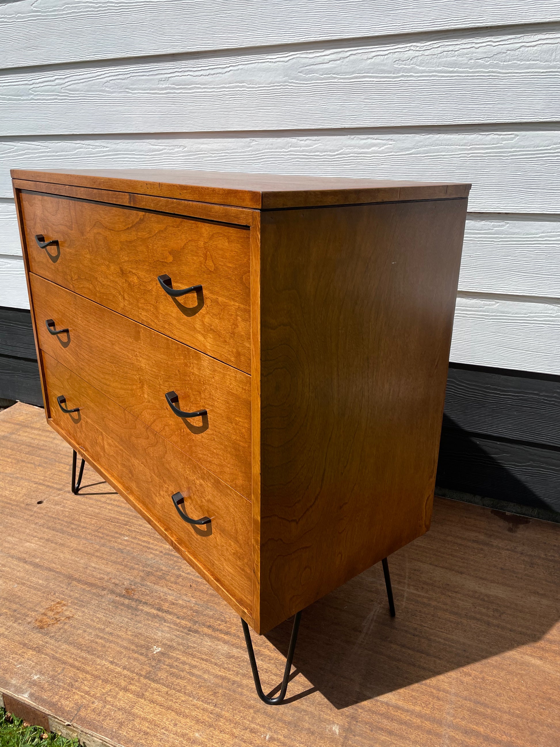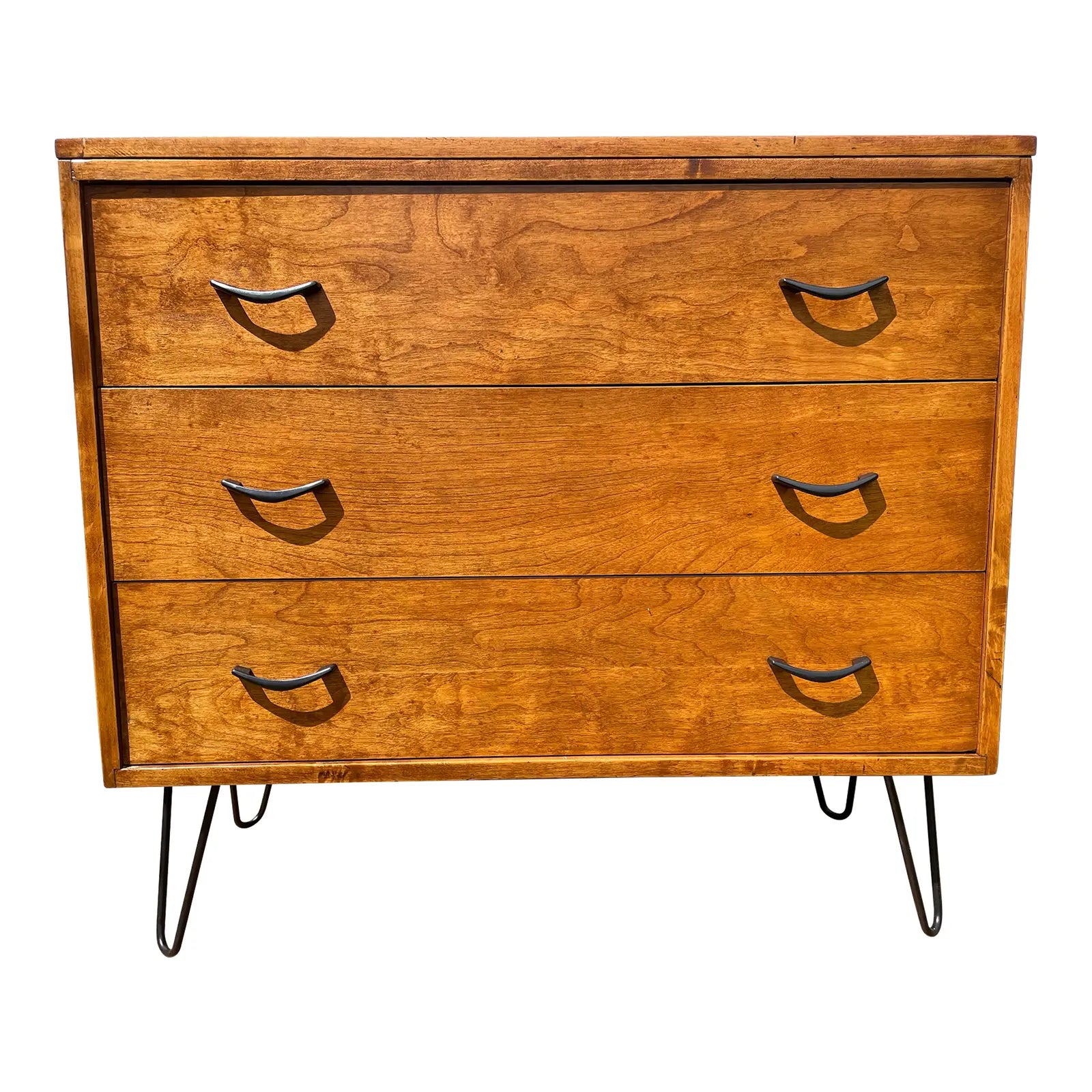 Mid-Century Modern Wood 3 Drawer Dresser on Hairpin Legs