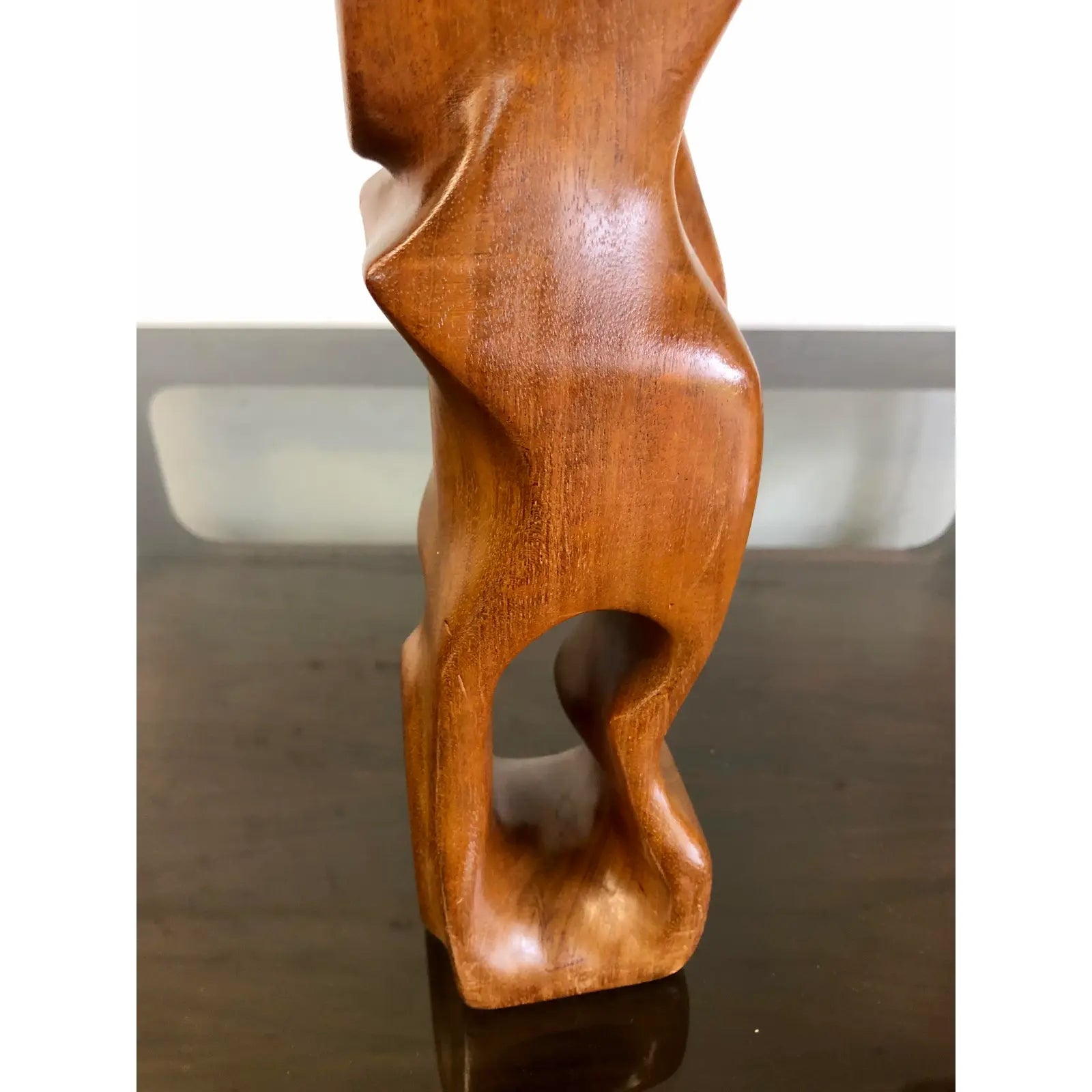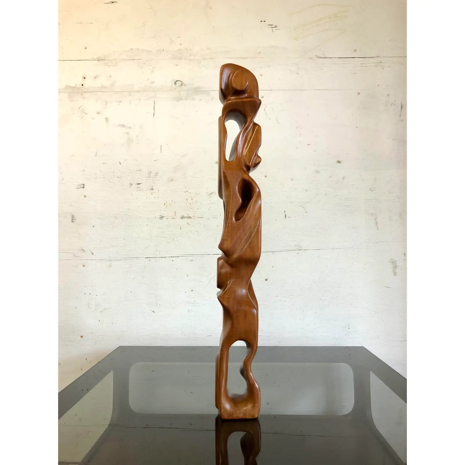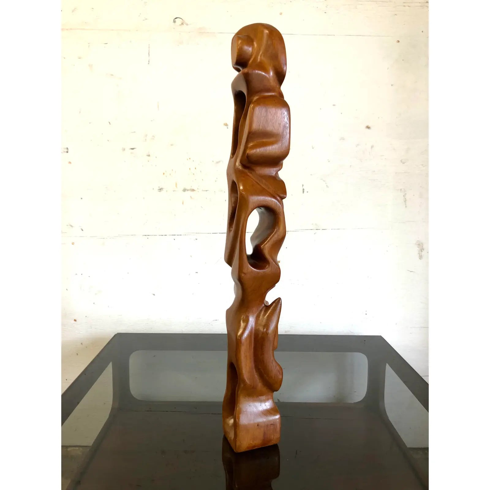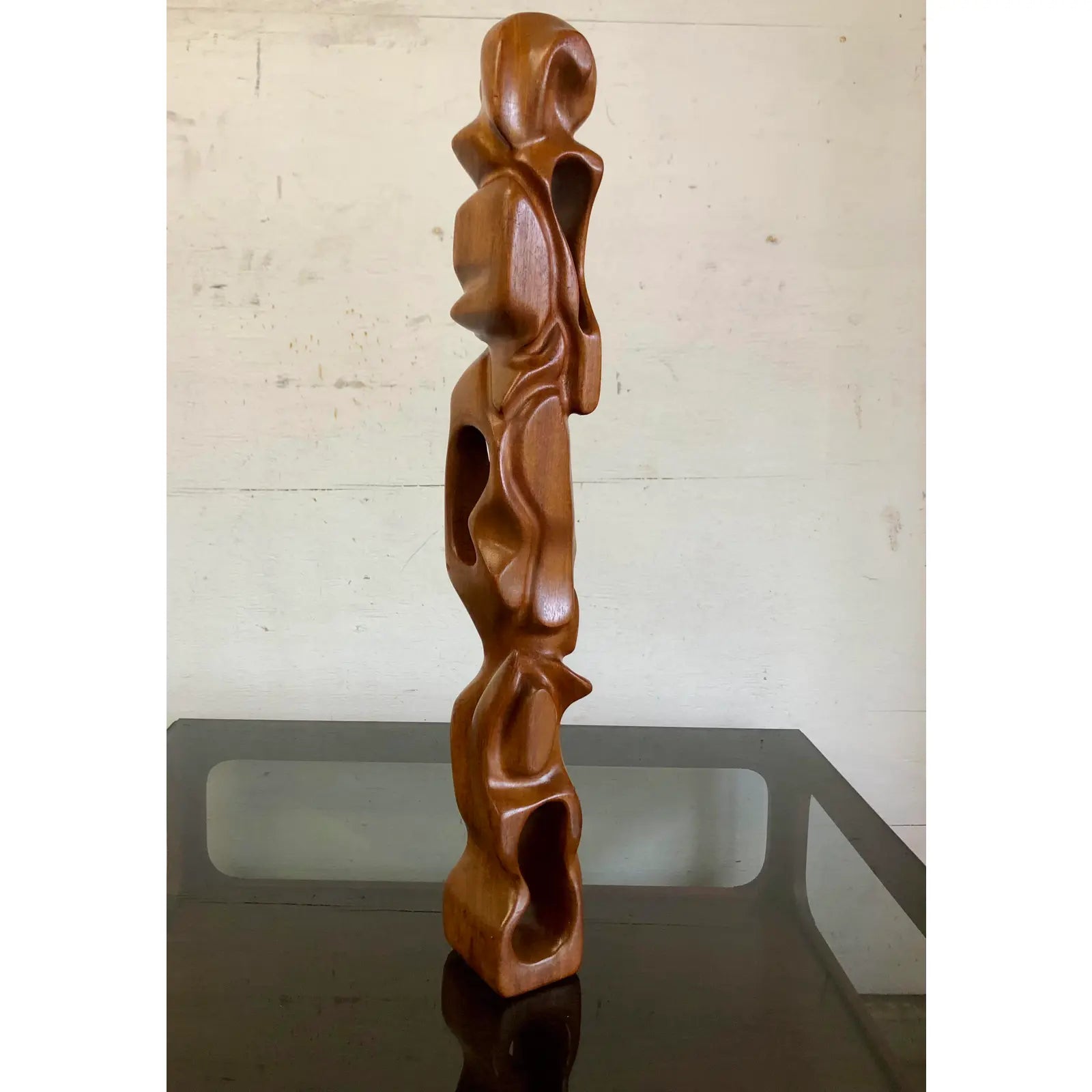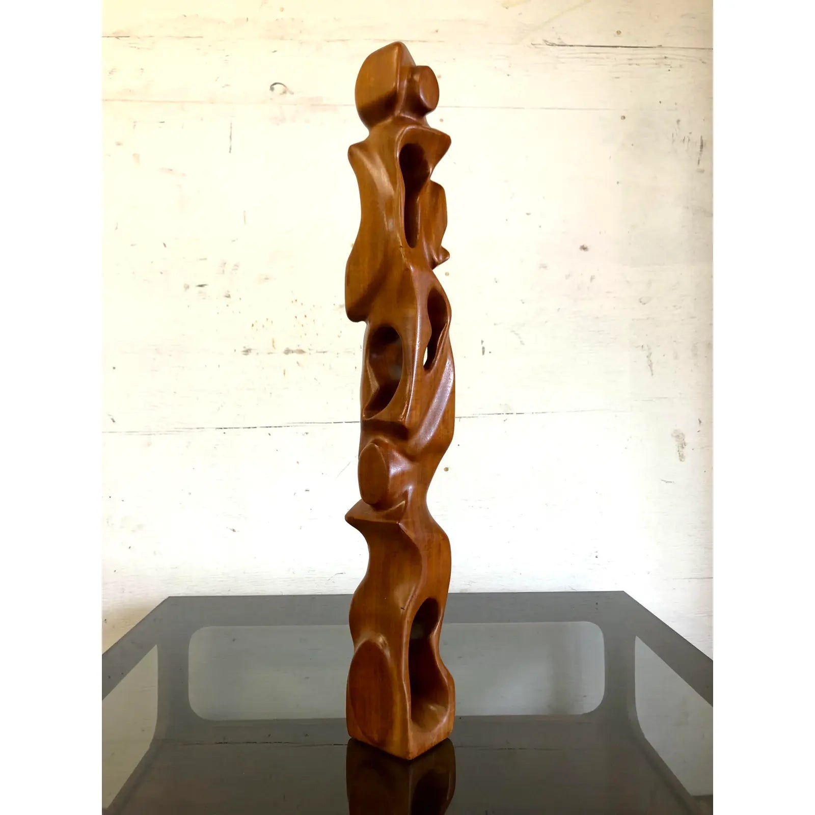 A mid-century signed, artist-handcrafted abstract totem sculpture featuring flowing curves, extrusions and carved through forms allowing light and negative space to balance the piece. The satin sheen allows the forms to reflect light softly throughout the piece.