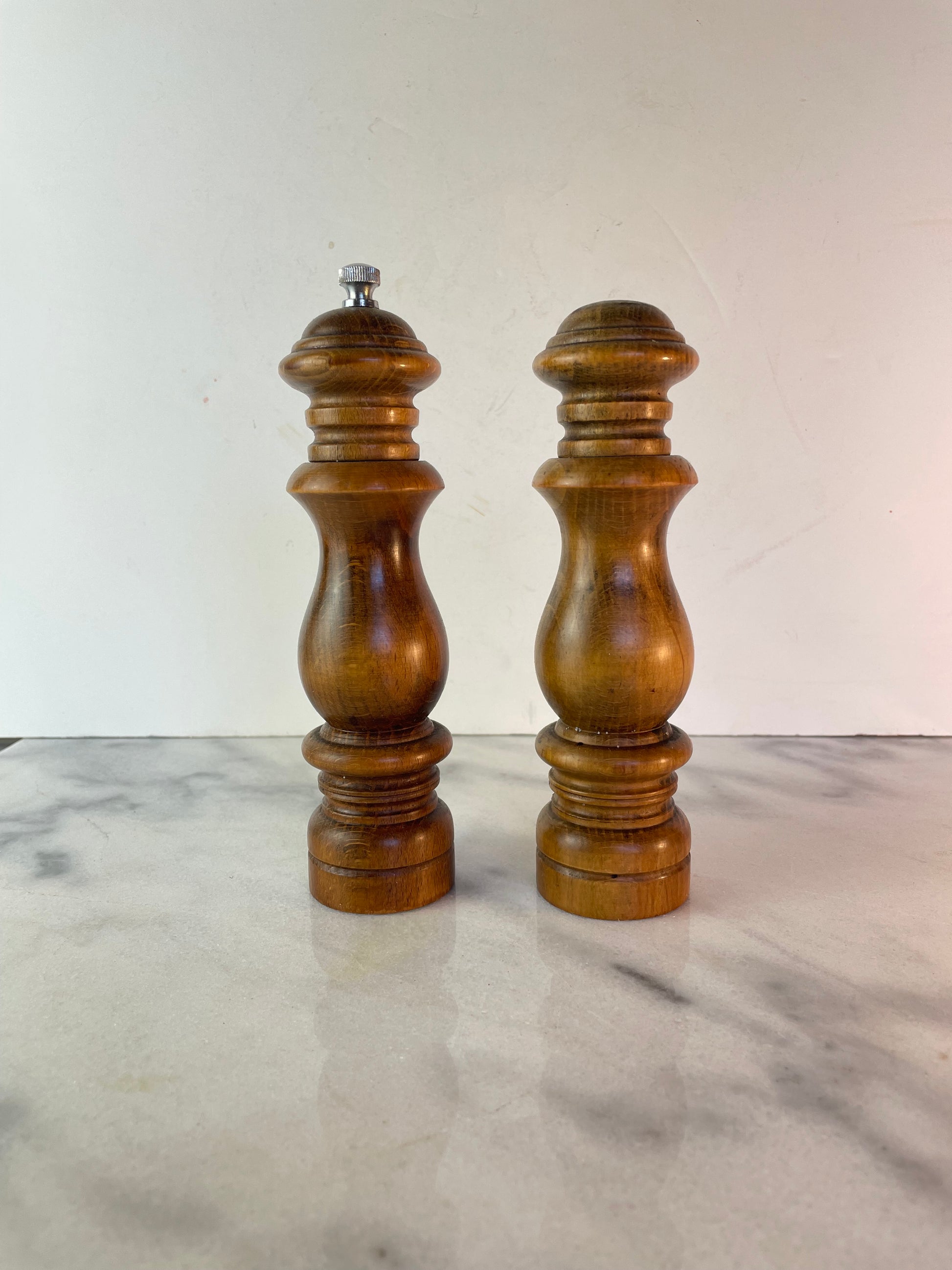 Mid Century Vintage Solid Turned Hardwood Salt Shaker & Pepper Grinder Set – Made in Japan