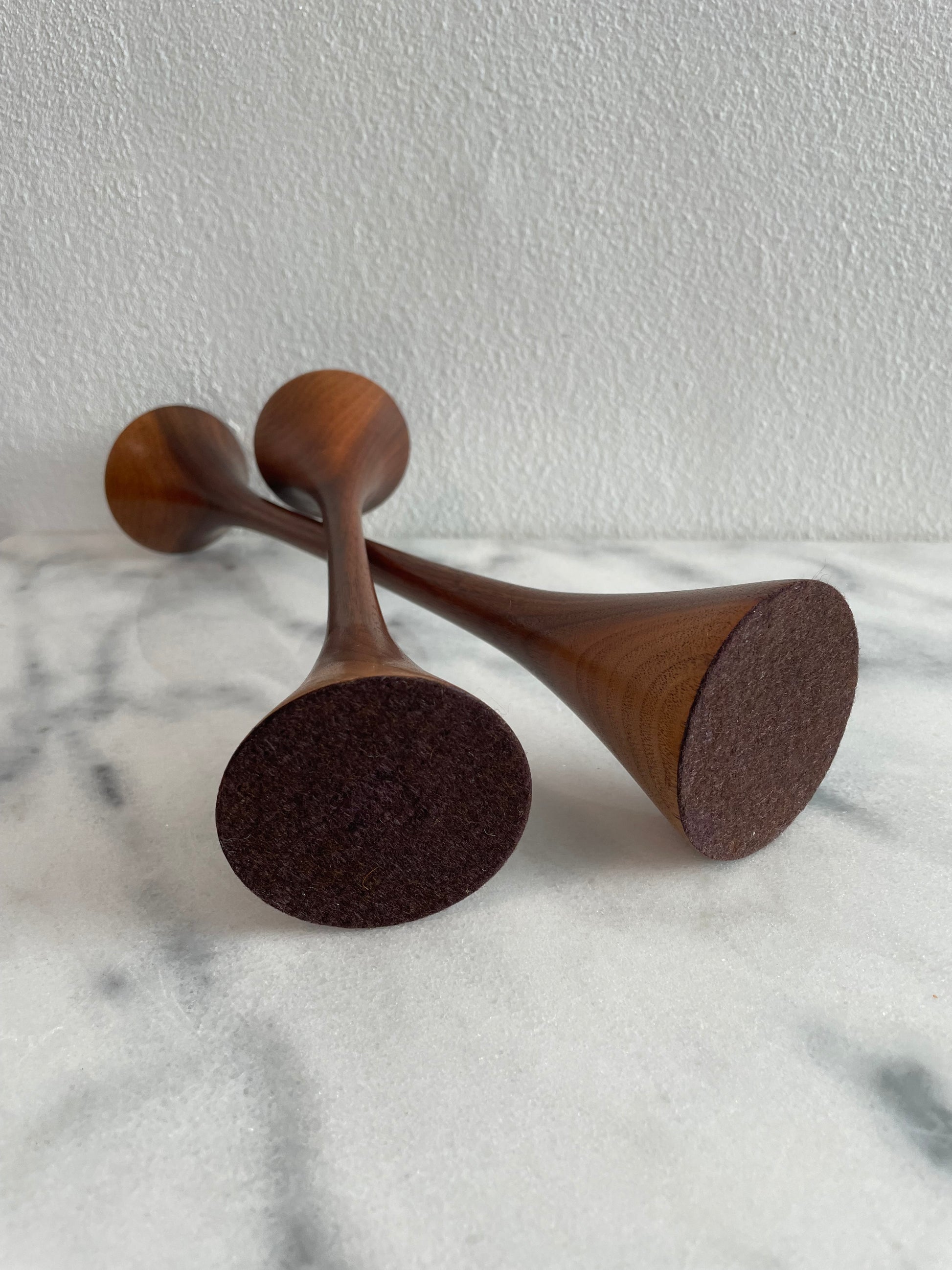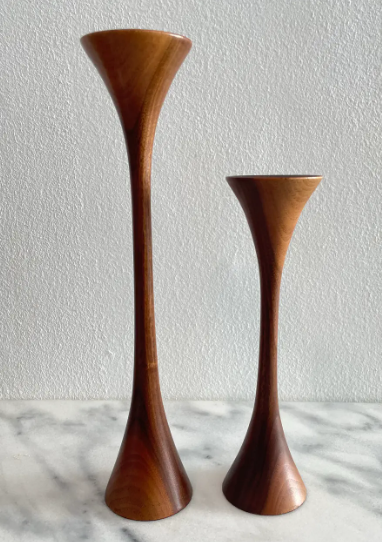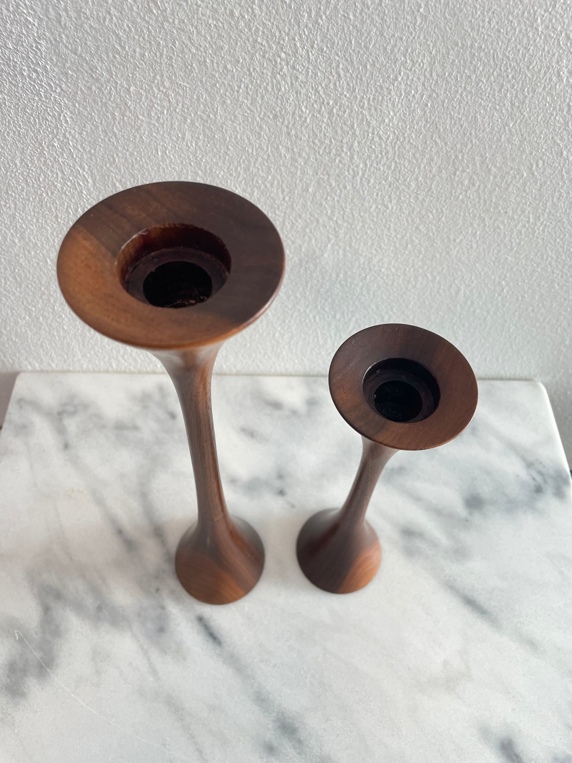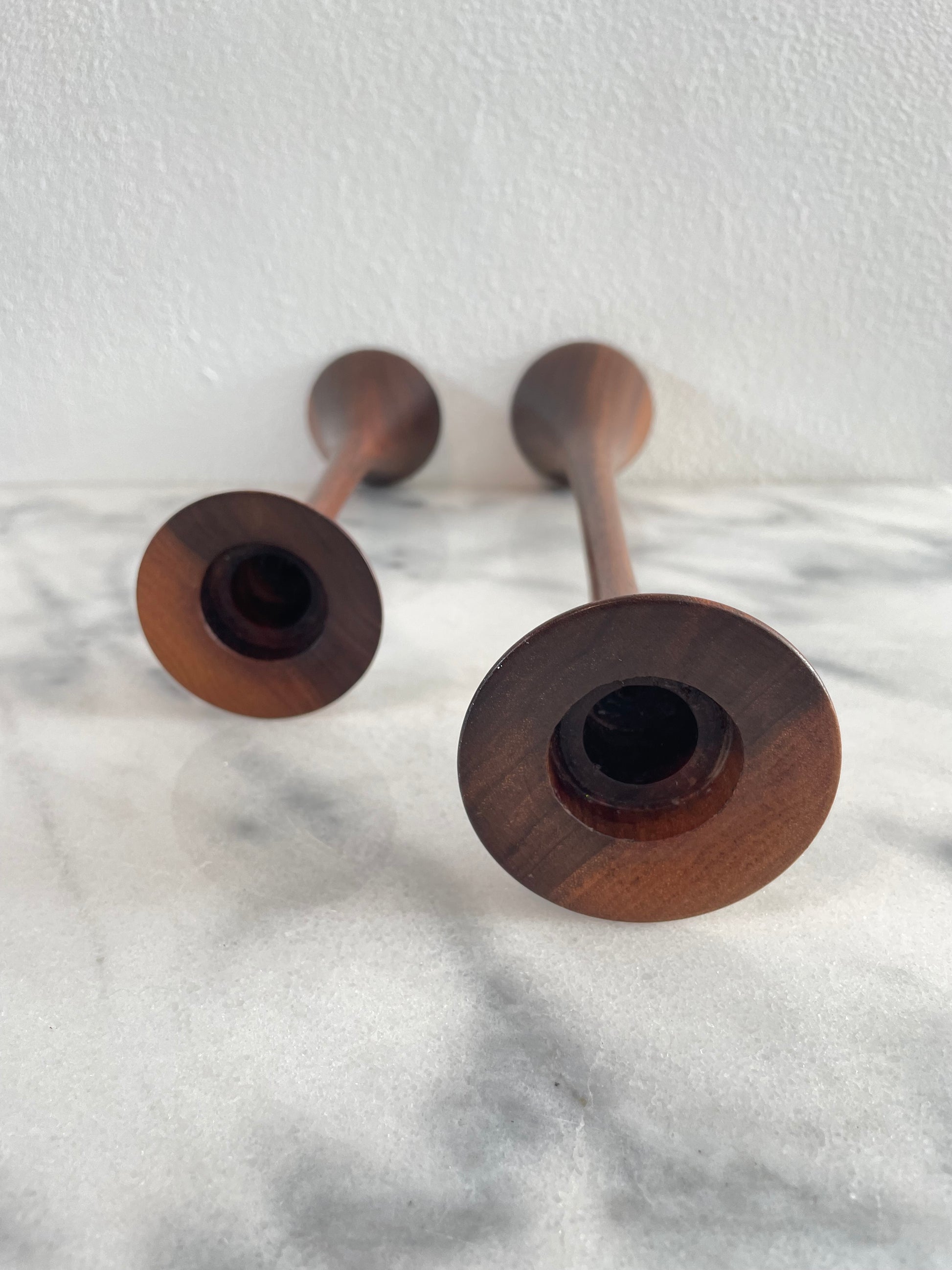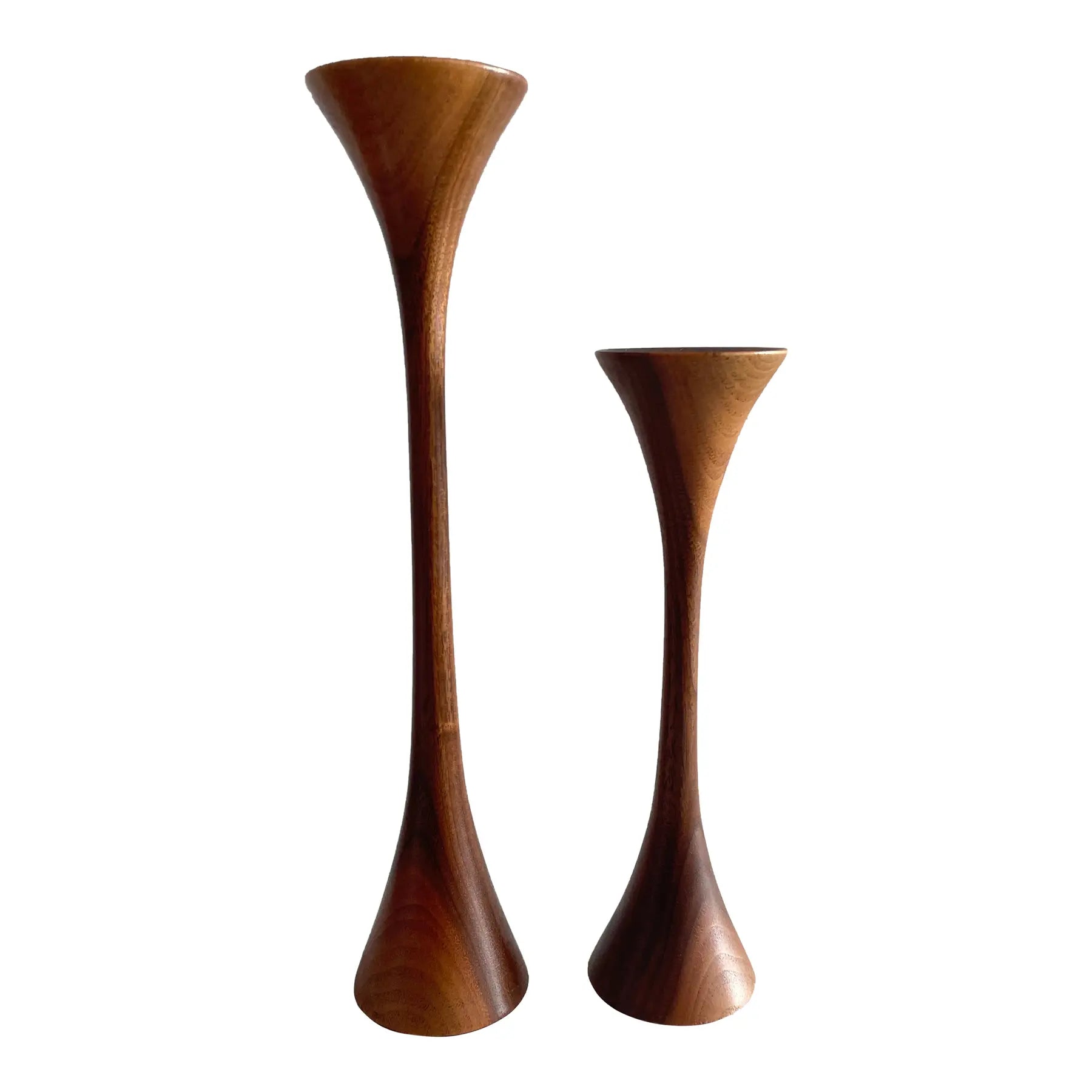 Mid-Century Walnut Tapered Tulip Candlesticks - Pair