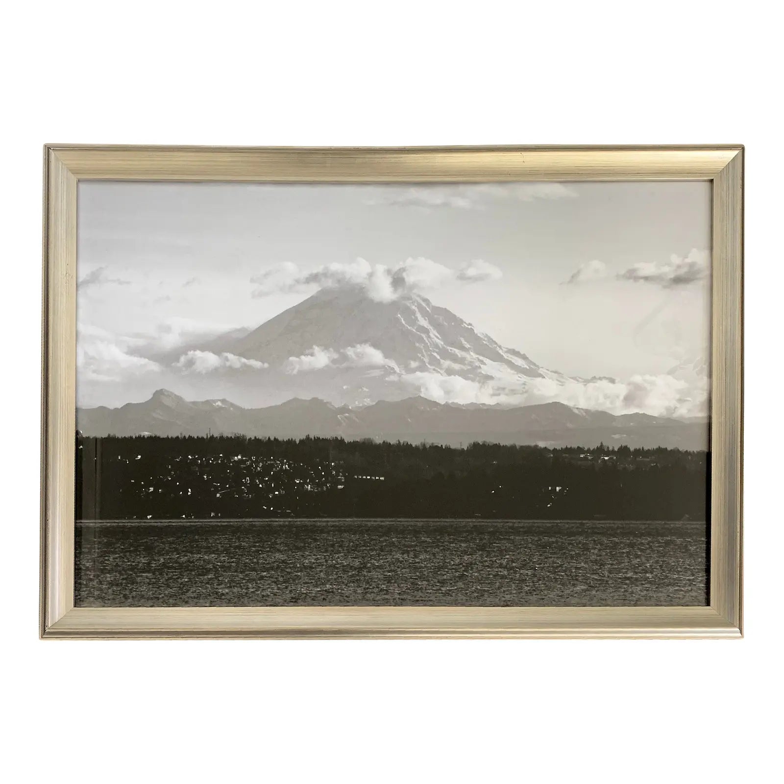 "Mt. Rainier" Mountain Landscape Black and White Photograph, Framed