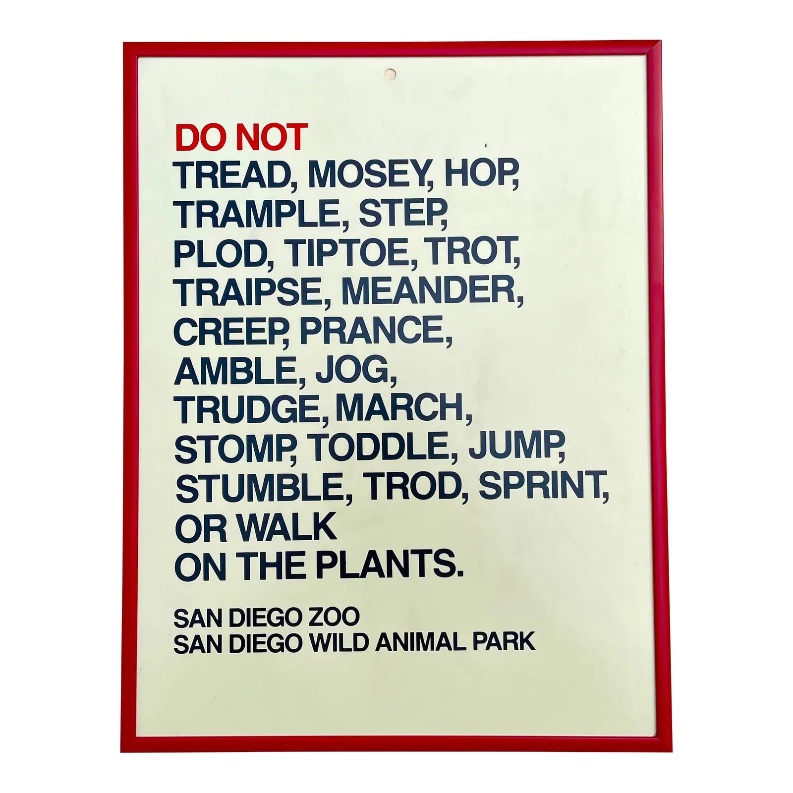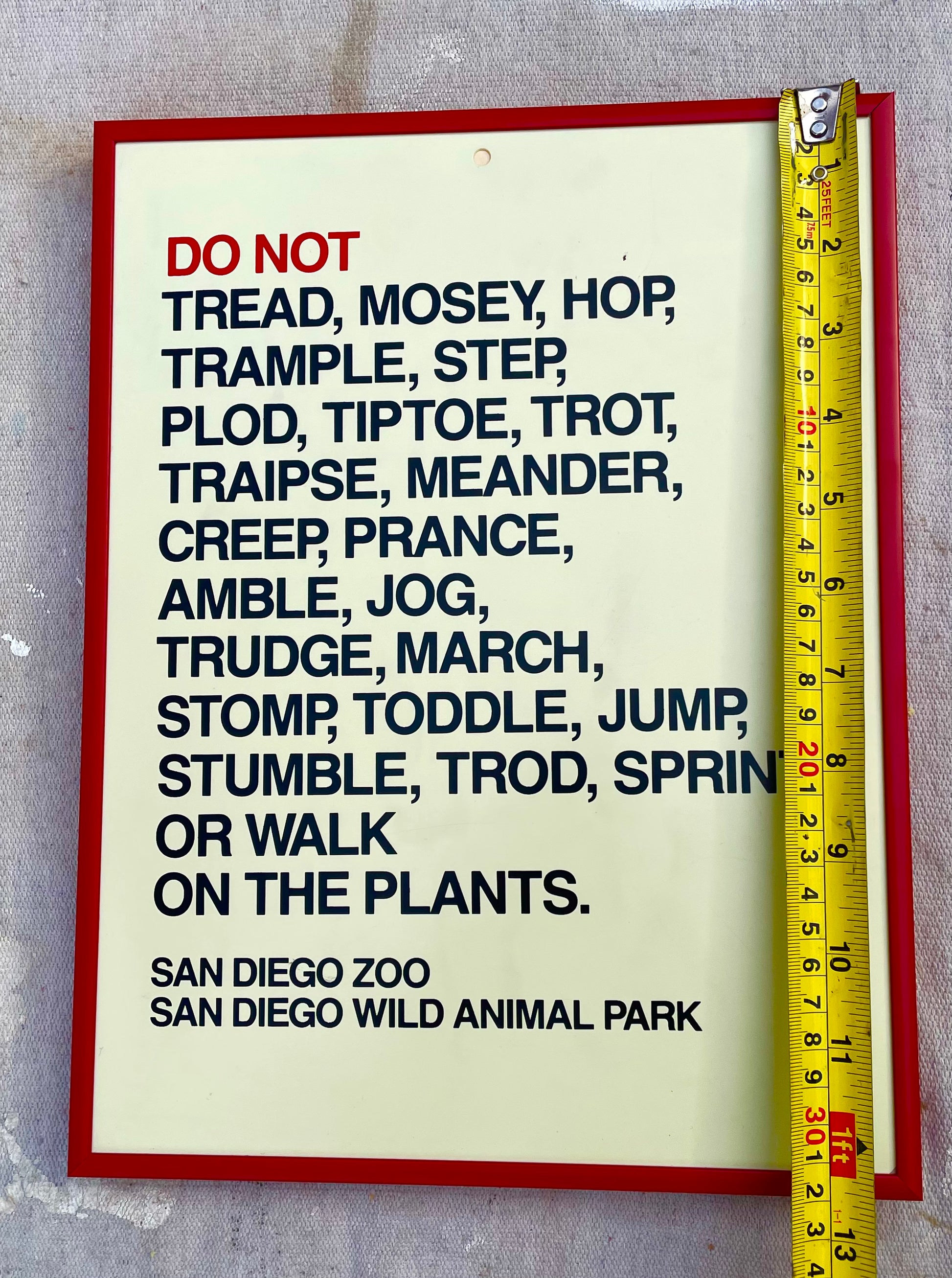Rare San Diego Zoo Sign - Plant Protection With Graphic Typography