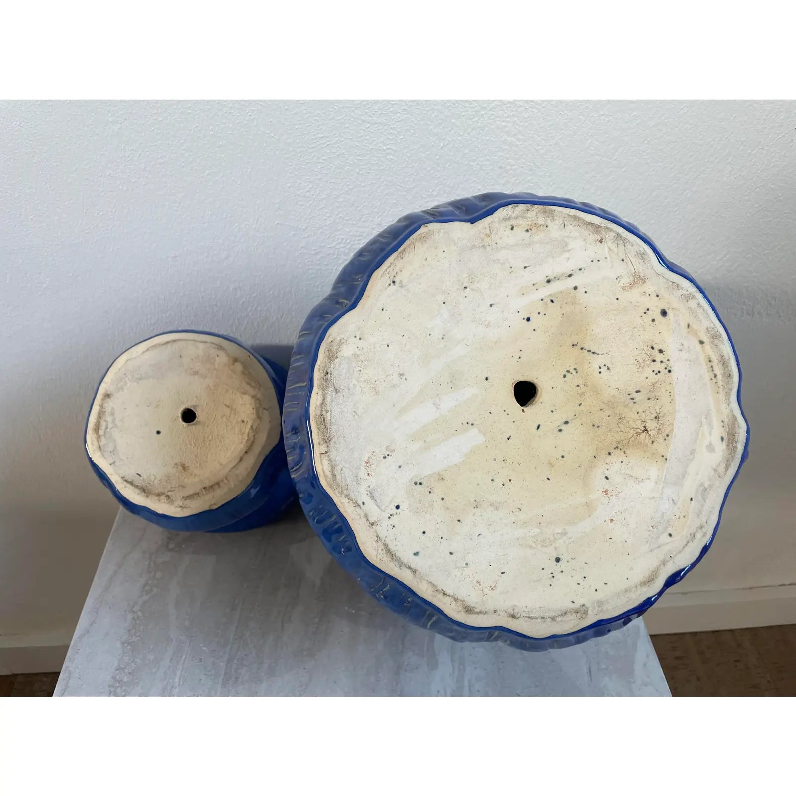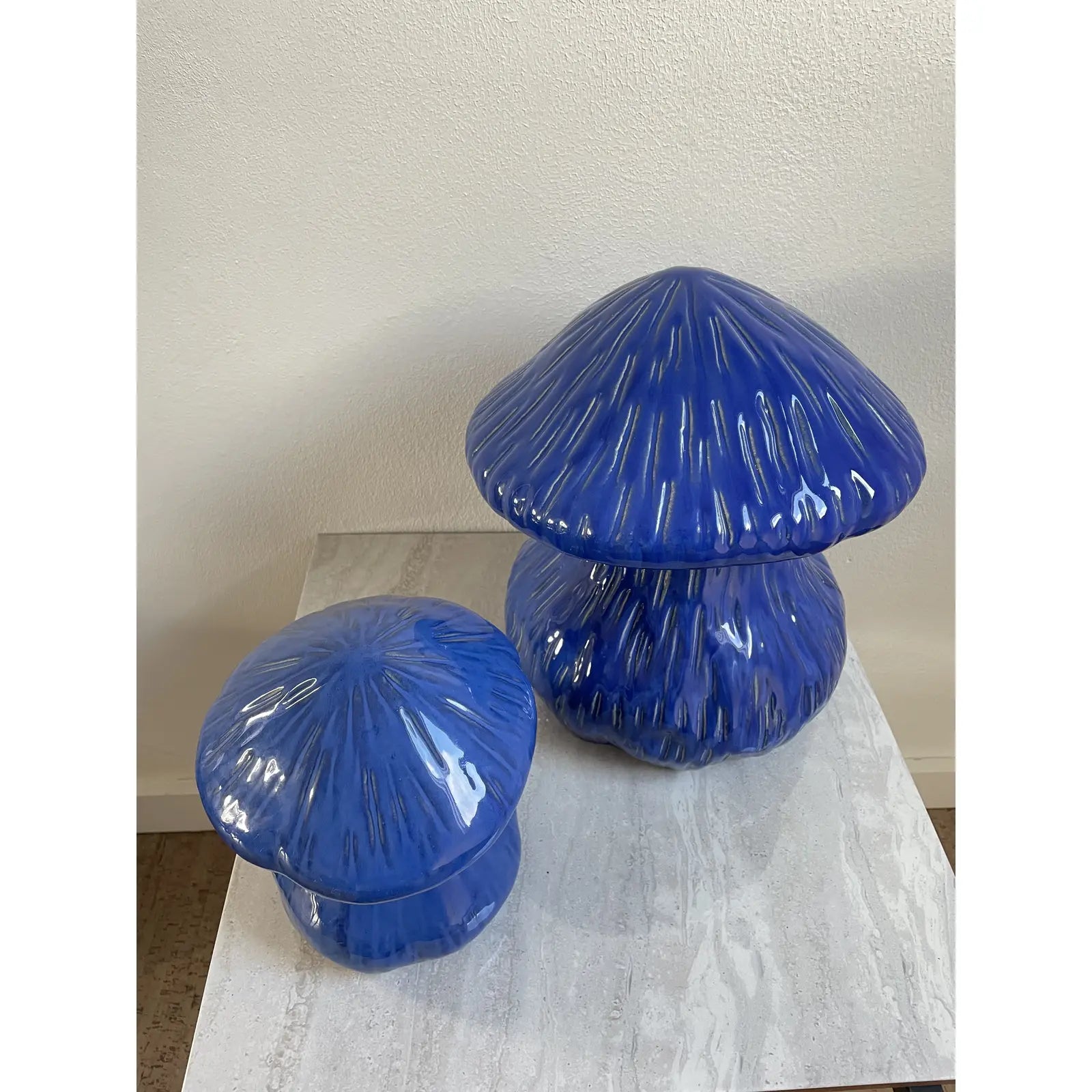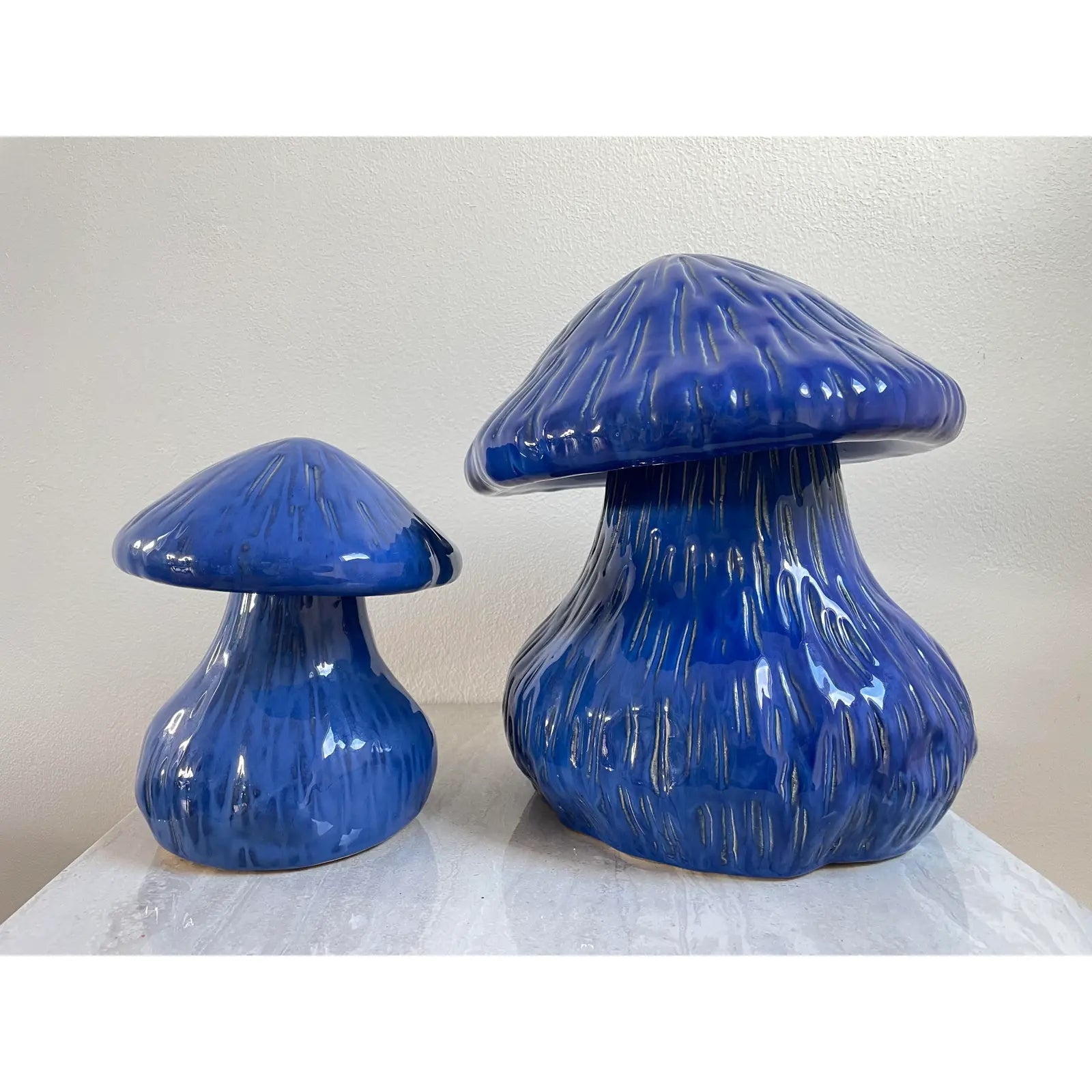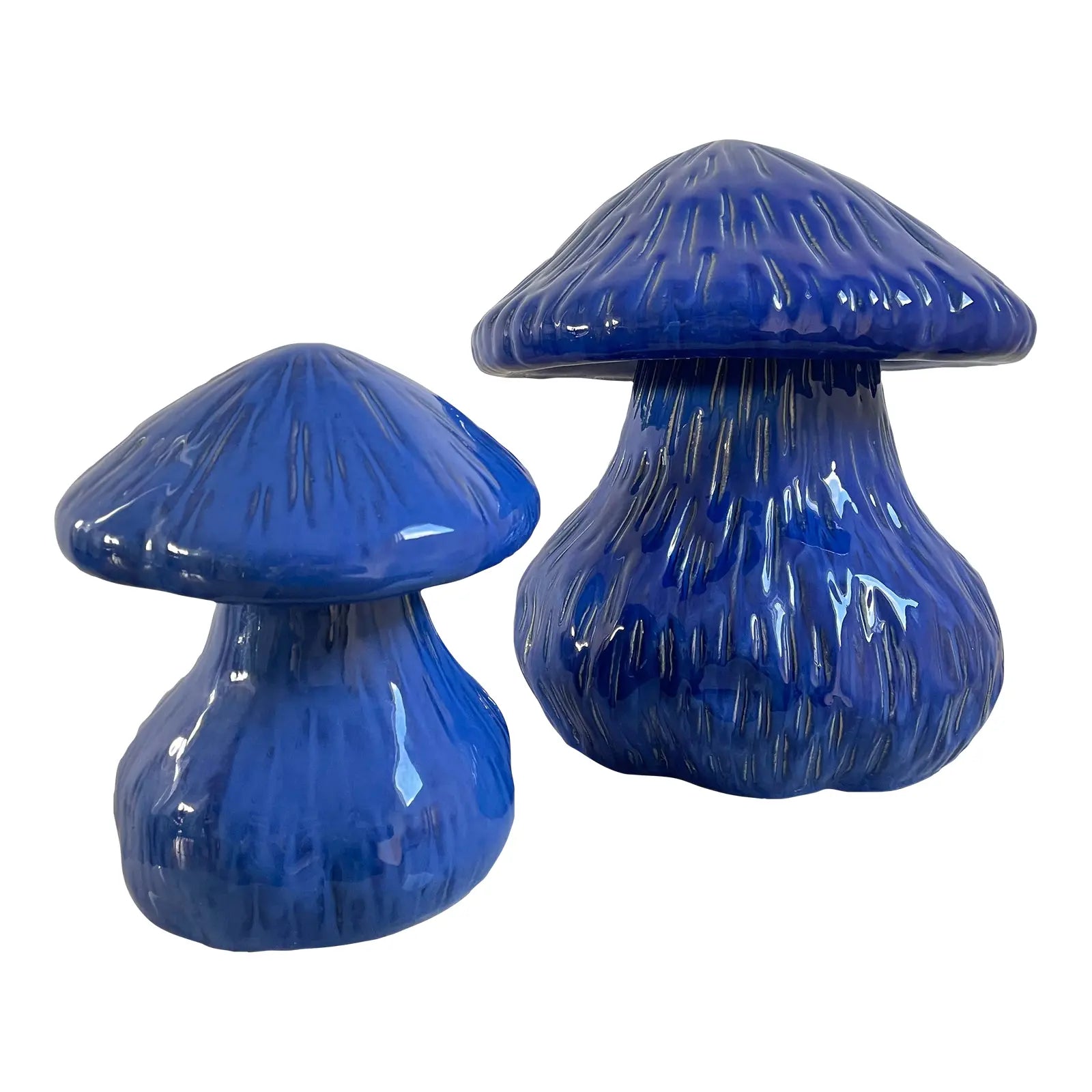 Vintage 1990s Pair of Large Cobalt Blue Glazed Ceramic Mushrooms