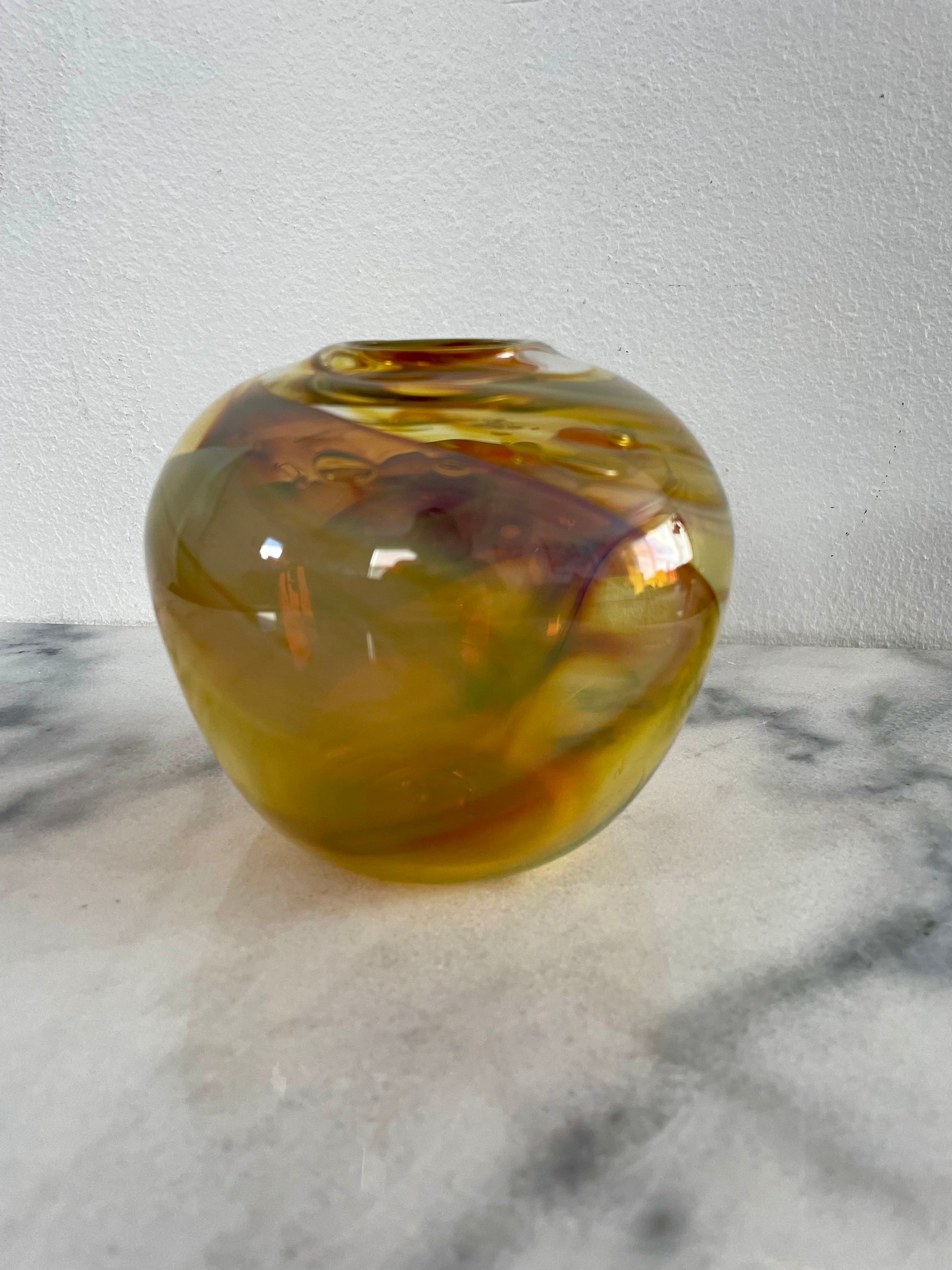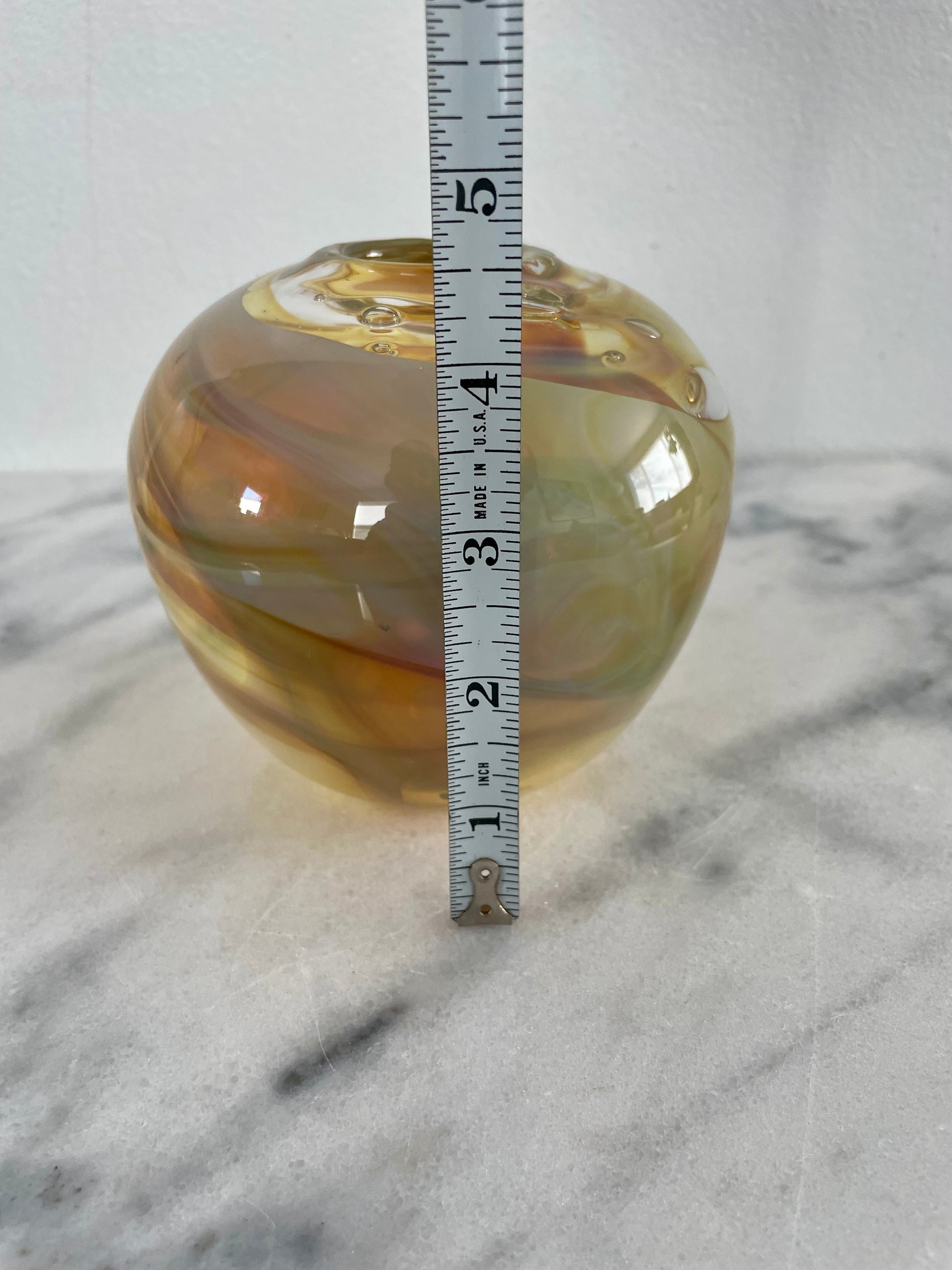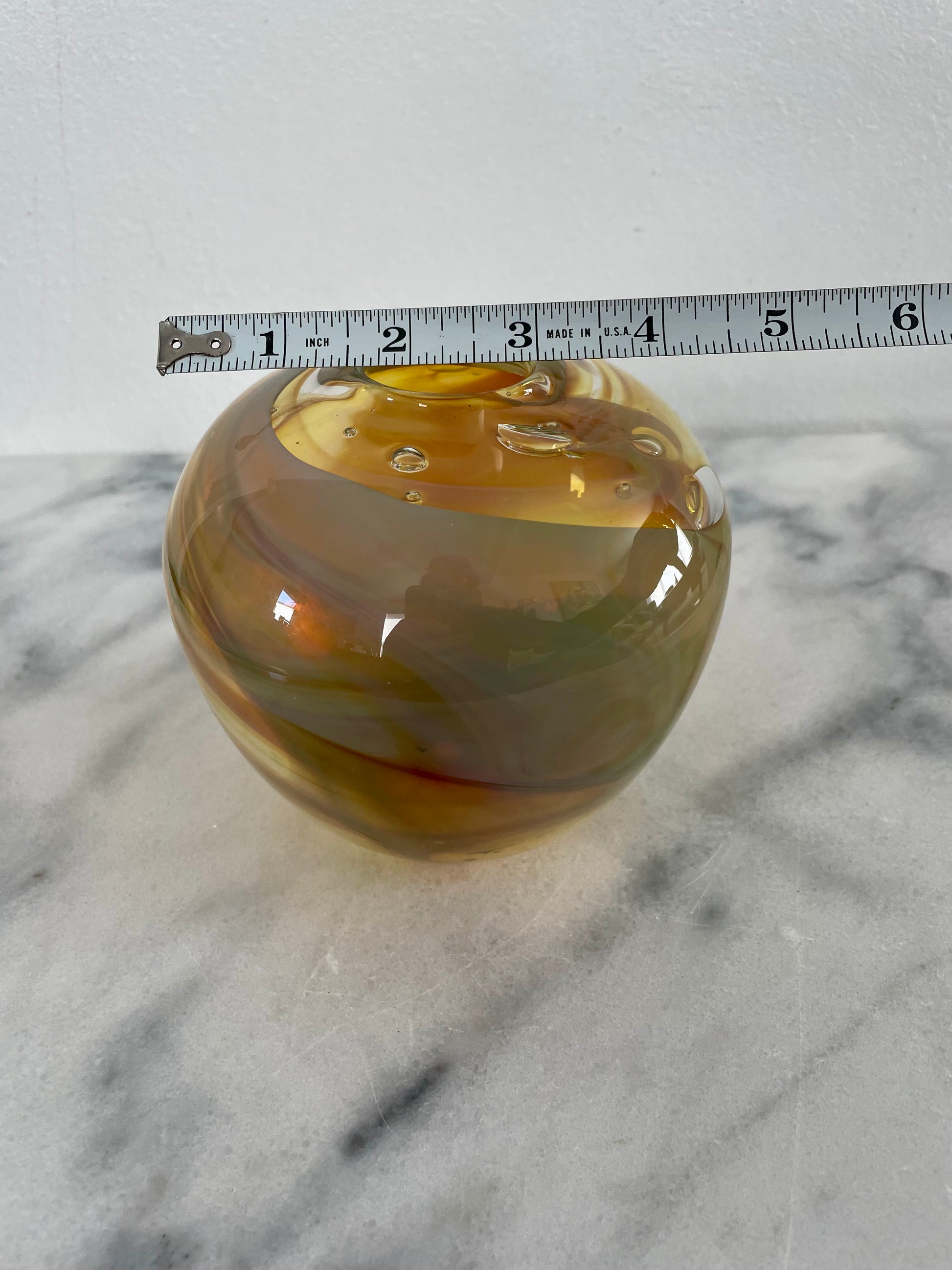 Vintage Amber Opalescent Swirled Mouth Blown Glass Vase