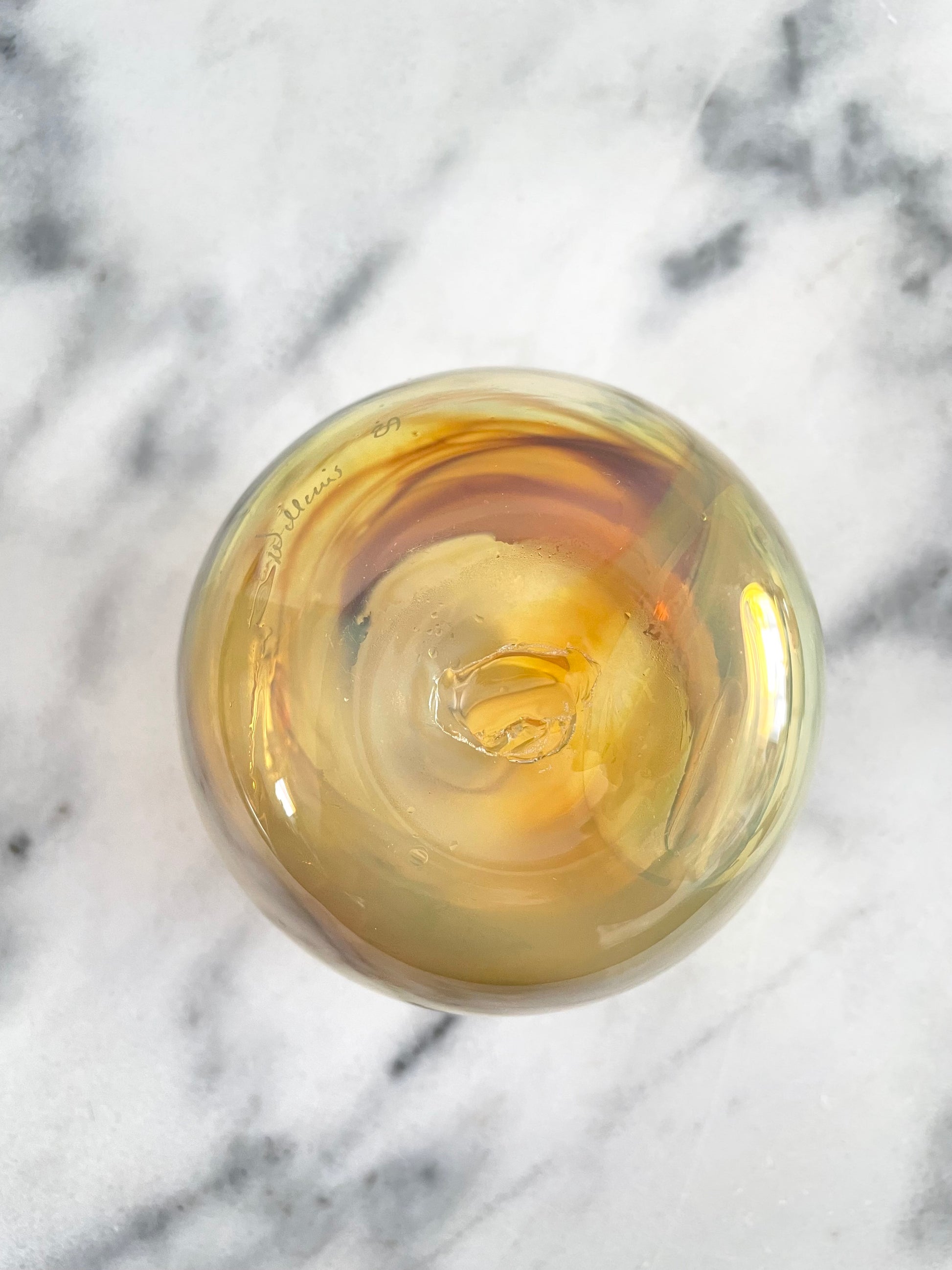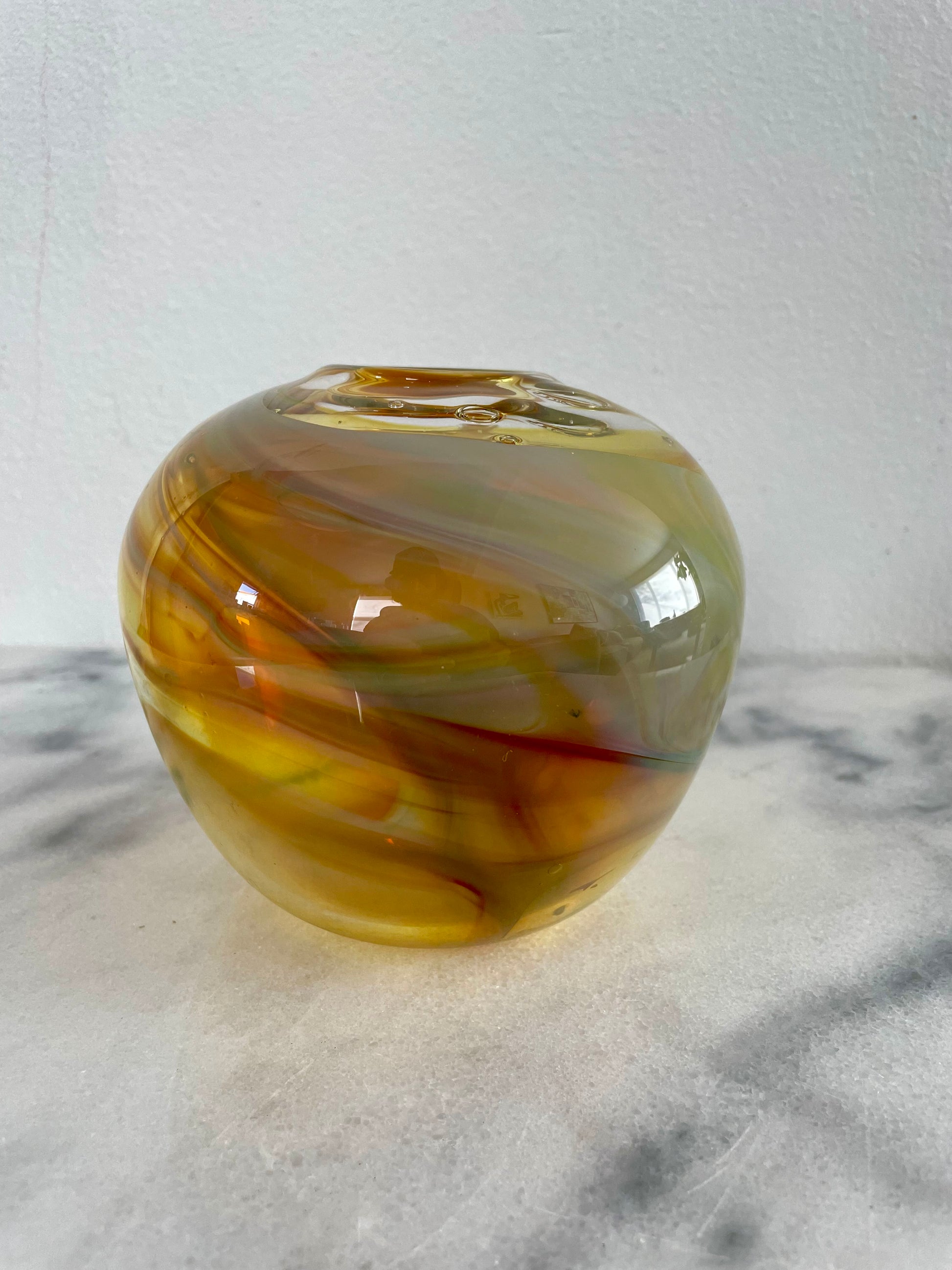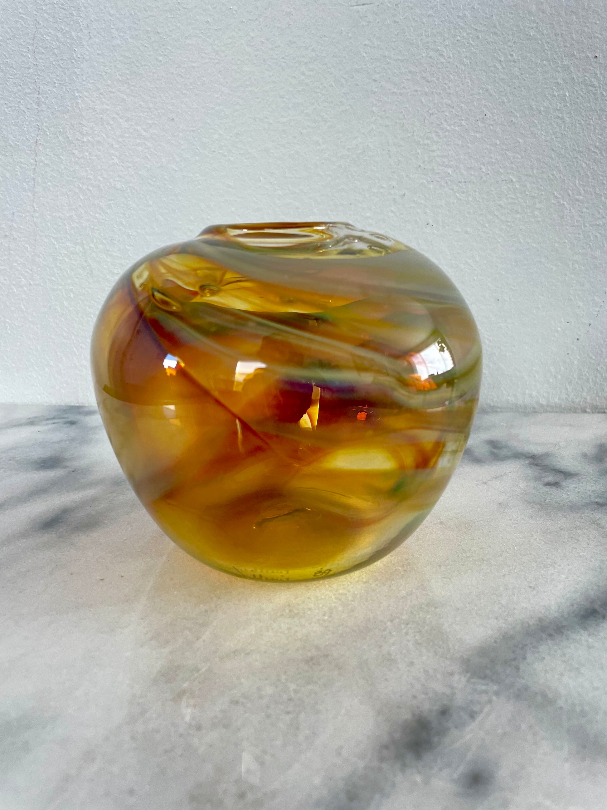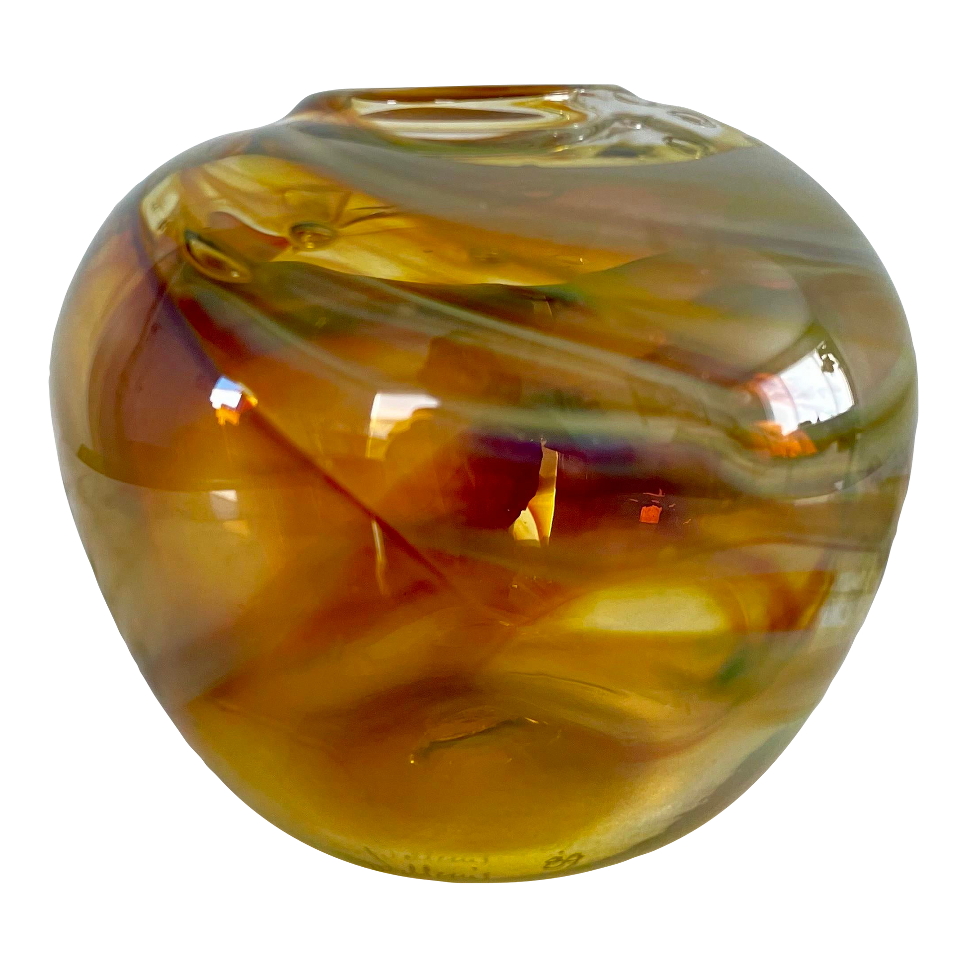 Vintage Amber Opalescent Swirled Mouth Blown Glass Vase