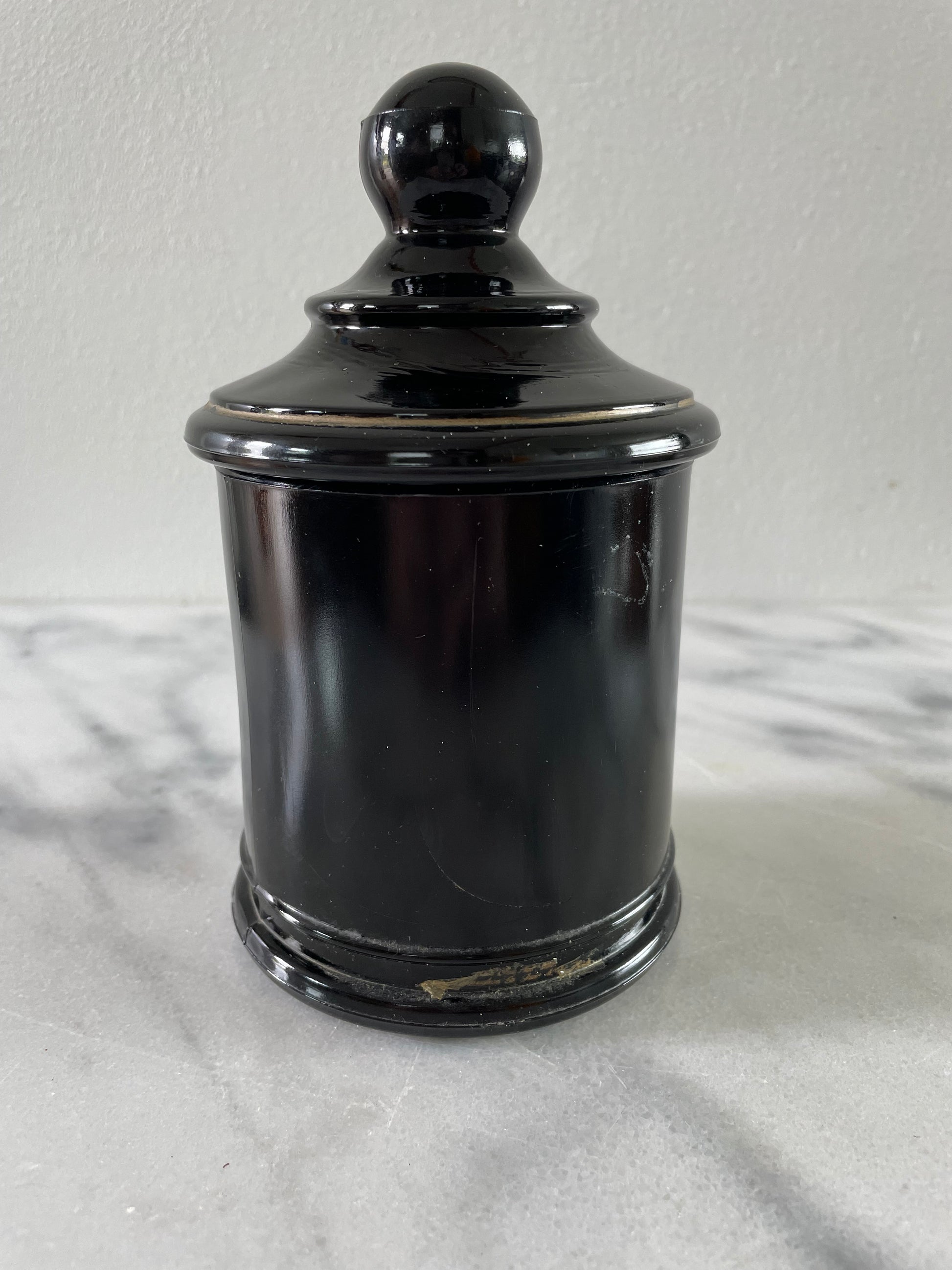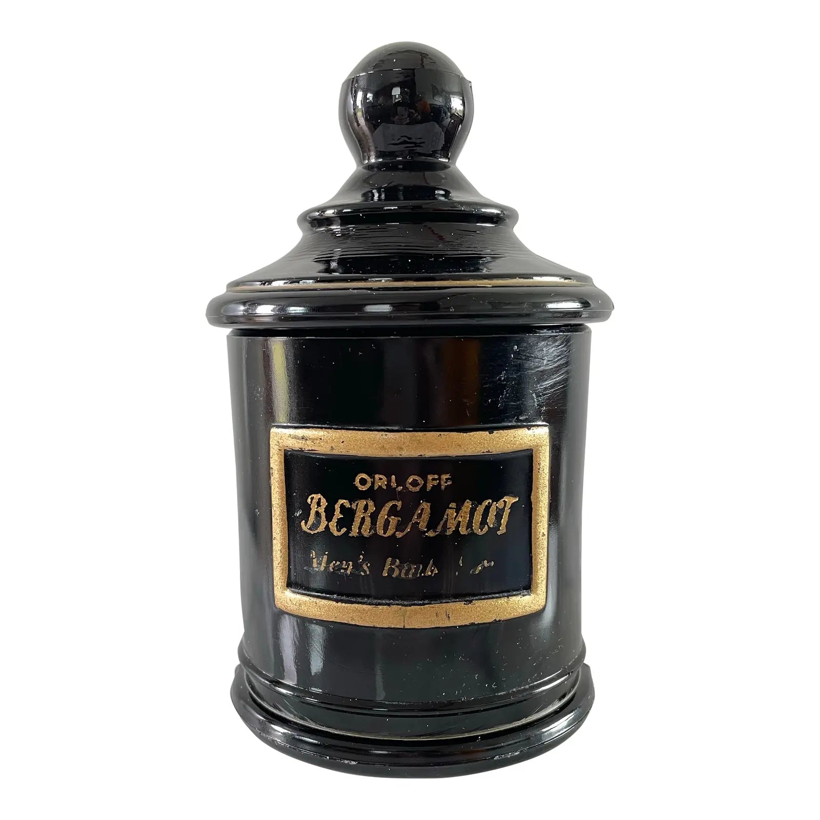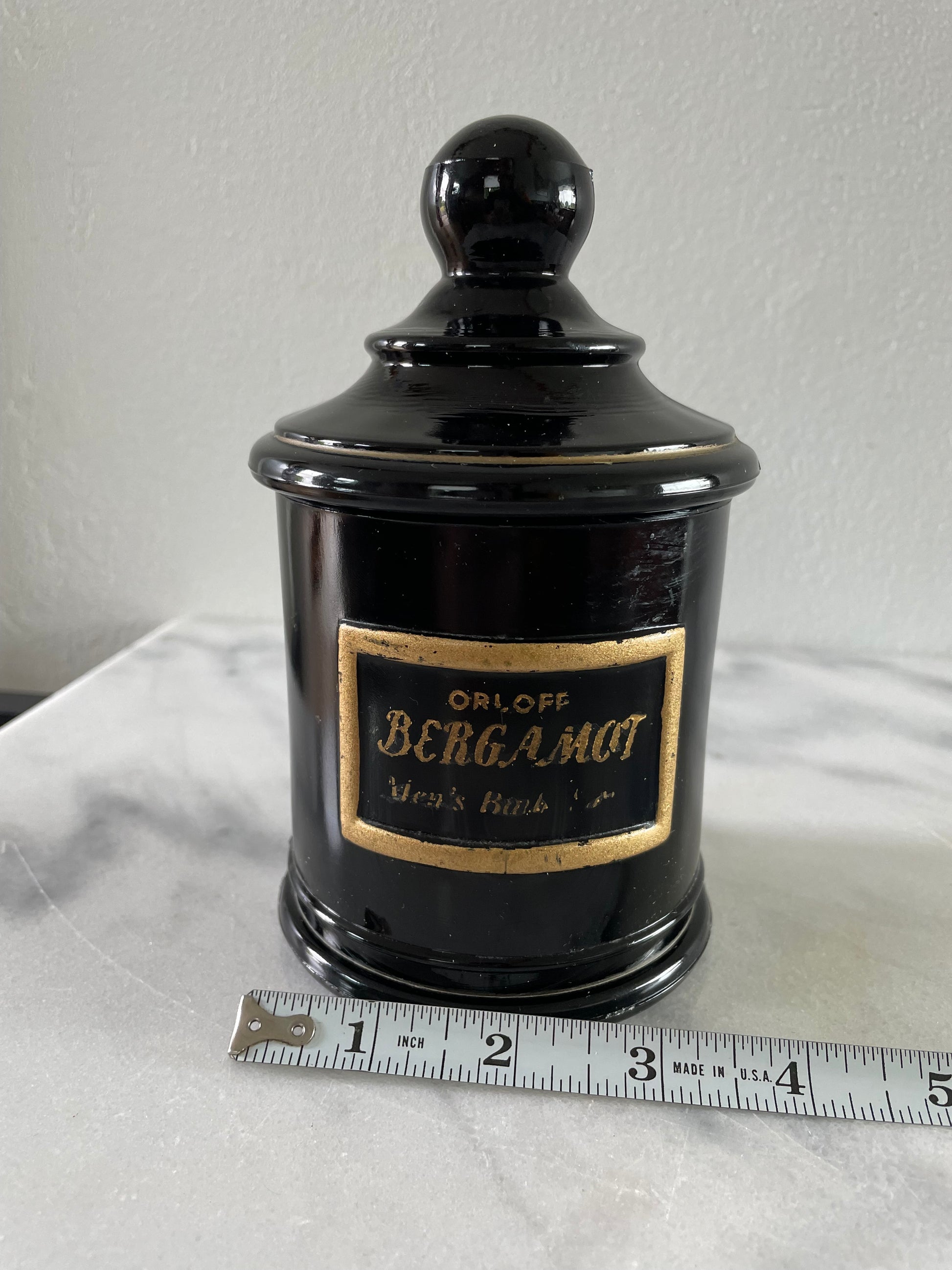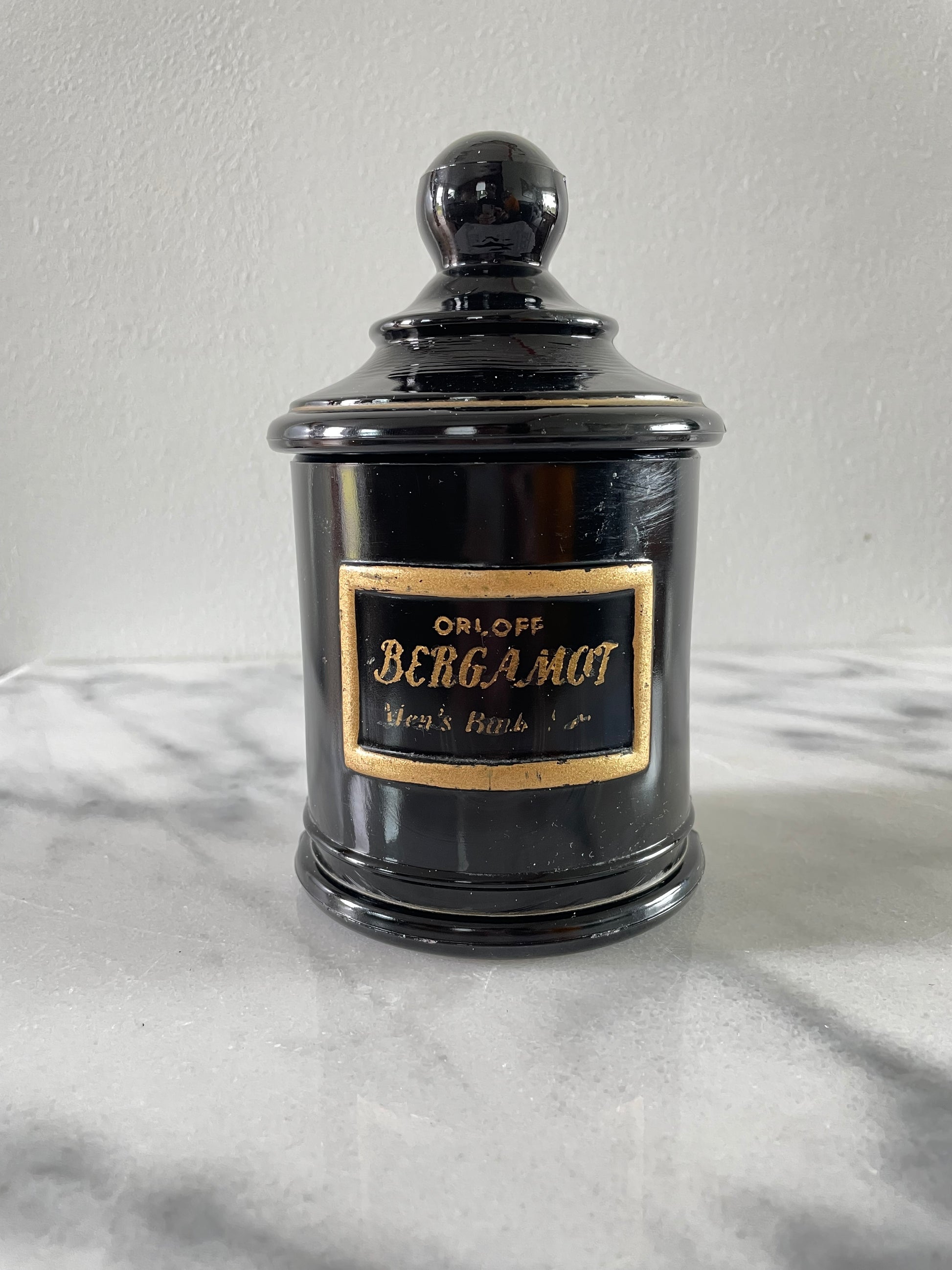 Vintage Black Glass Apothecary Jar Jean Vivaudou Co. Orloff Bergamot Men's Bath Talc