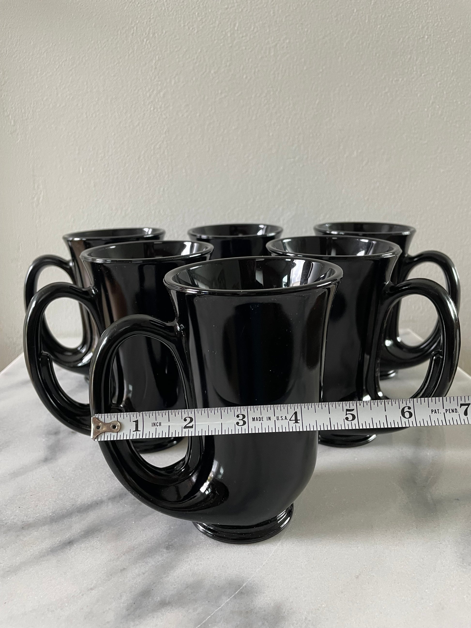 Vintage Black Glass Trumpet Mugs by Tiara Glass - Set of 6