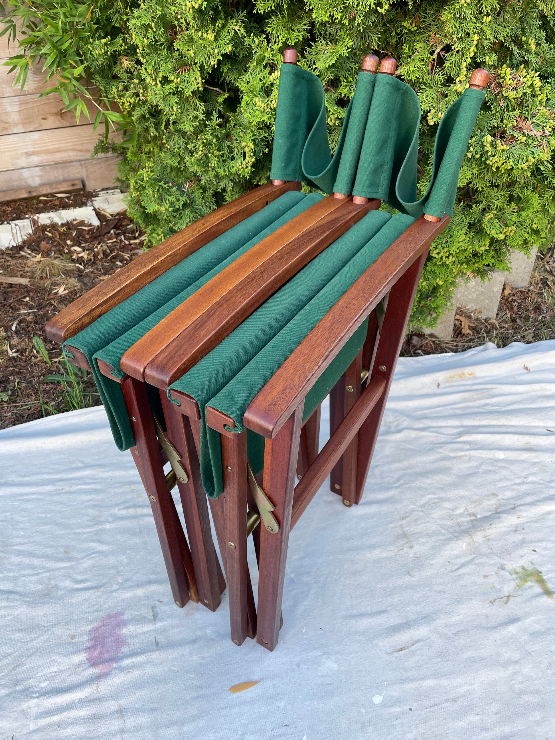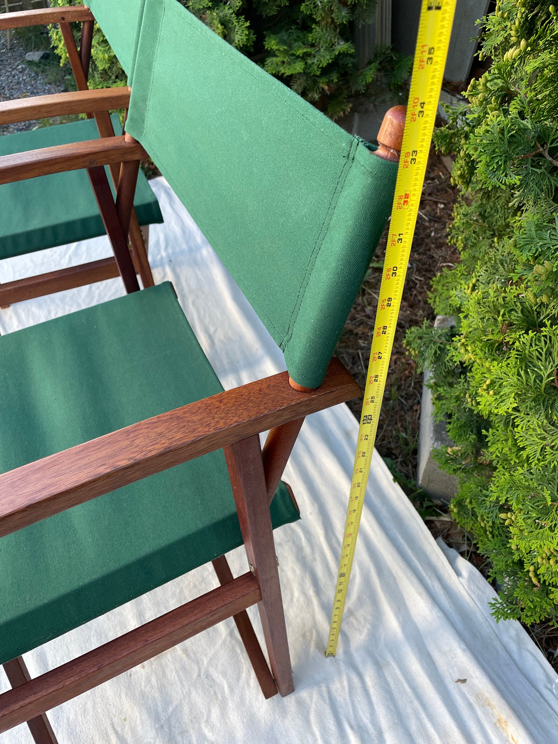 Vintage Hunter Green Teak Folding Directors Chair - Set of 2