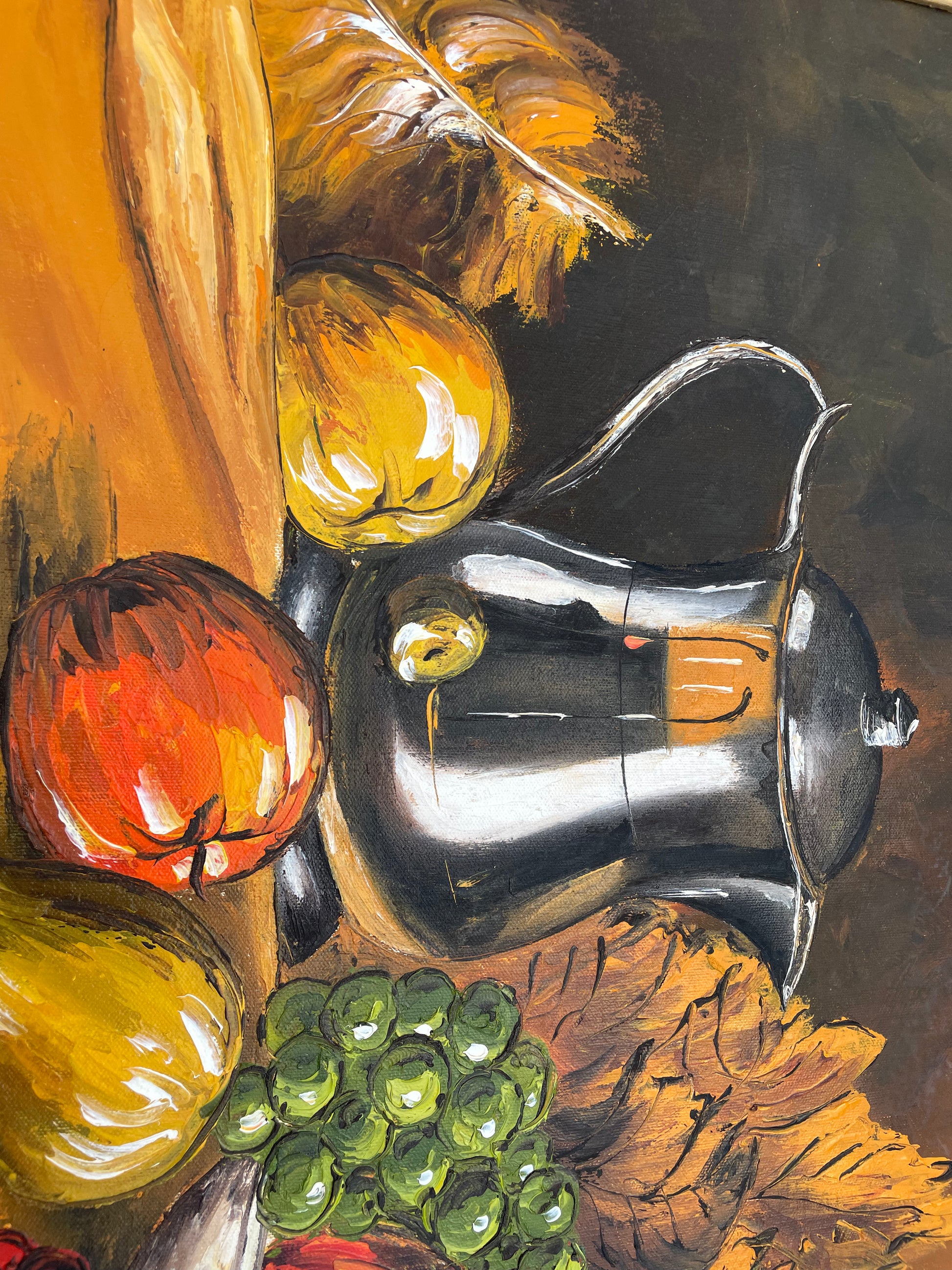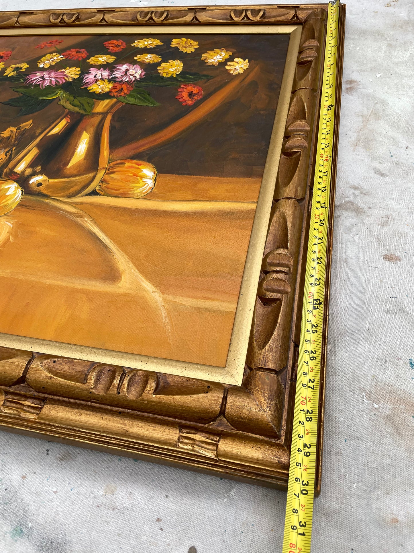 Vintage Large Framed Scale Tablescape Still Life Oil on Canvas