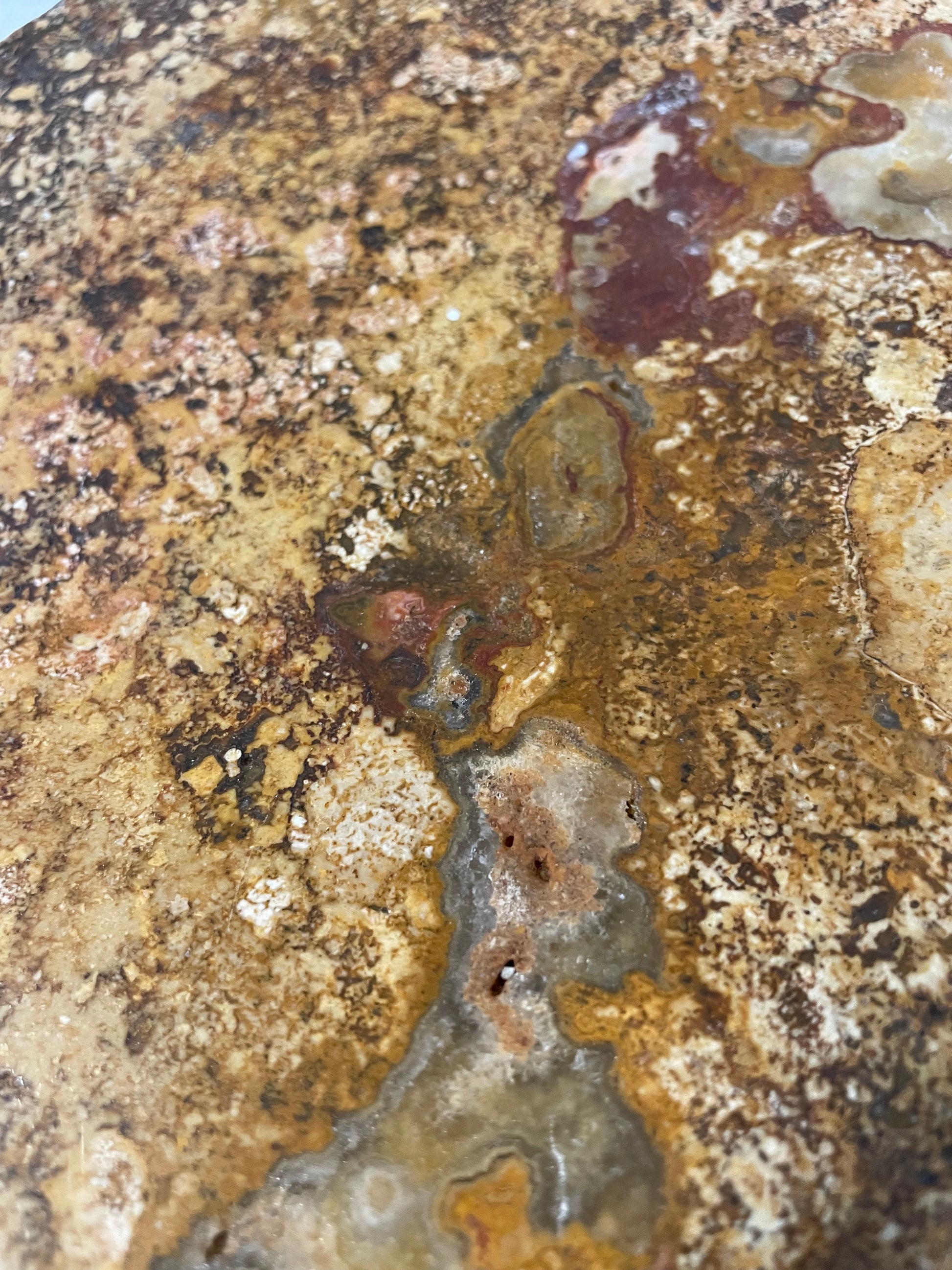 This unique tray brilliantly presents deep oxblood red veining with tigers eye gemstone, dark browns as well as taupe and dijon throughout. Variations in colour and shade should be considered as a guarantee of a handcrafted creation.