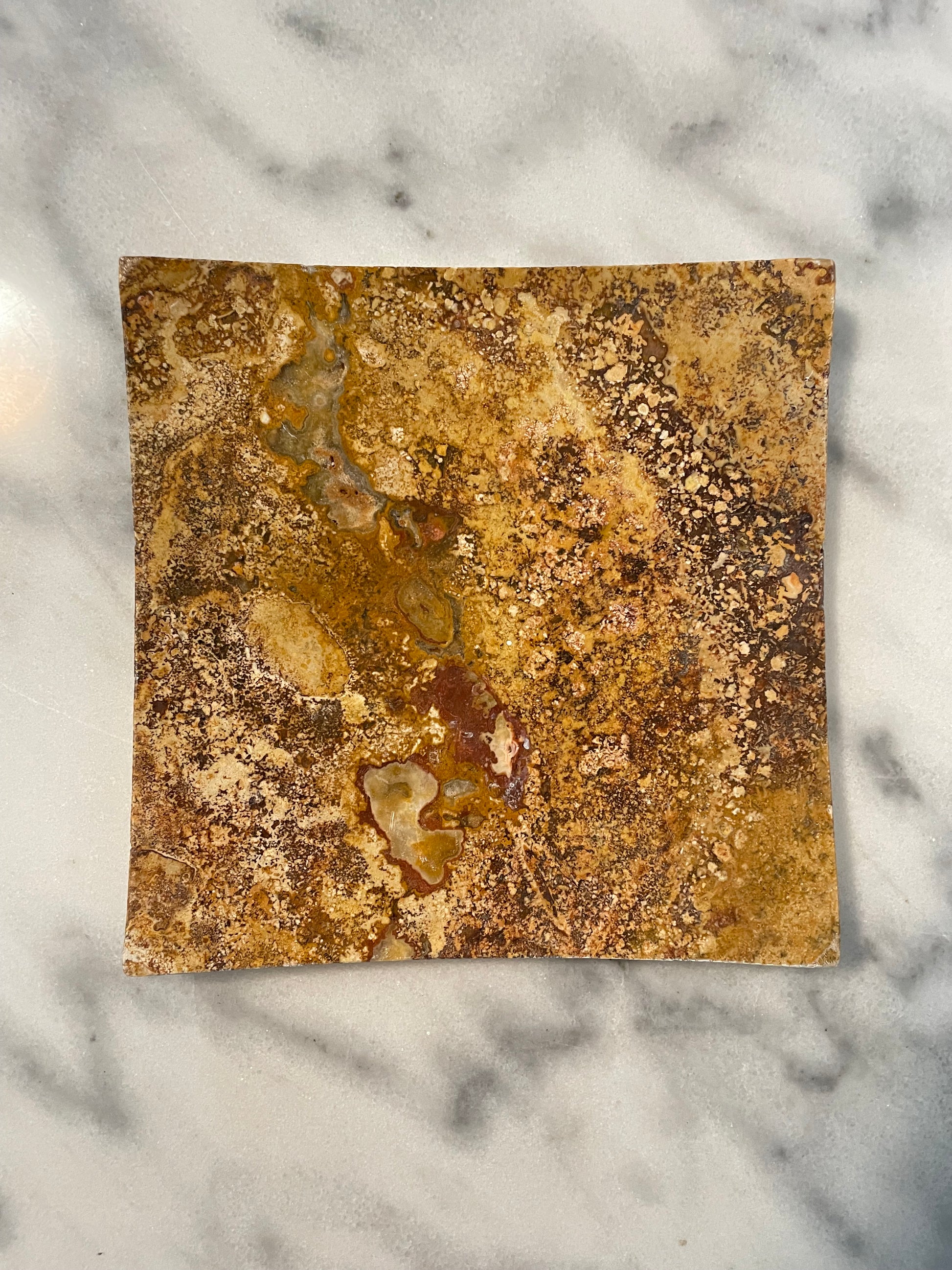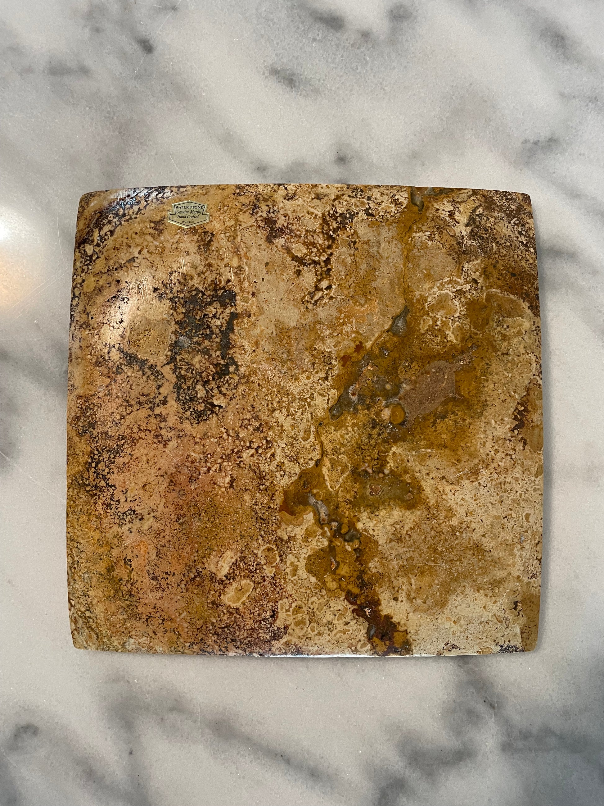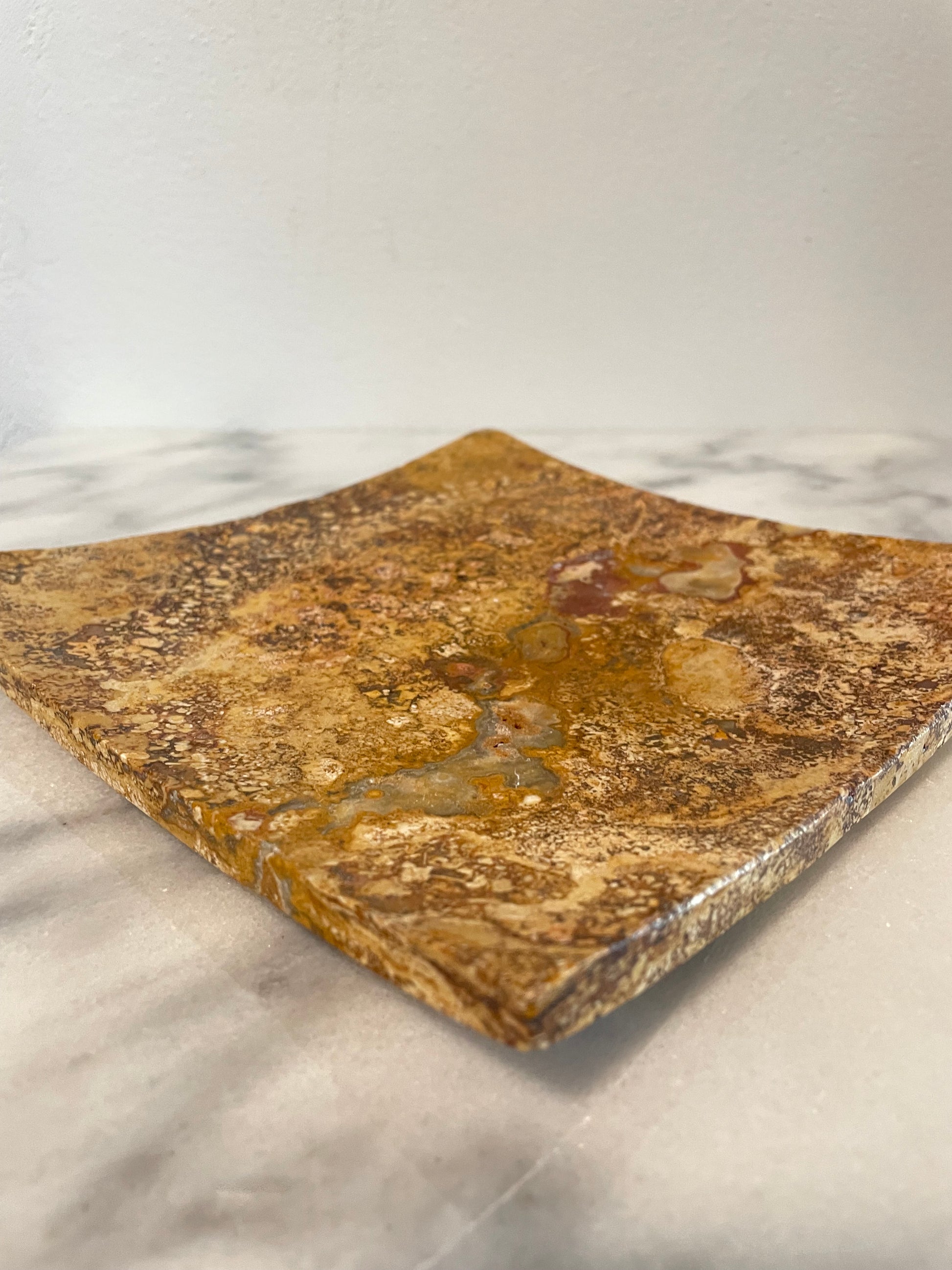Vintage Marble Handcrafted Brown Dijon Red Gray Stone Tray