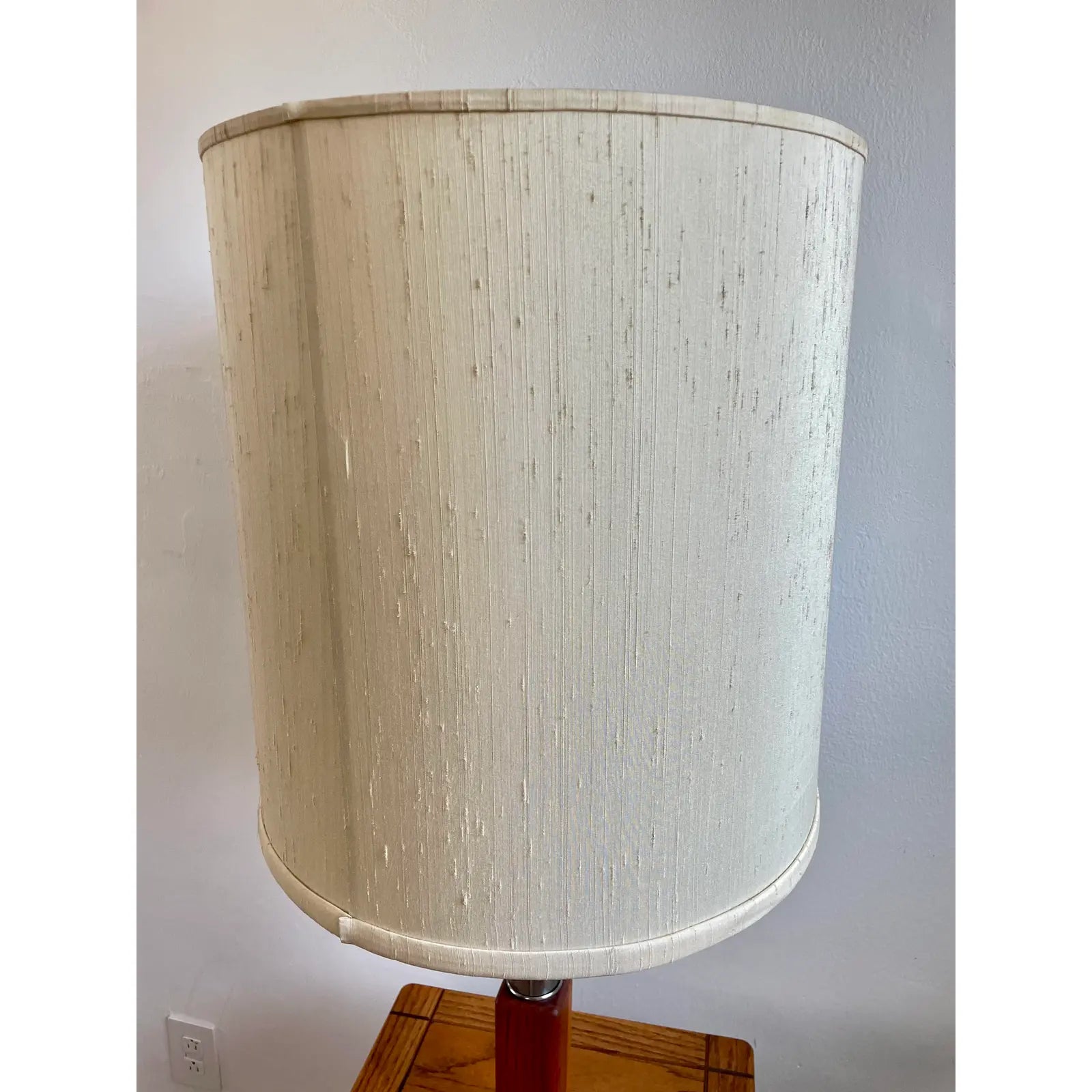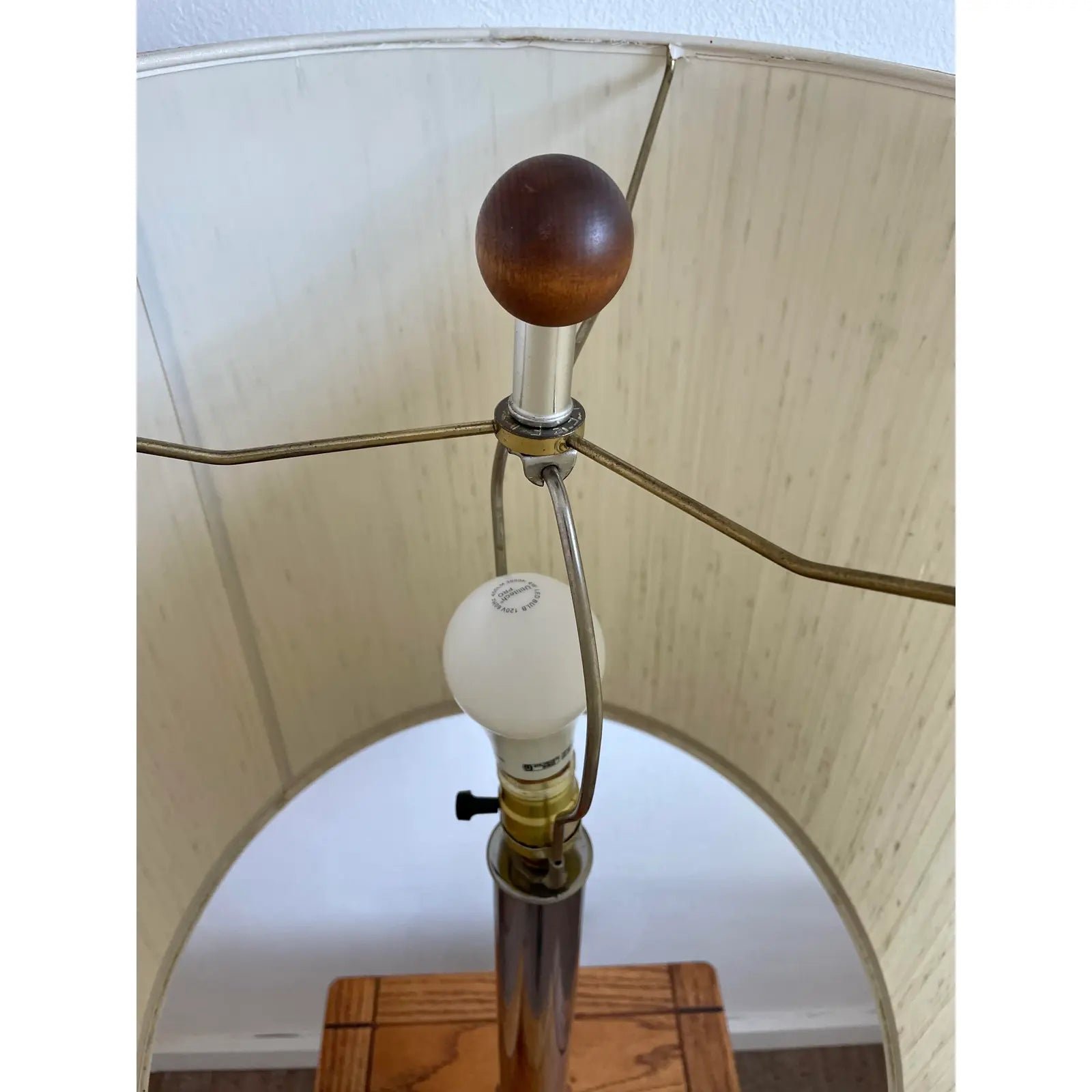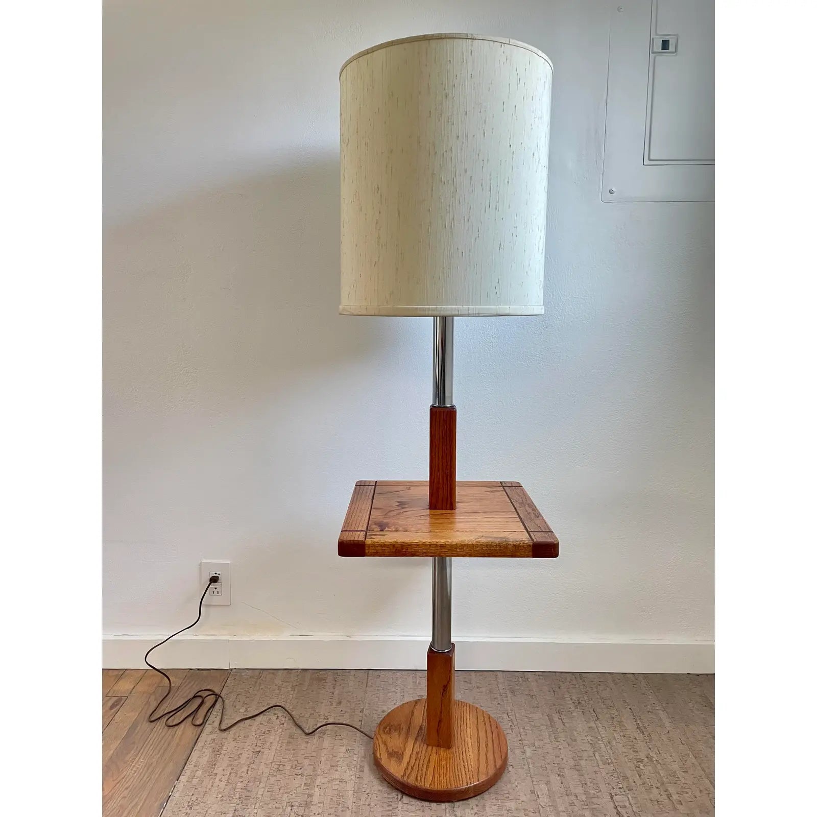 Vintage Mid 20th Century Stiffel Oak and Chrome Floor Lamp With Square Table Top