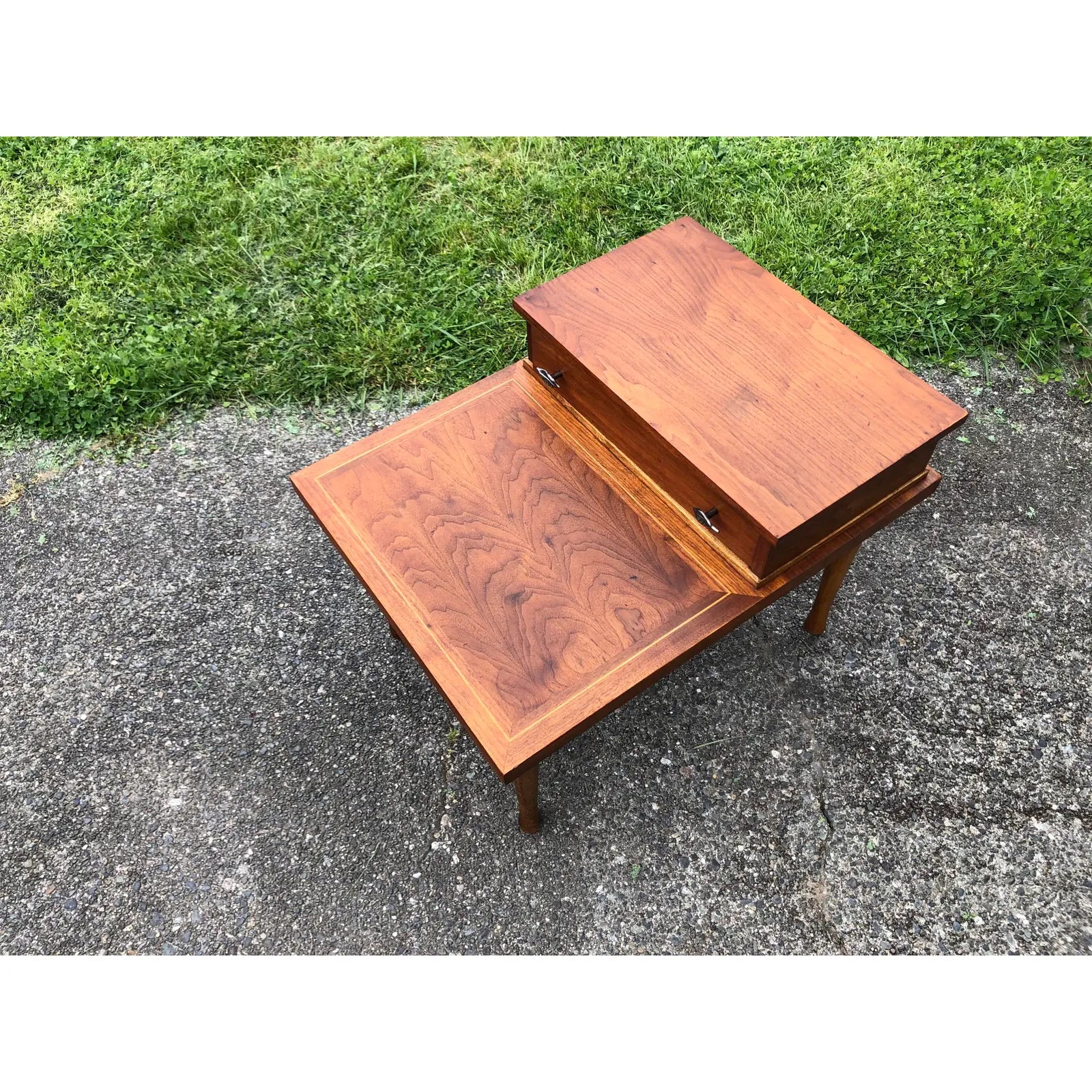 Vintage Mid-Century Modern American of Martinsville Walnut & Oak Inlay Side Table