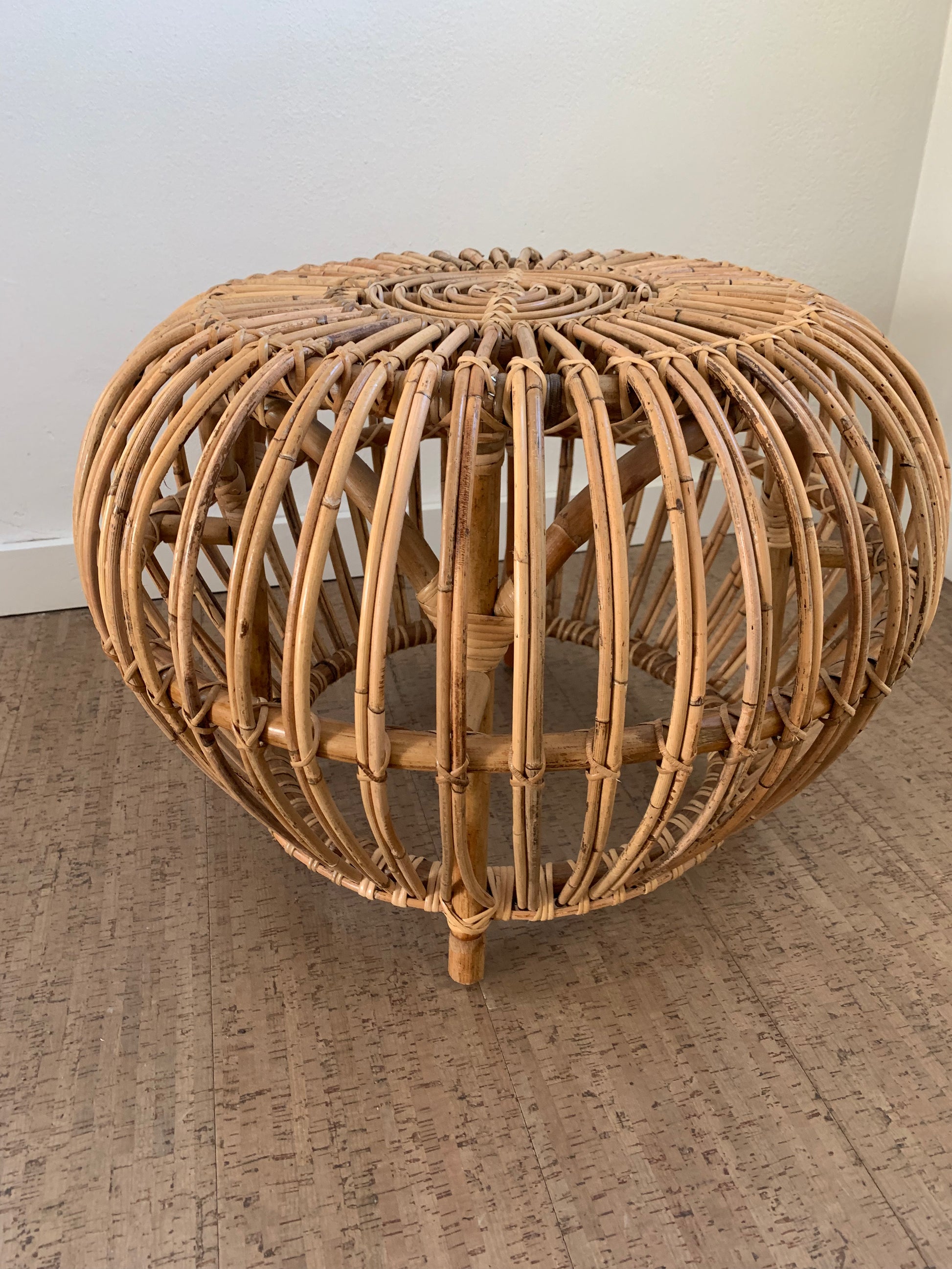 Vintage Mid-Century Modern Rattan Side Table Ottoman Pouf Attributed to Franco Albini