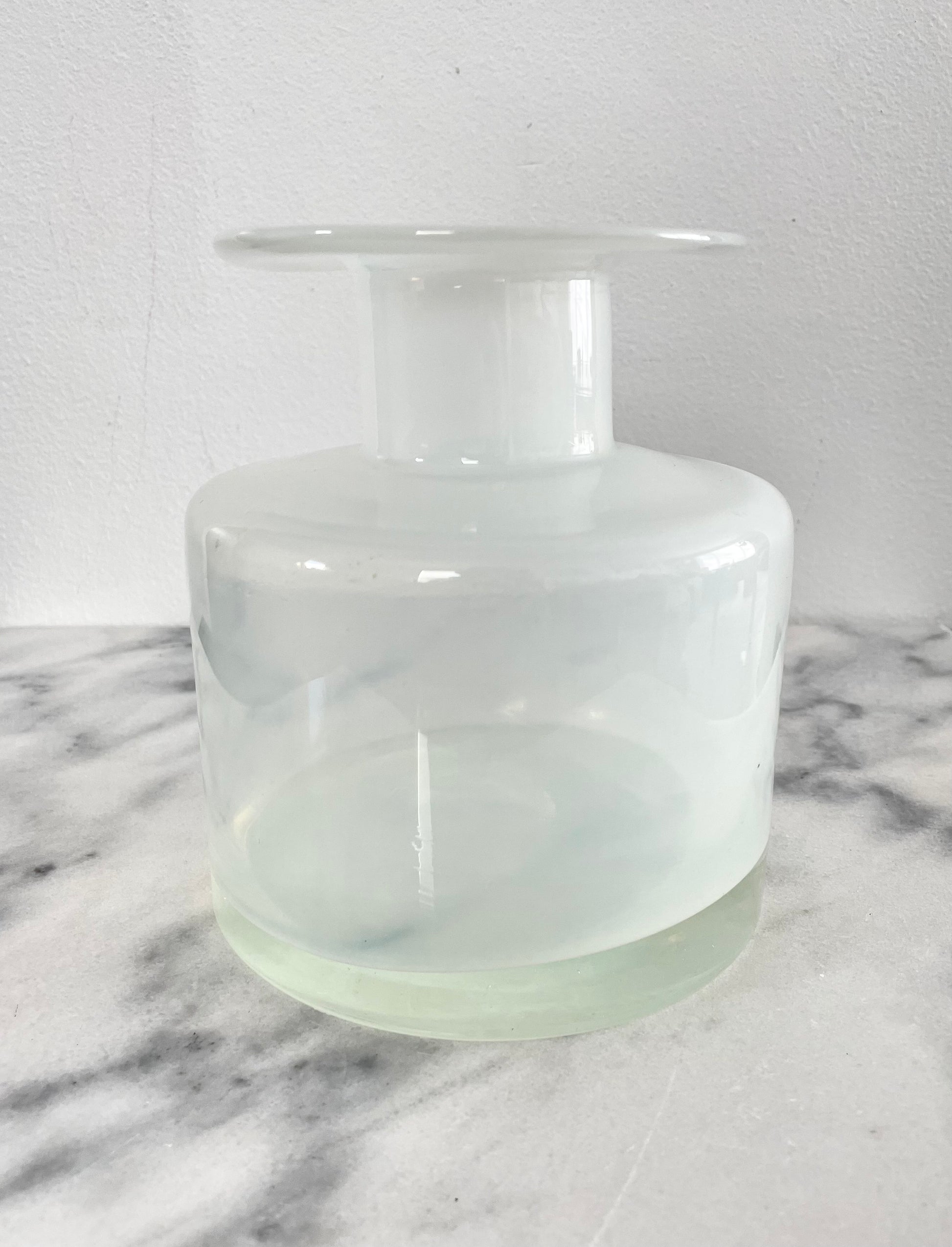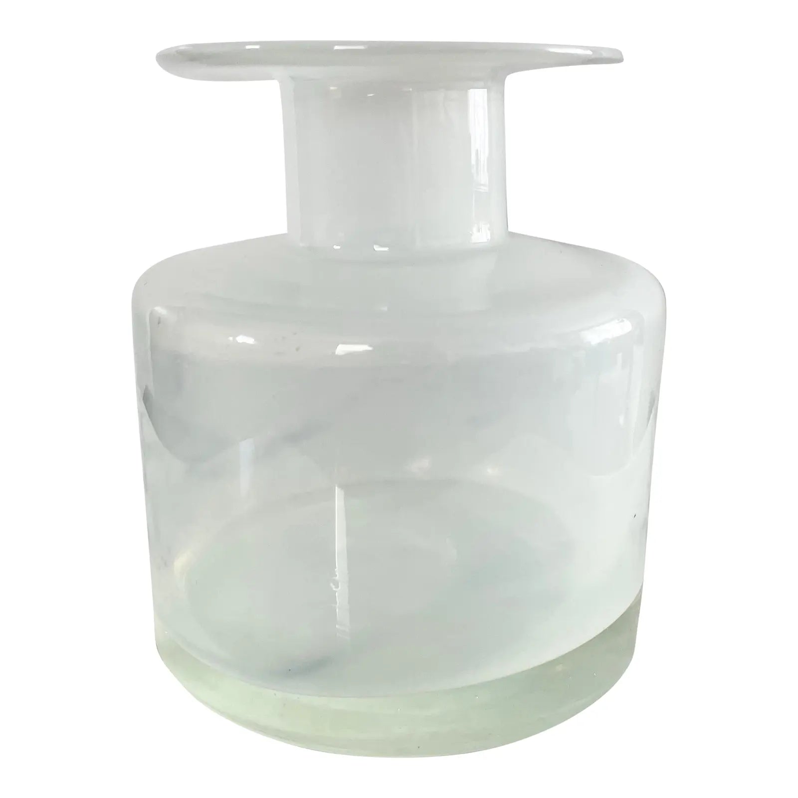 Vintage Mid-Century Scandinavian Modern White Blown Glass Gul Vase