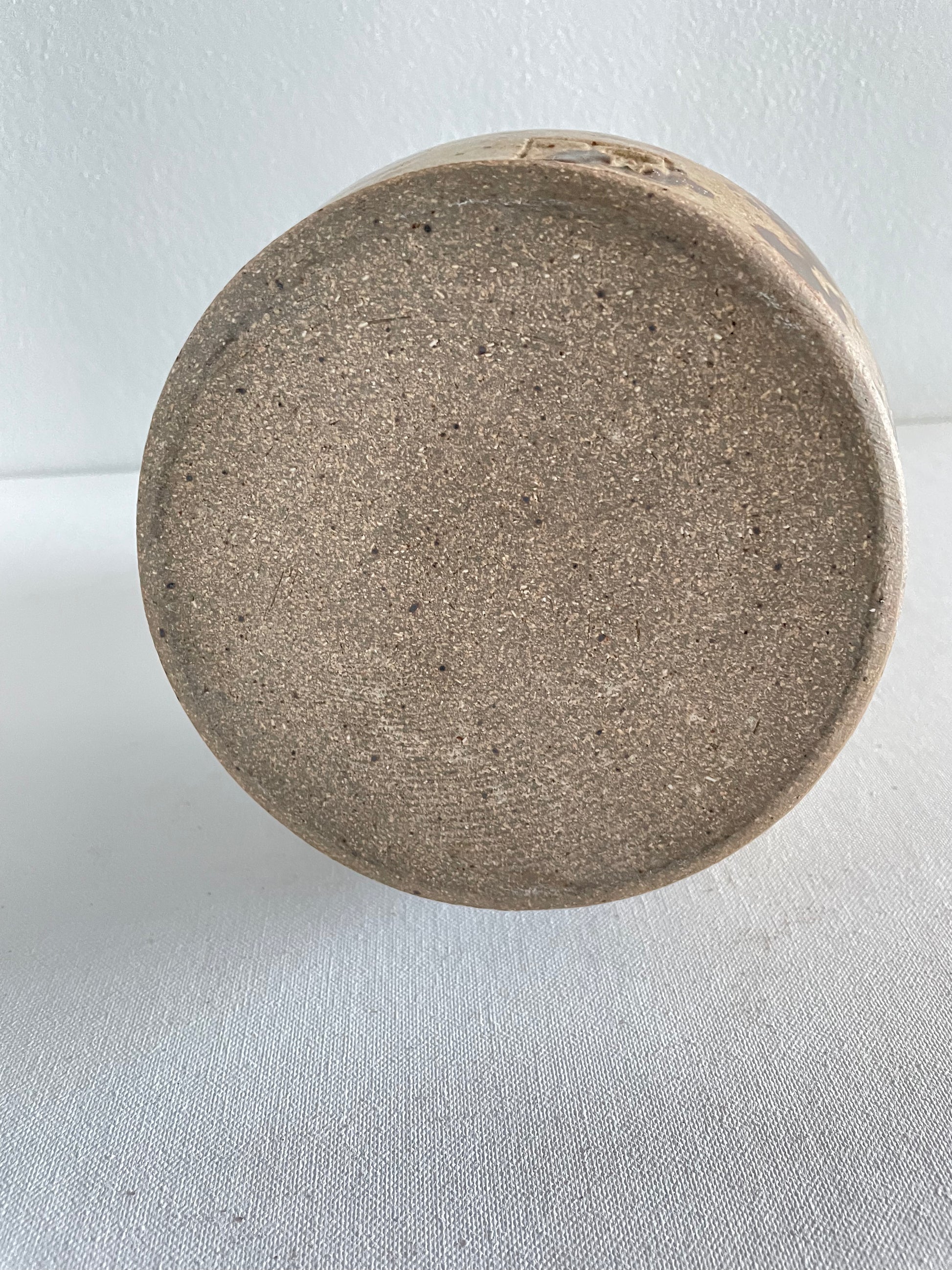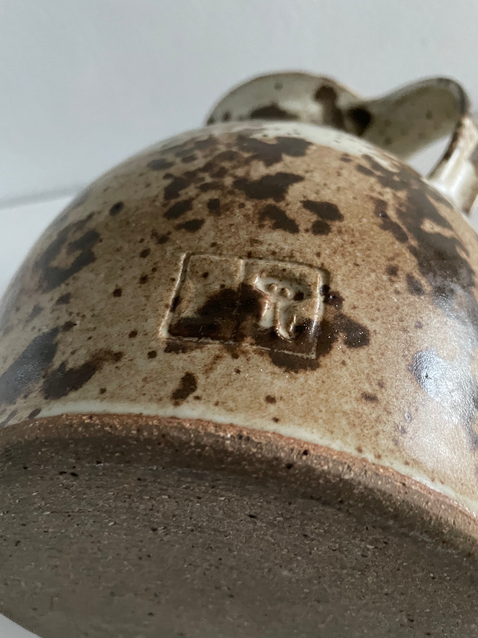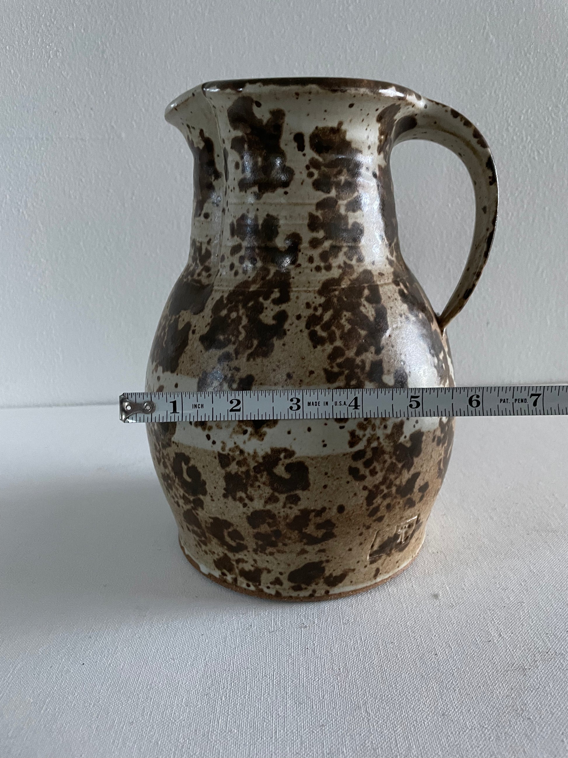 Natural speckled clay brings a touch of earthen character to this statement pitcher. Handmade ceramic studio with its own distinct look. Ergonomic handle and pour lip make serving easy and clean.