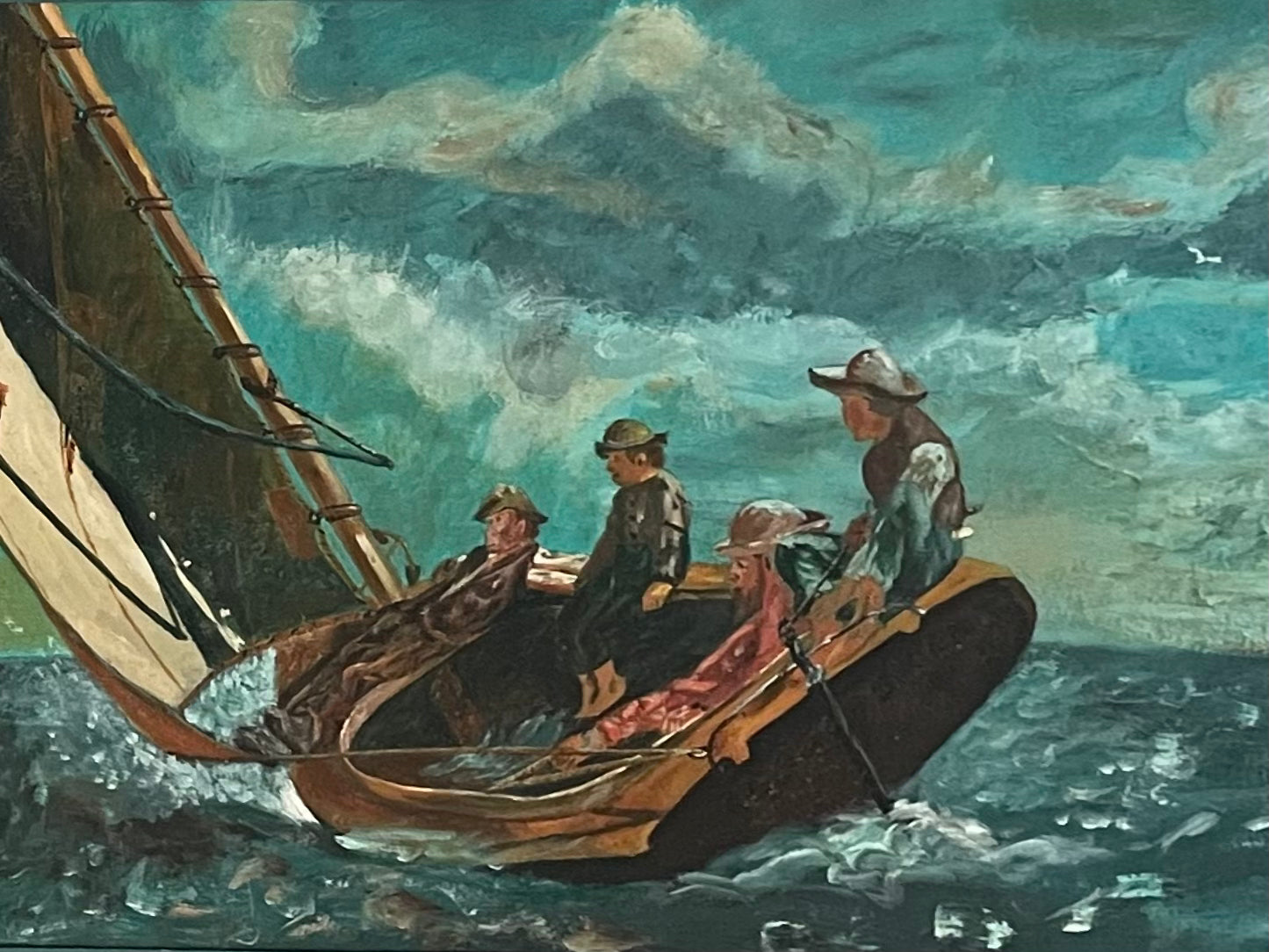 Breezing Up A Fair Wind by Winslow Homer framed reproduction painting. Elevate your space with this Vintage Seascape Sailing Nautical scene, a captivating piece of framed artwork. Depicting a maritime scene with a sailboat and fishermen, this painting brings the allure of the sea into your home. Perfect for nautical enthusiasts or those seeking coastal charm, this timeless masterpiece adds a touch of vintage elegance to any room. Don't miss the opportunity to own this unique piece of maritime history. Shop now and sail away with this stunning addition to your collection!