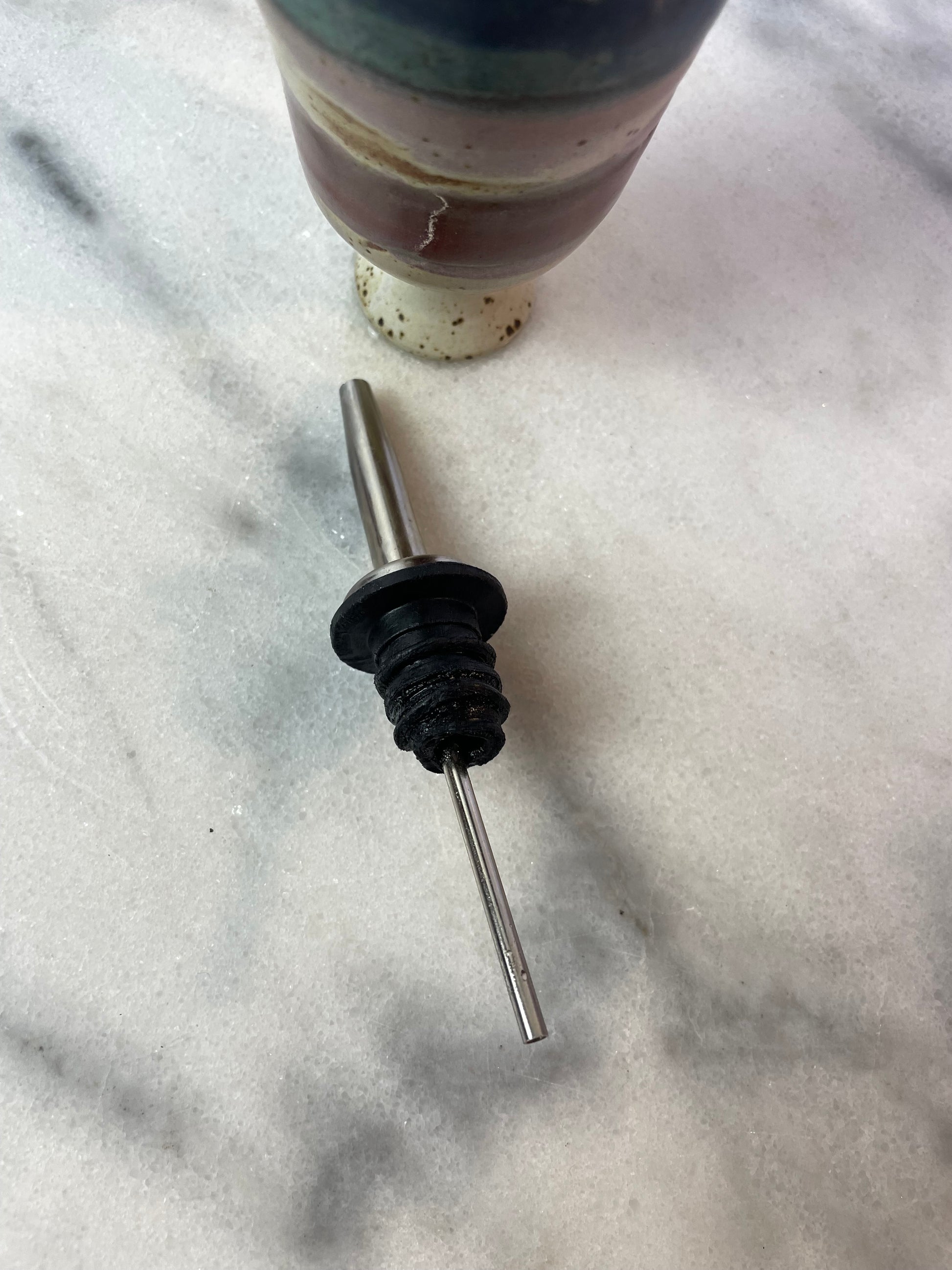 - Bottle is in good condition. Olive oil attachment has some wear on the stopper as pictured.