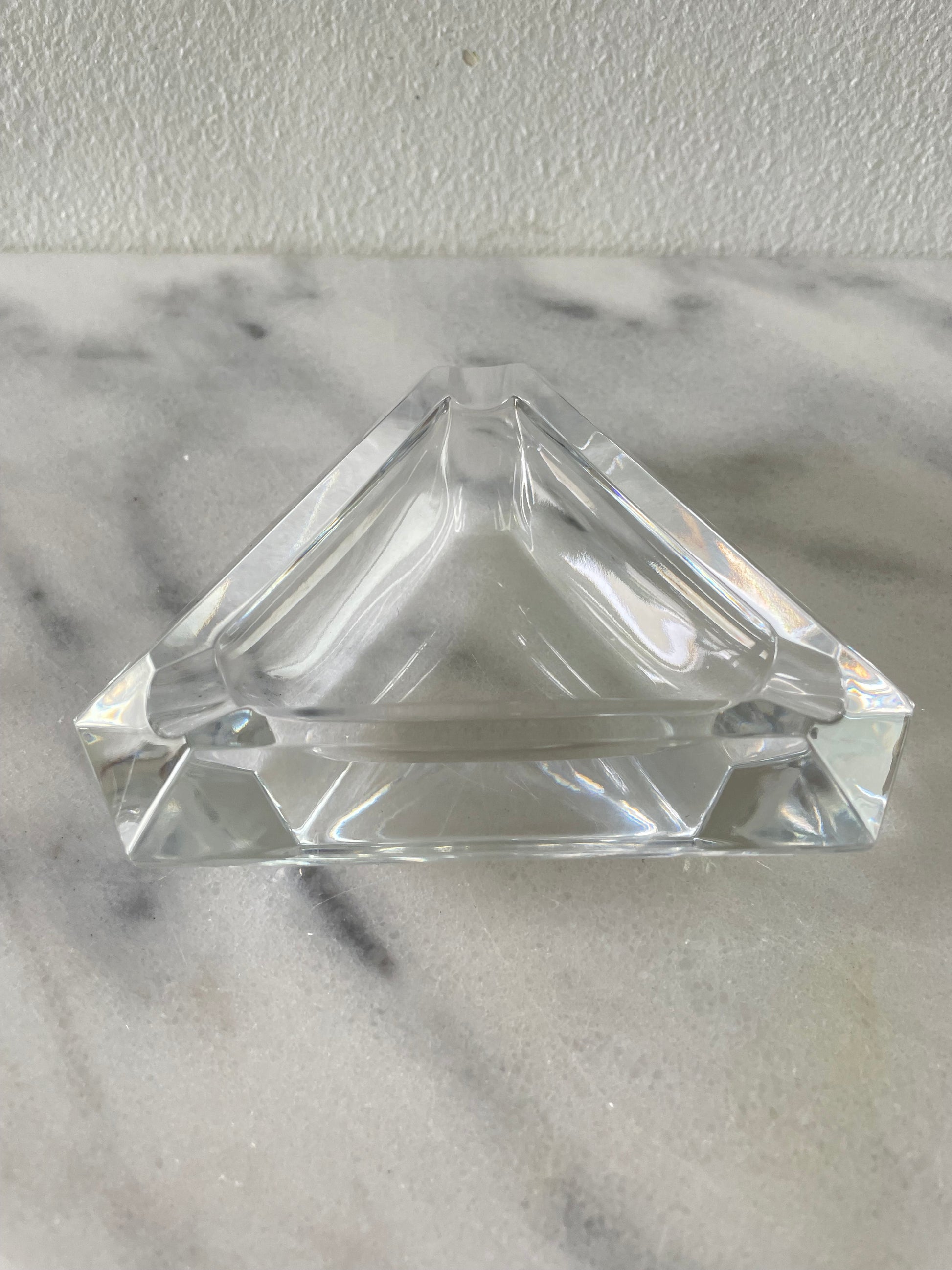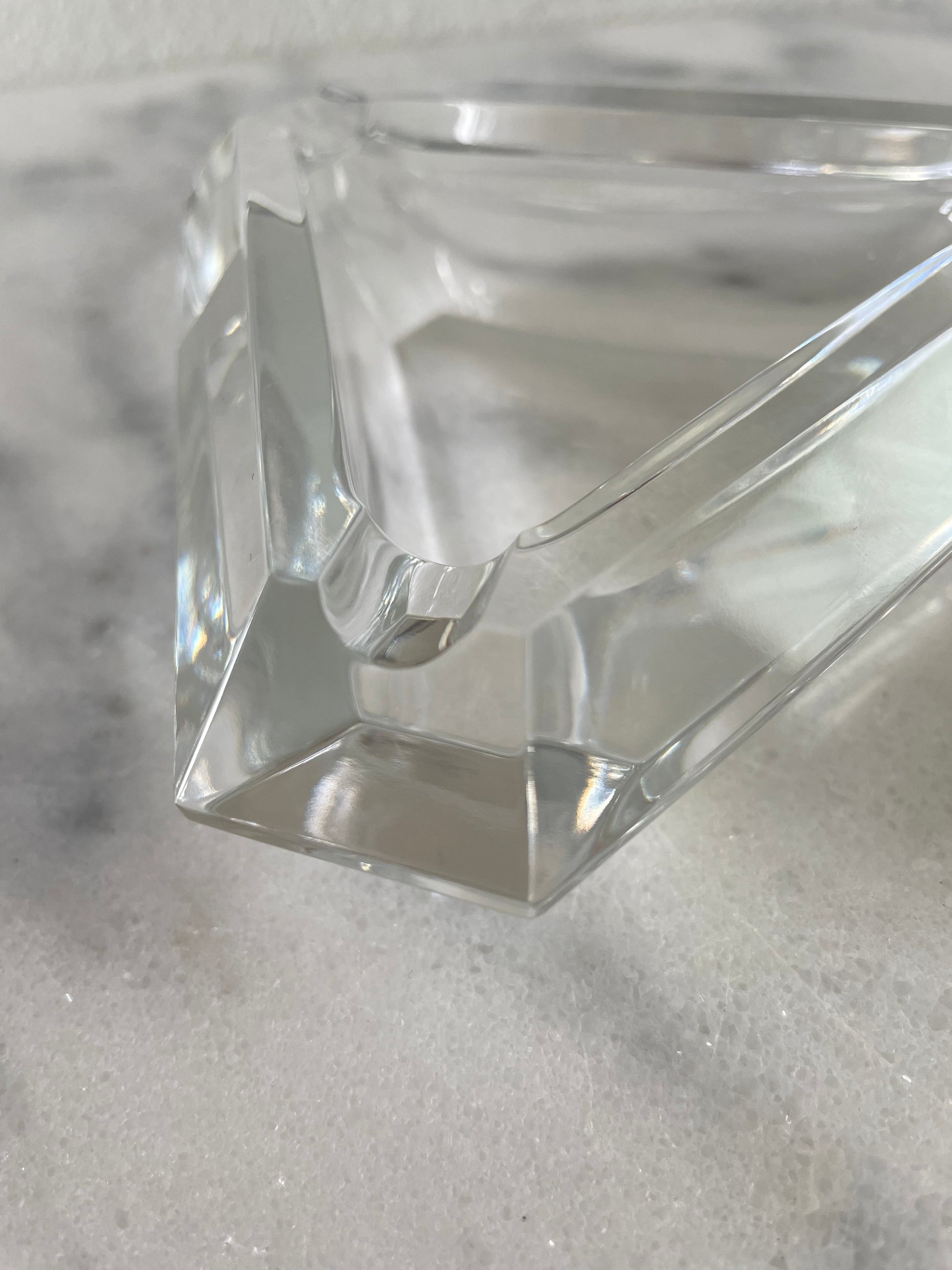 Vintage Val St Lambert Crystal Glass Ashtray Faceted Triangular Shape
