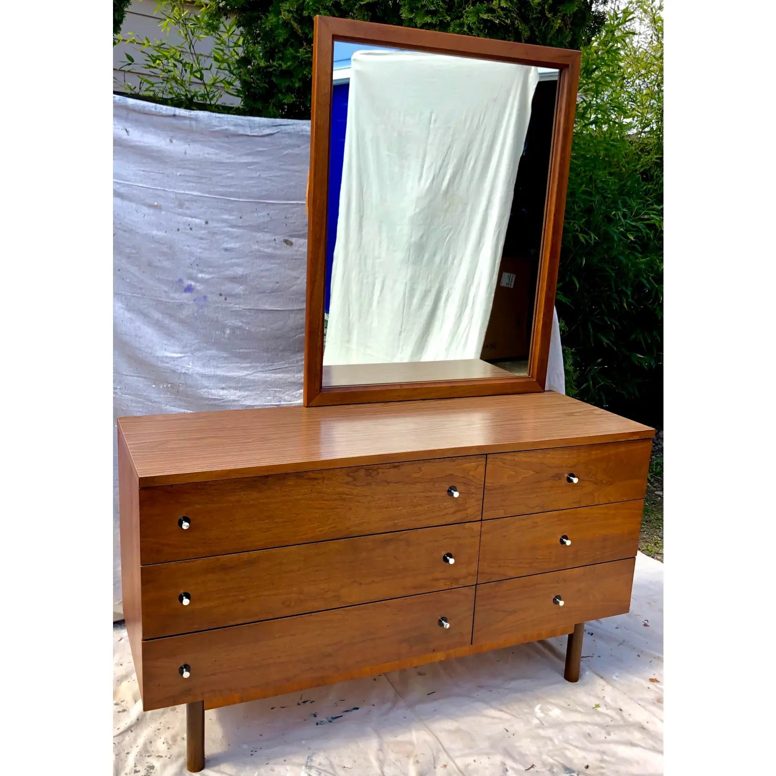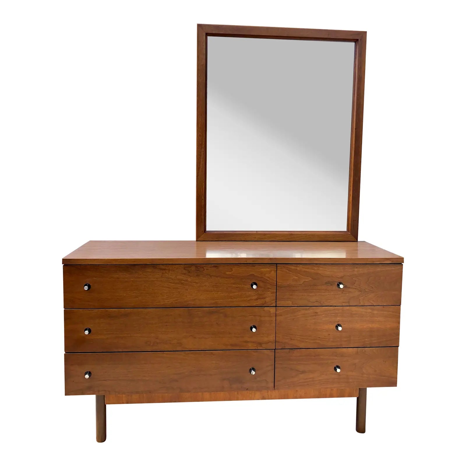 Walnut Mid-Century Modern Dresser and Mirror Set by Stanley Furniture